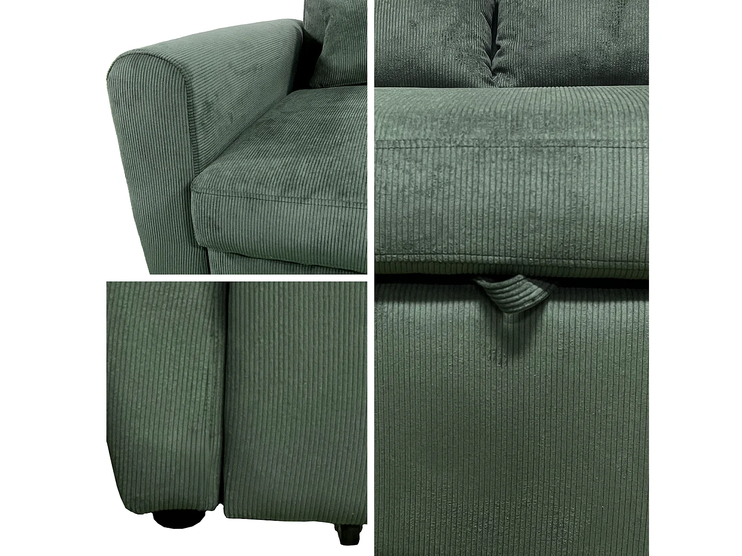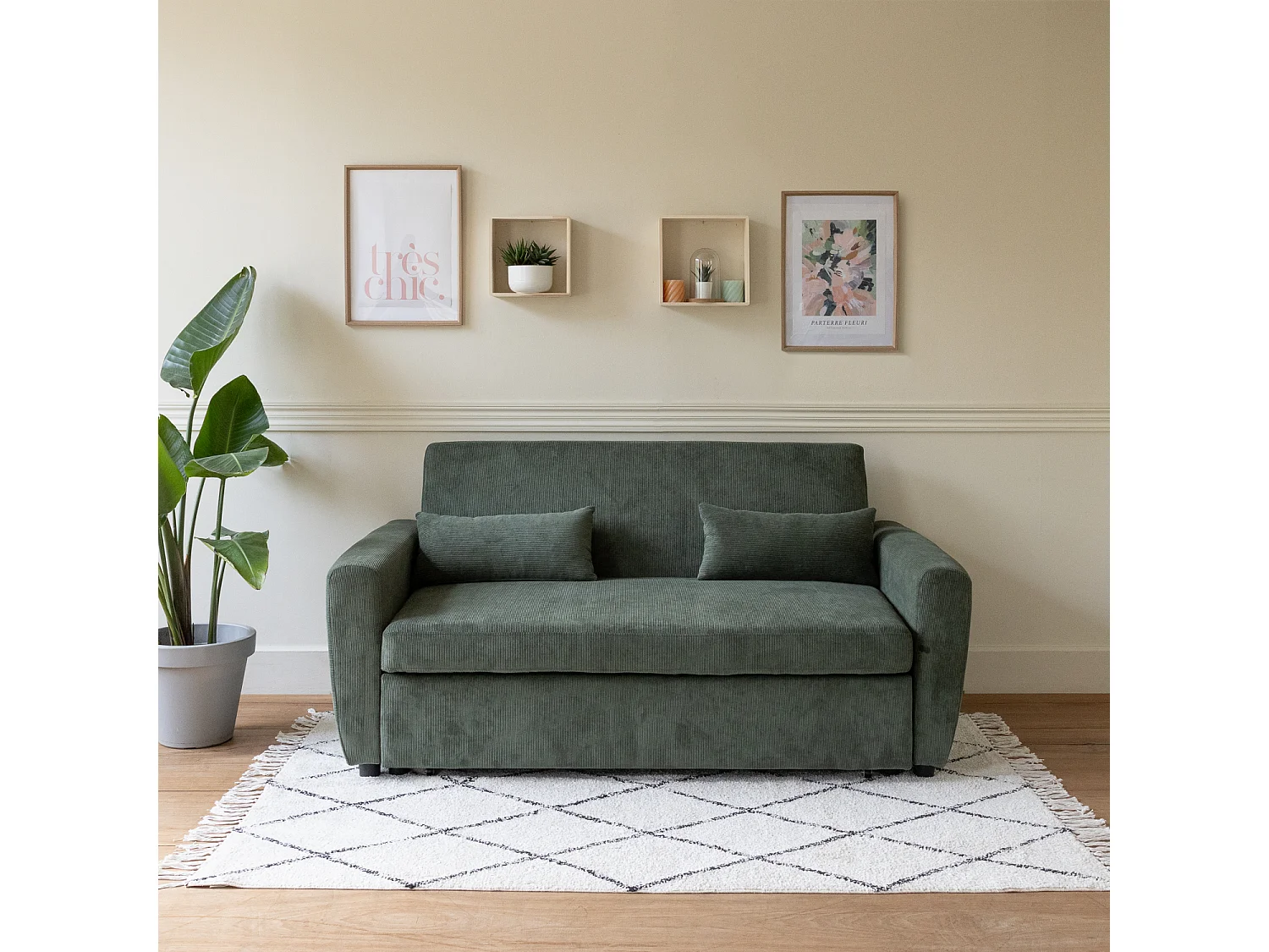 Canapé convertible en velours côtelé vert 2 places MATT - HAPPY GARDEN