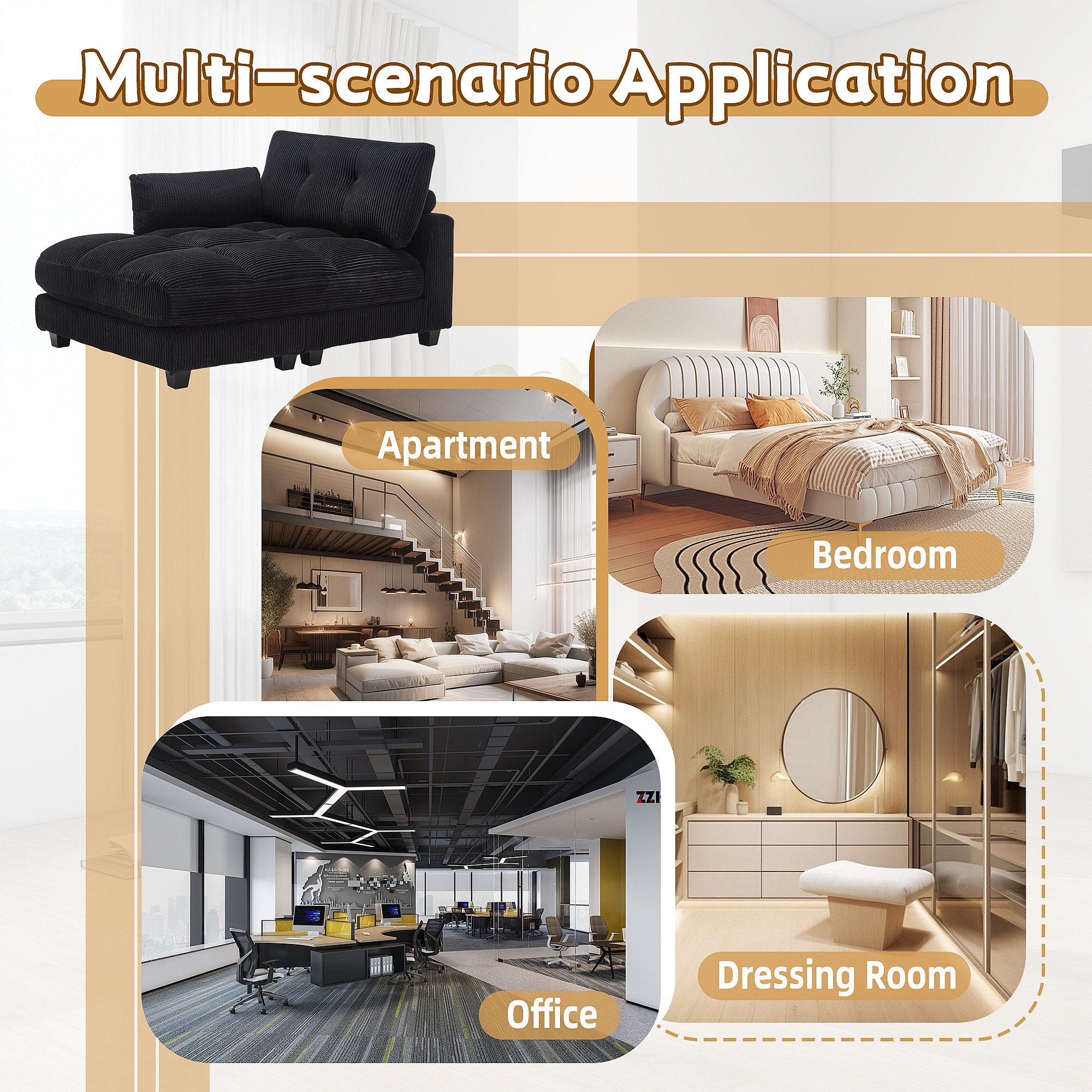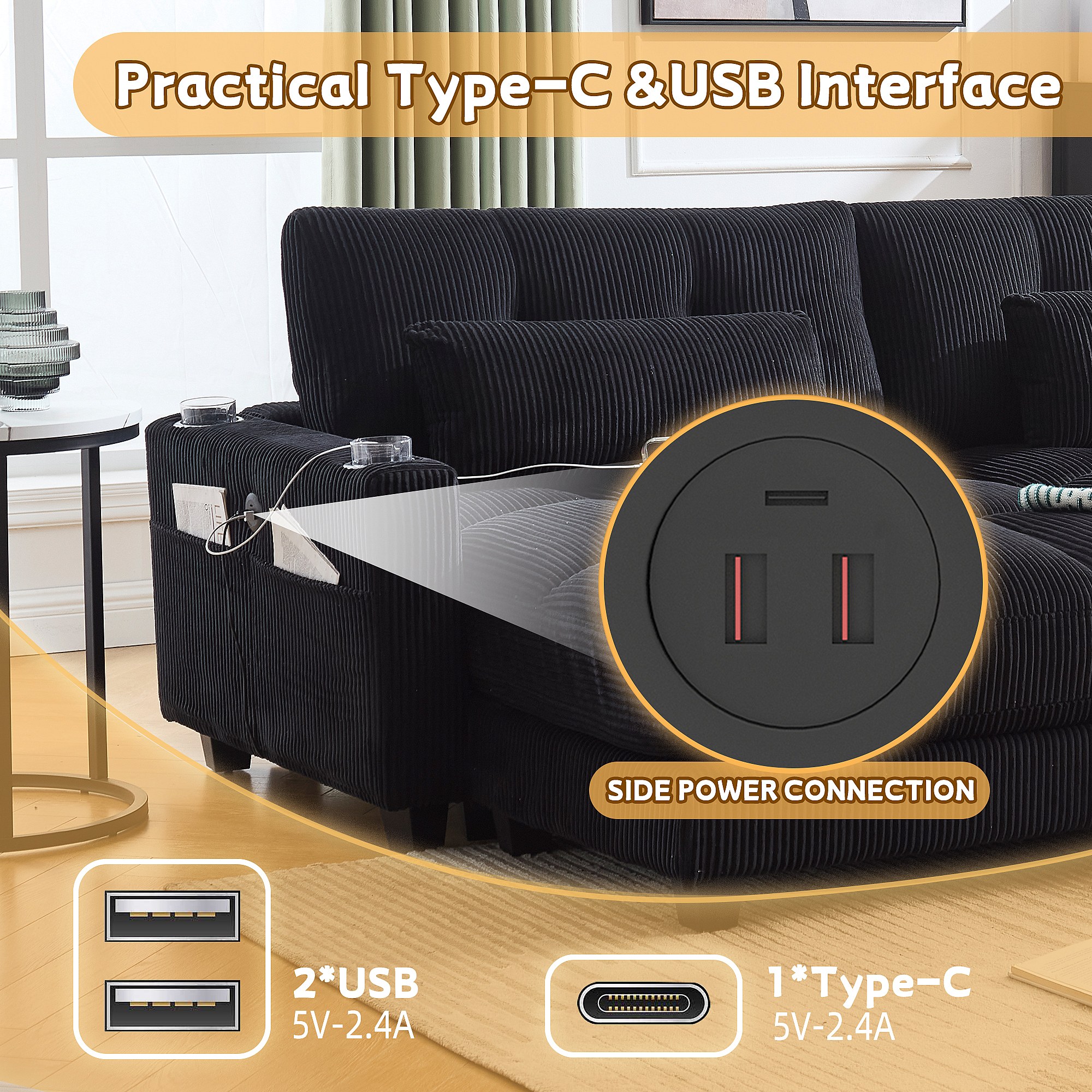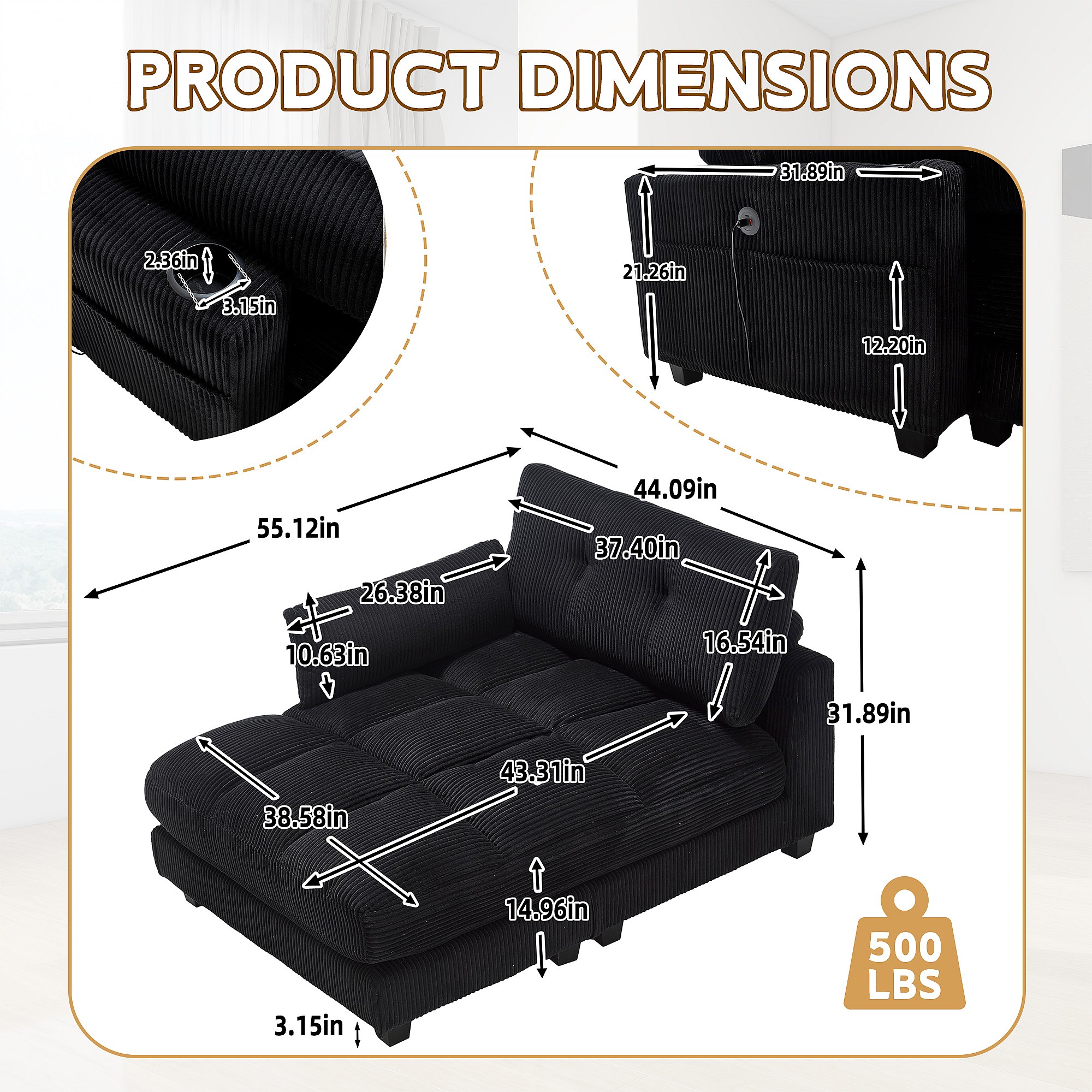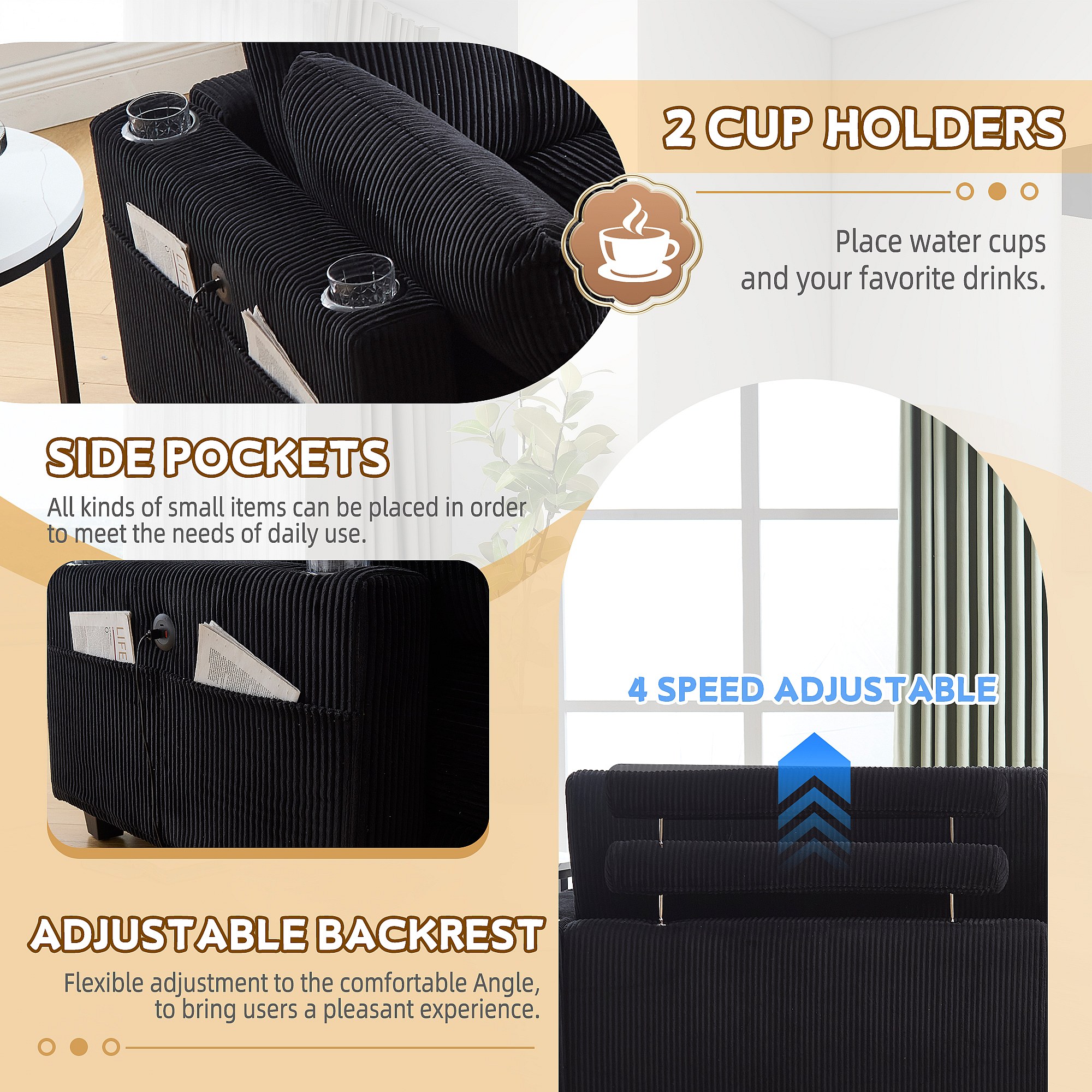 Canapé convertible en velours Noir – avec USB et porte‑gobelet – multifonction pour petit espace - 112x140x81cm