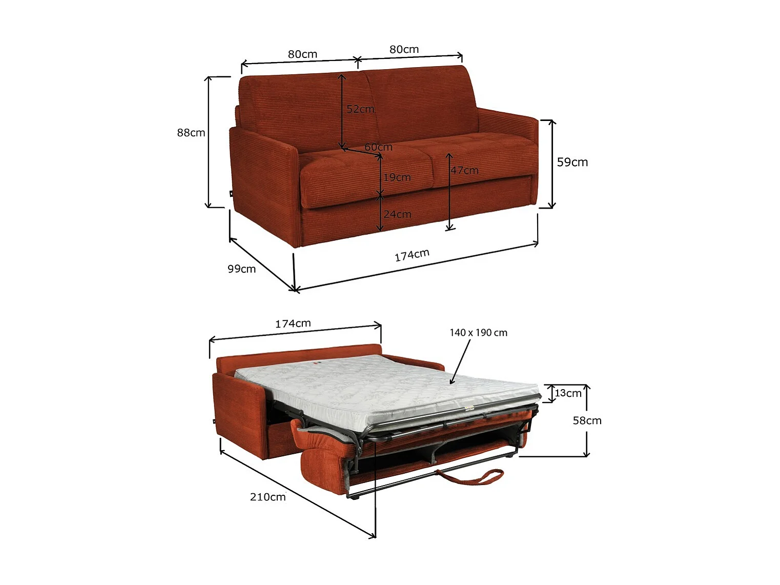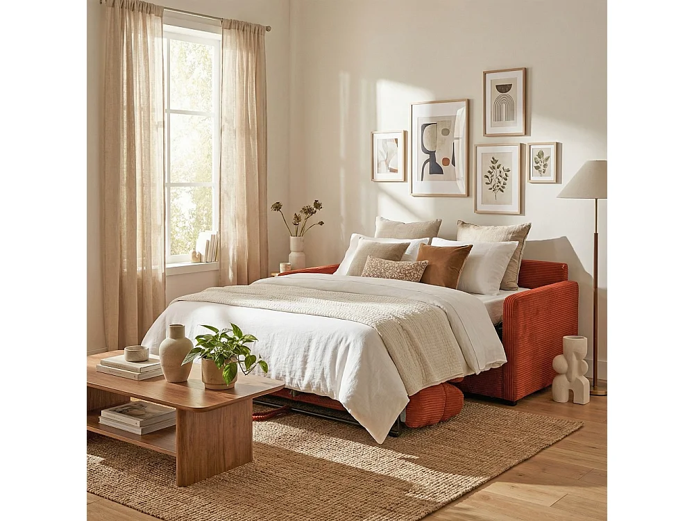 Canapé convertible express 3 places BERGAME en velours / Terracotta