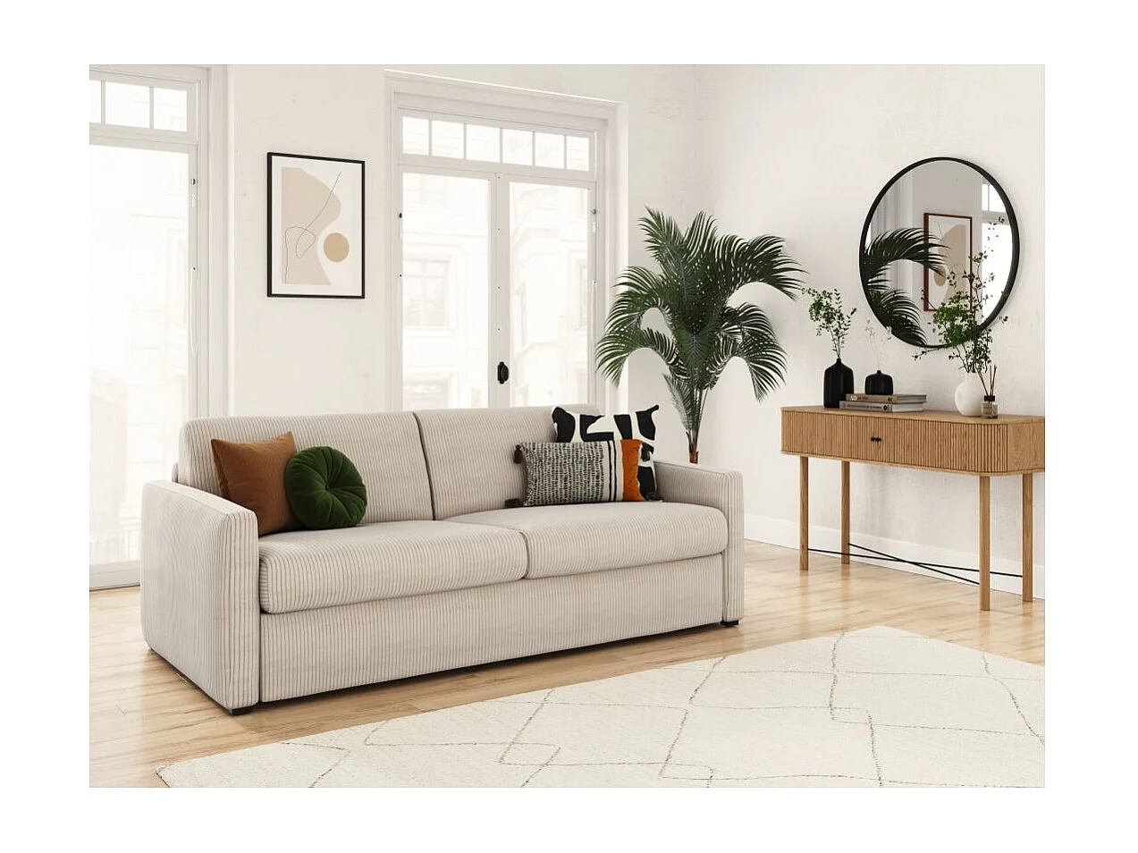 Canapé convertible express 3 places Agathe 140x190cm en velours côtelé - Beige - Matelas 13cm - L178 x P96 x H88cm - Loungitude