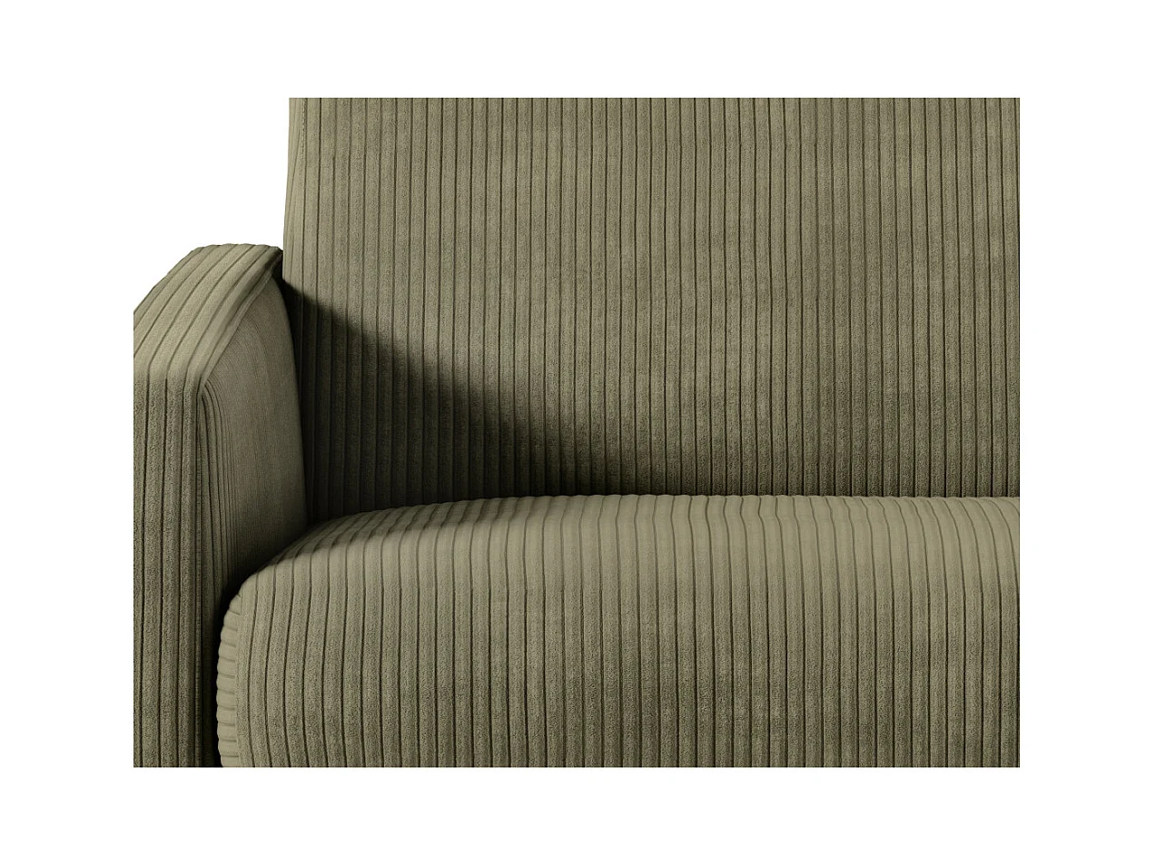 Canapé convertible express 3 places Agathe 140x190cm en velours côtelé - Vert kaki - Matelas 13cm - L178 x P96 x H88cm - Loungitude