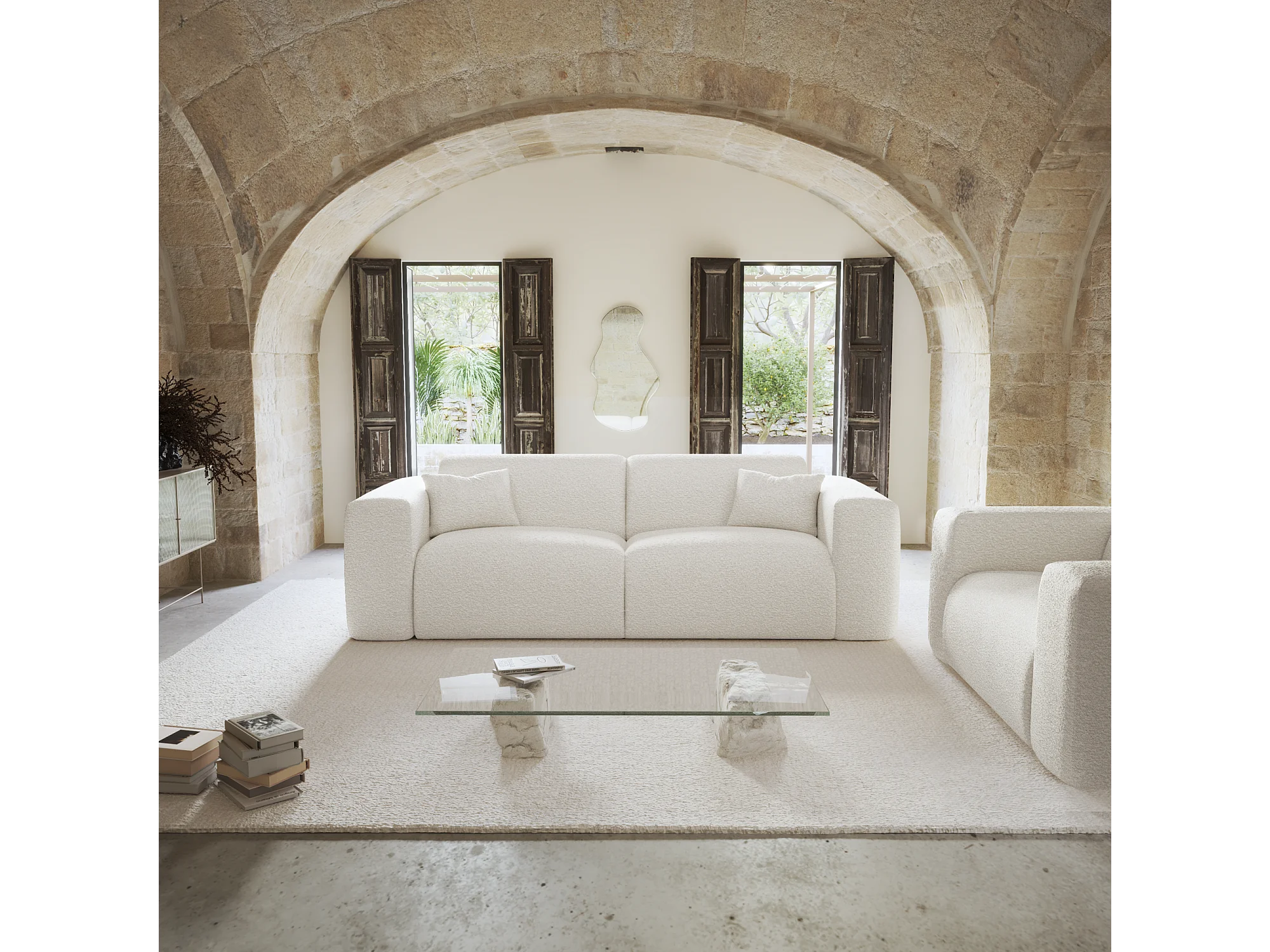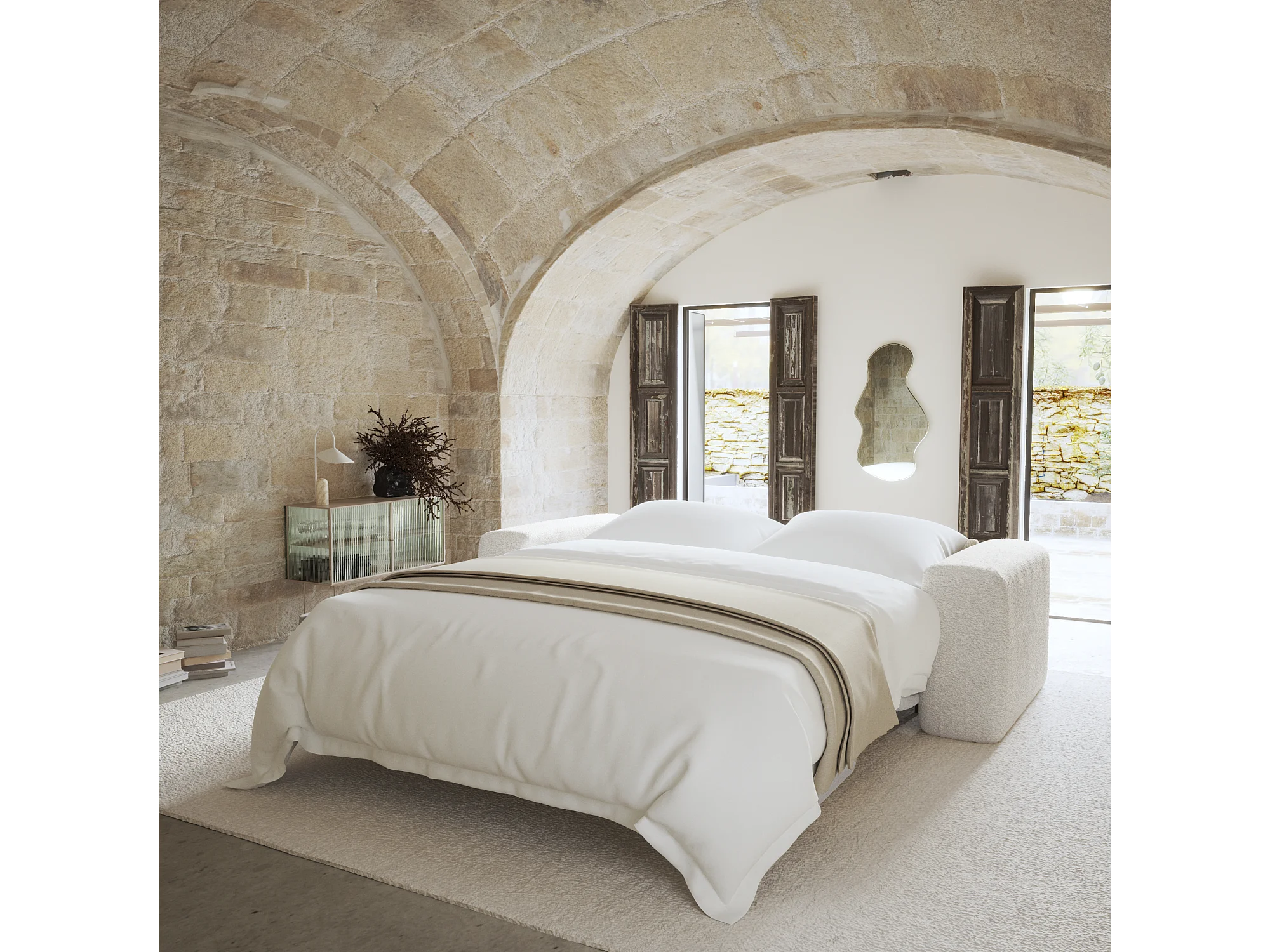 Canapé convertible express dunlopillo 140cm bouclette crème MYRA