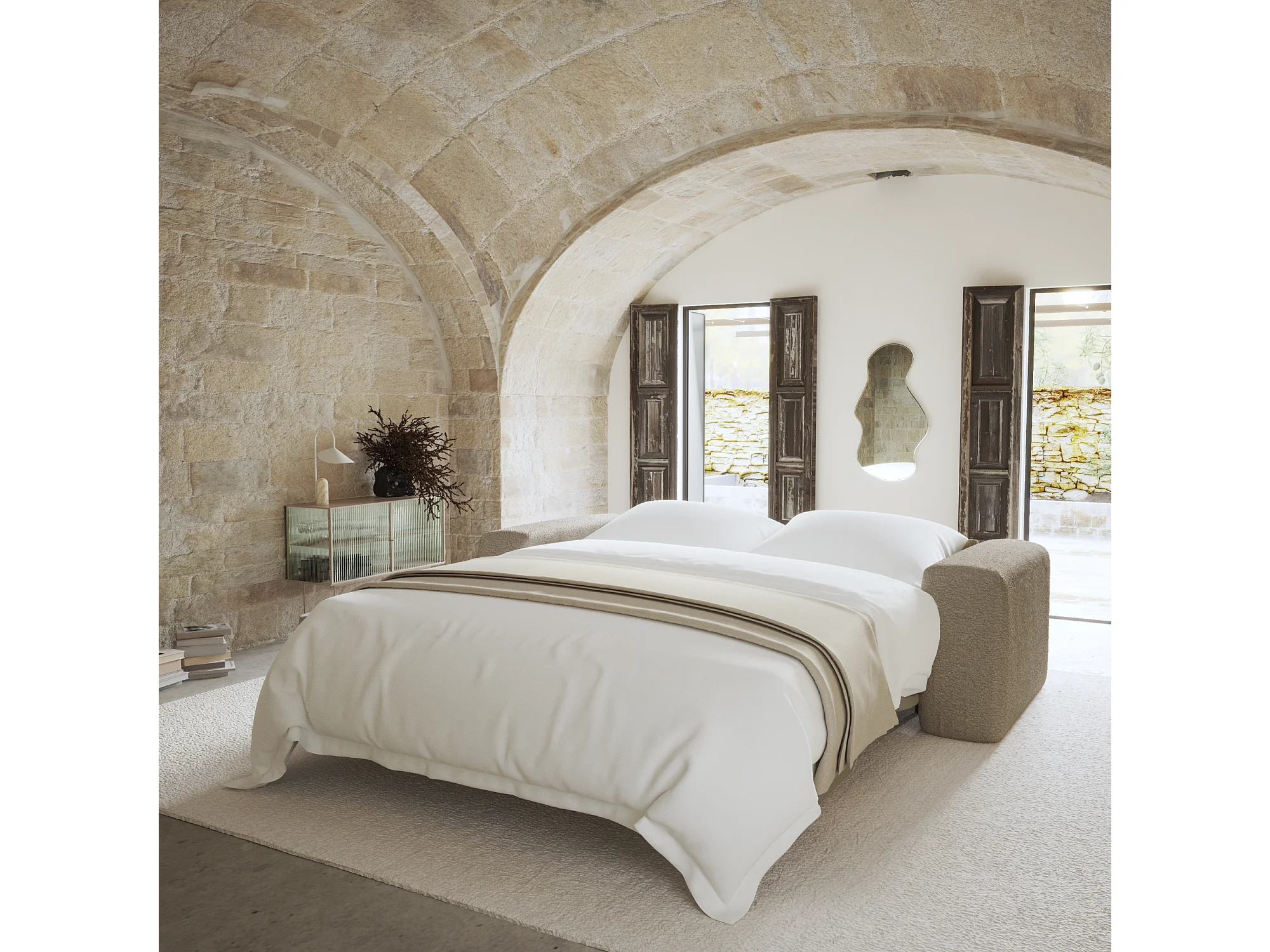 Canapé convertible express dunlopillo 140cm bouclette taupe MYRA