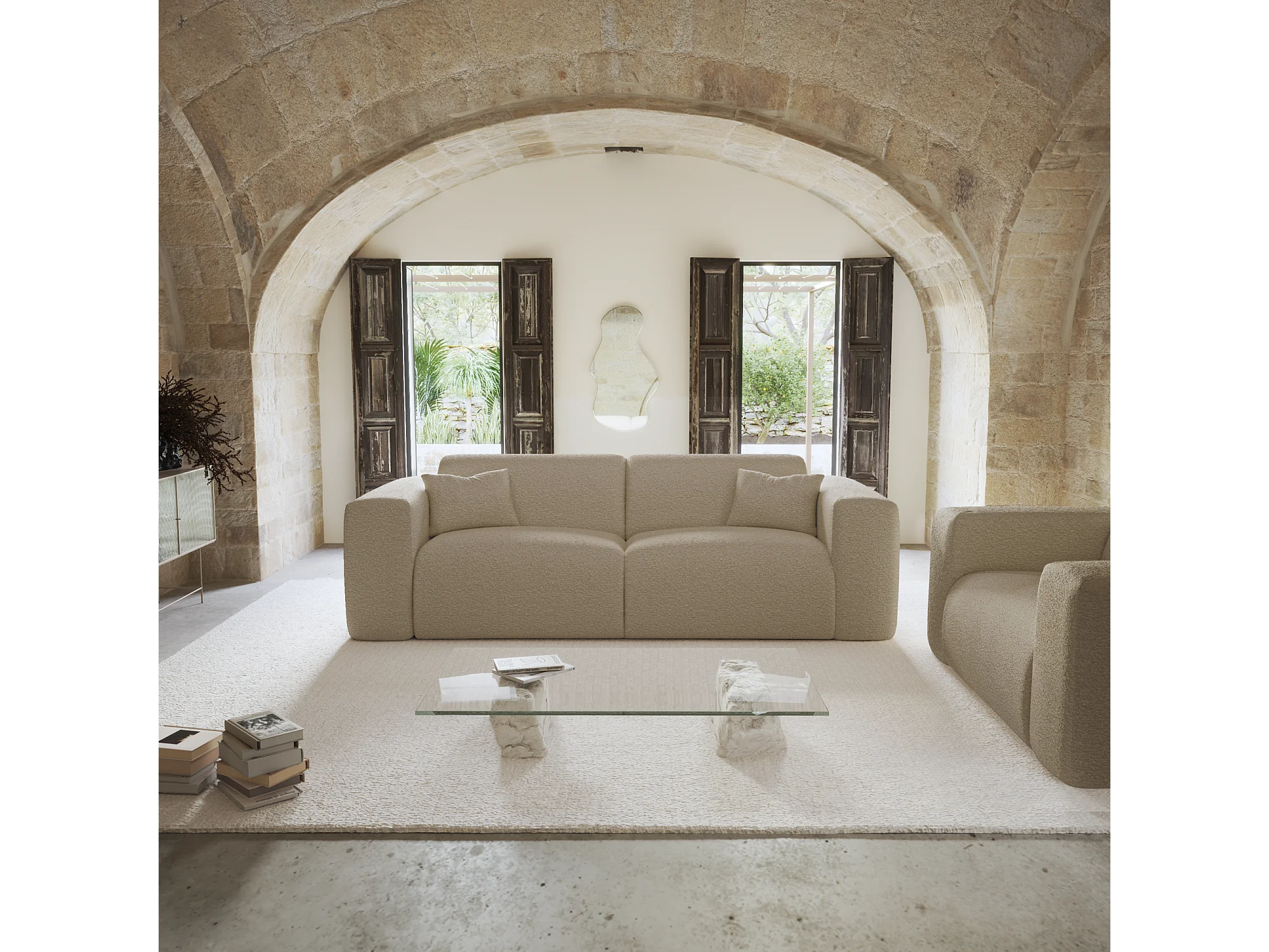 Canapé convertible express dunlopillo 160cm bouclette taupe MYRA