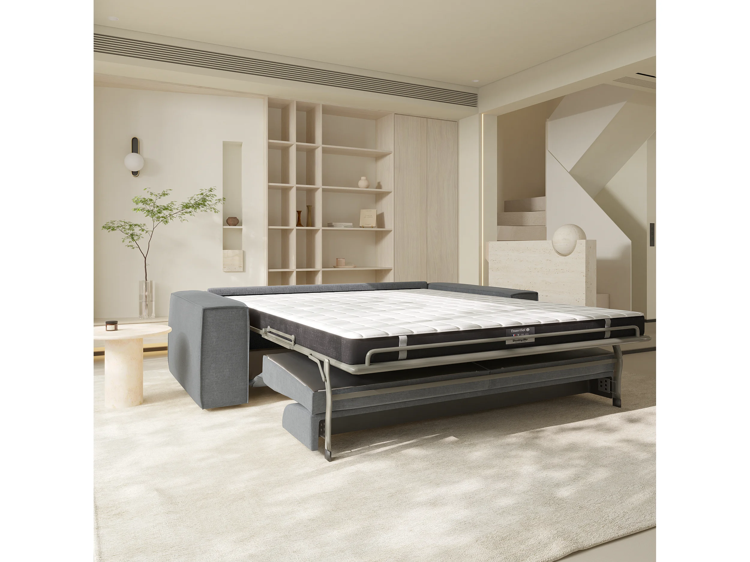 Canapé convertible express dunlopillo velours à motifs gris 140cm JOAN