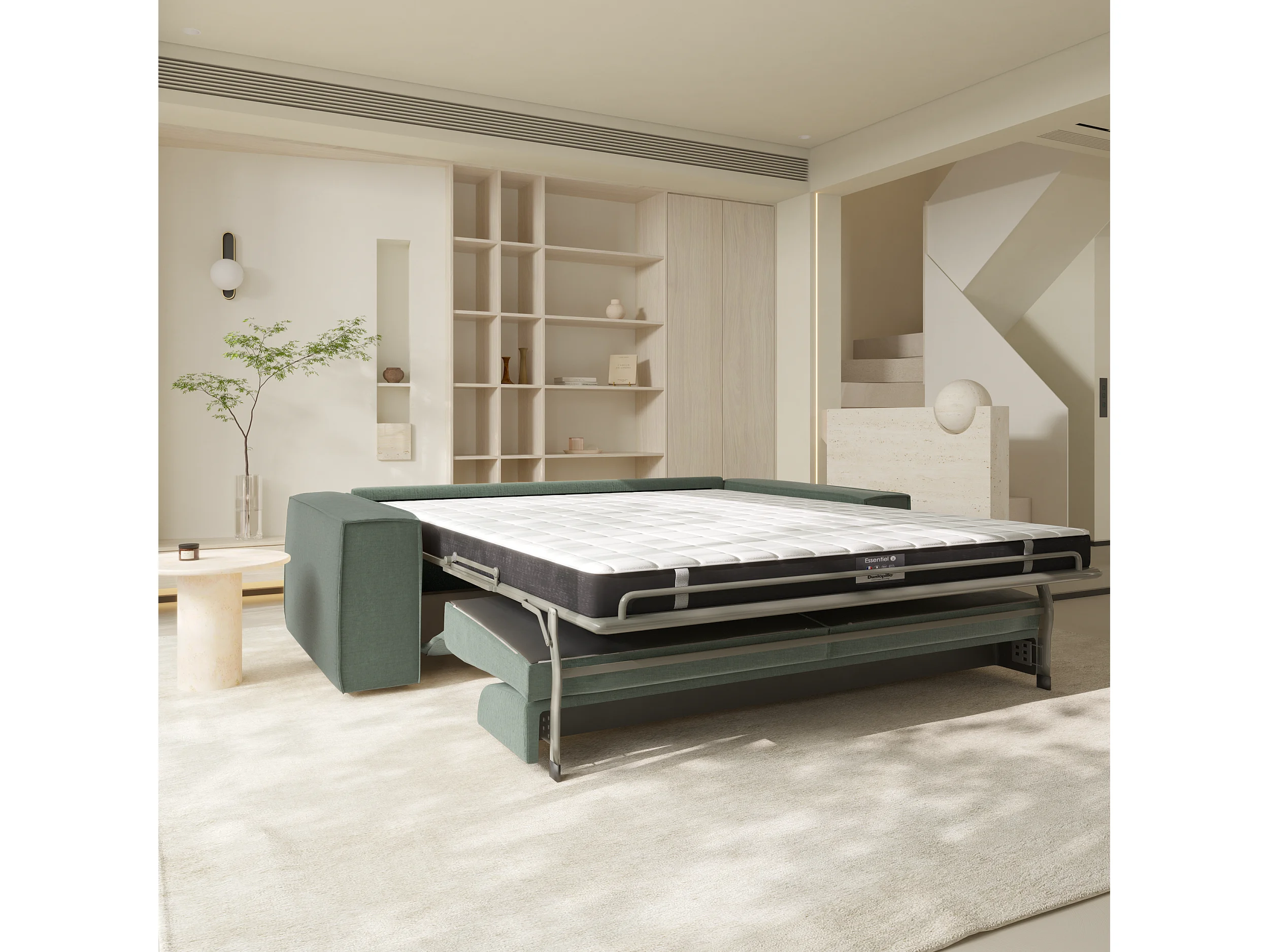 Canapé convertible express dunlopillo velours à motifs vert 140cm