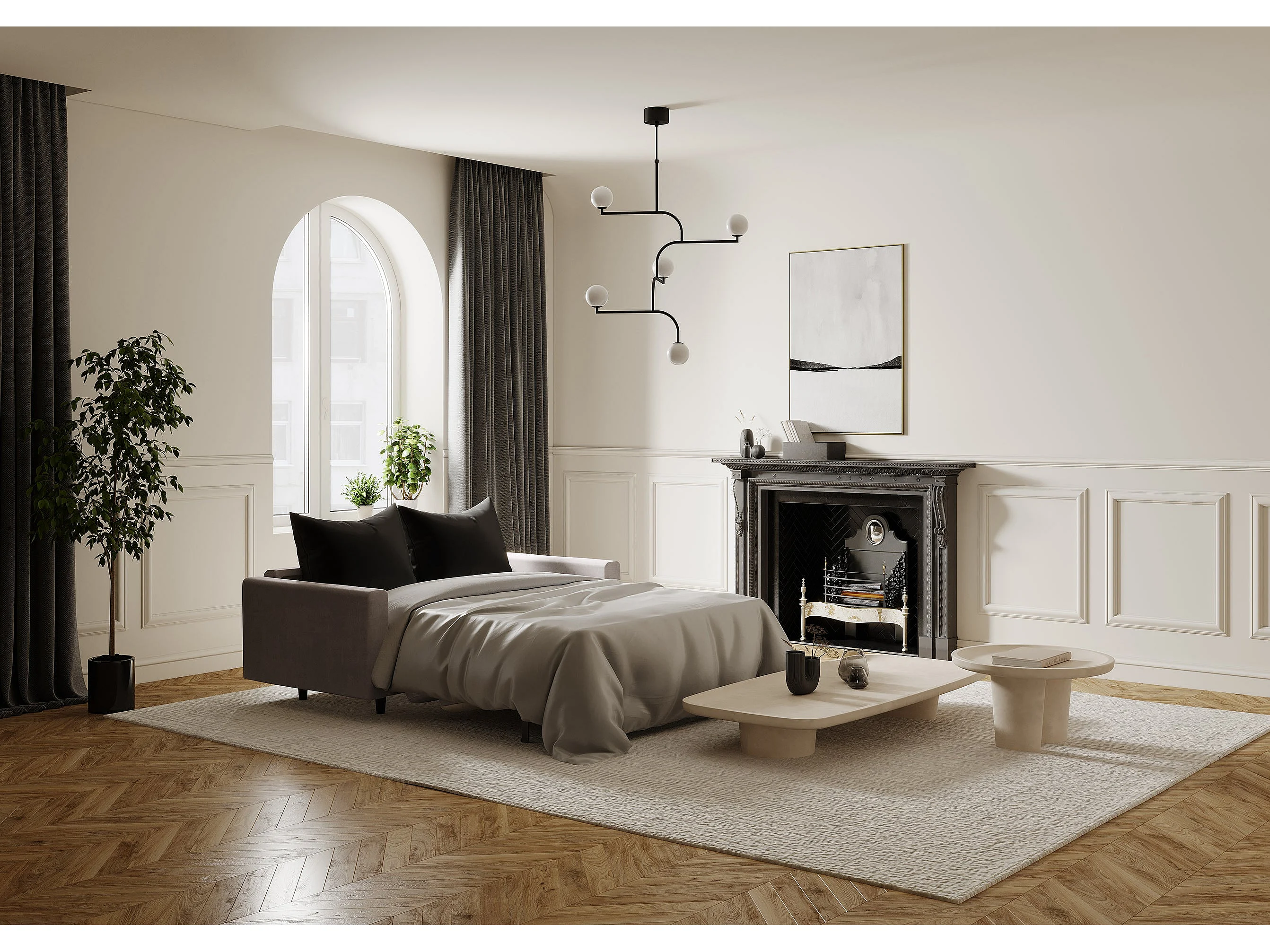 Canapé convertible express dunlopillo velours beige taupe 140cm Hailie Jade