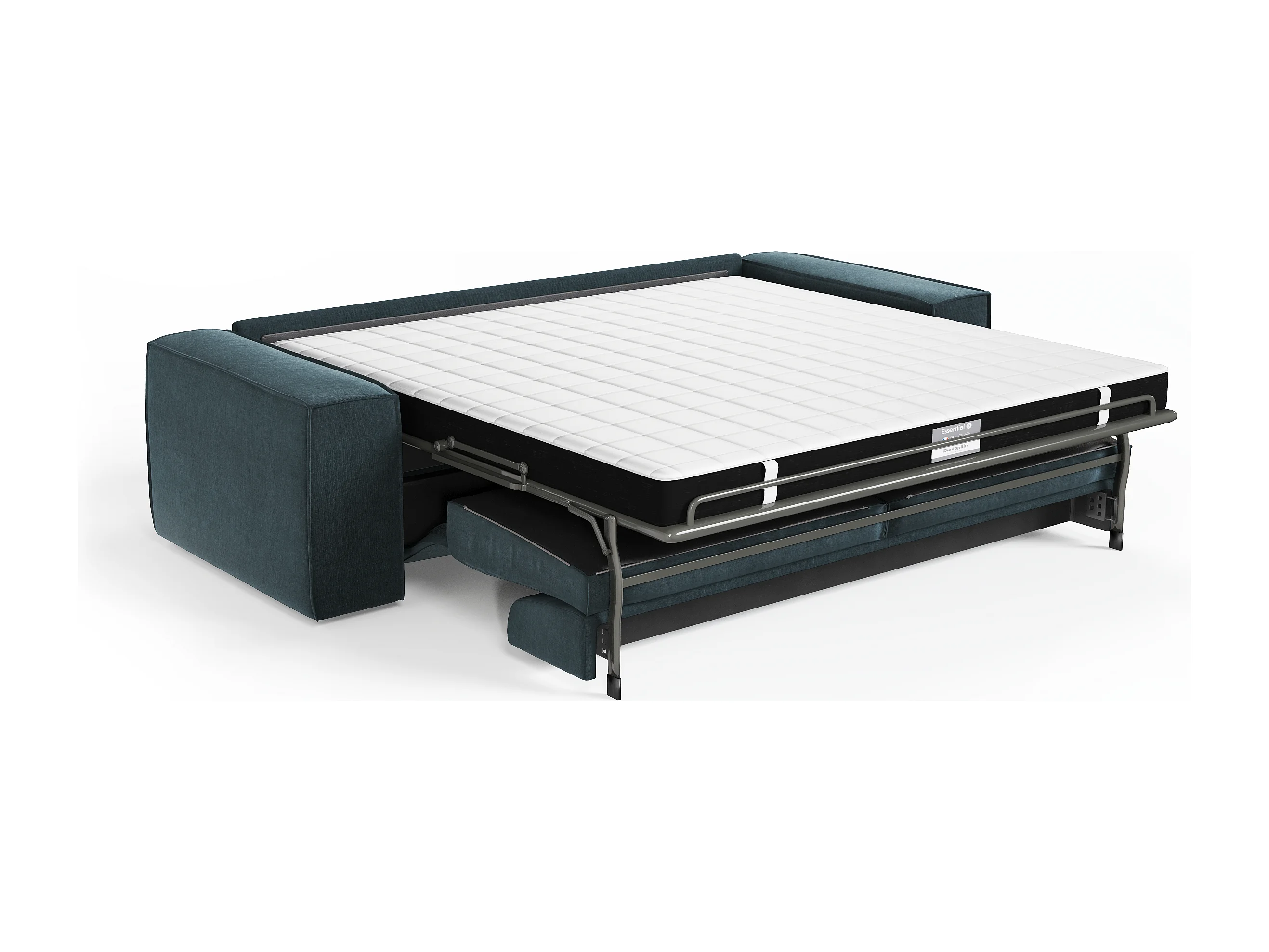 Canapé convertible express dunlopillo velours bleu paon 160cm JOAN