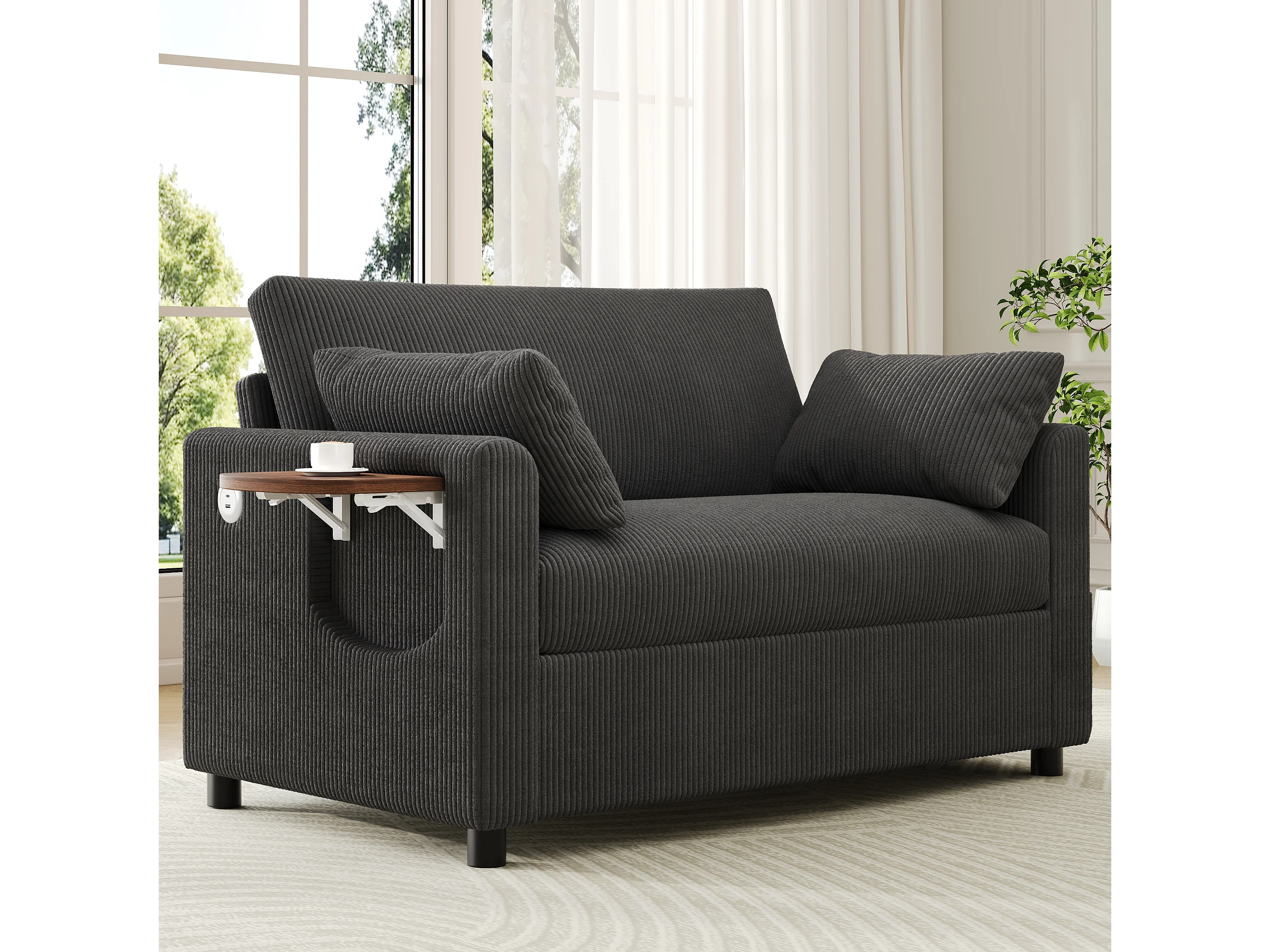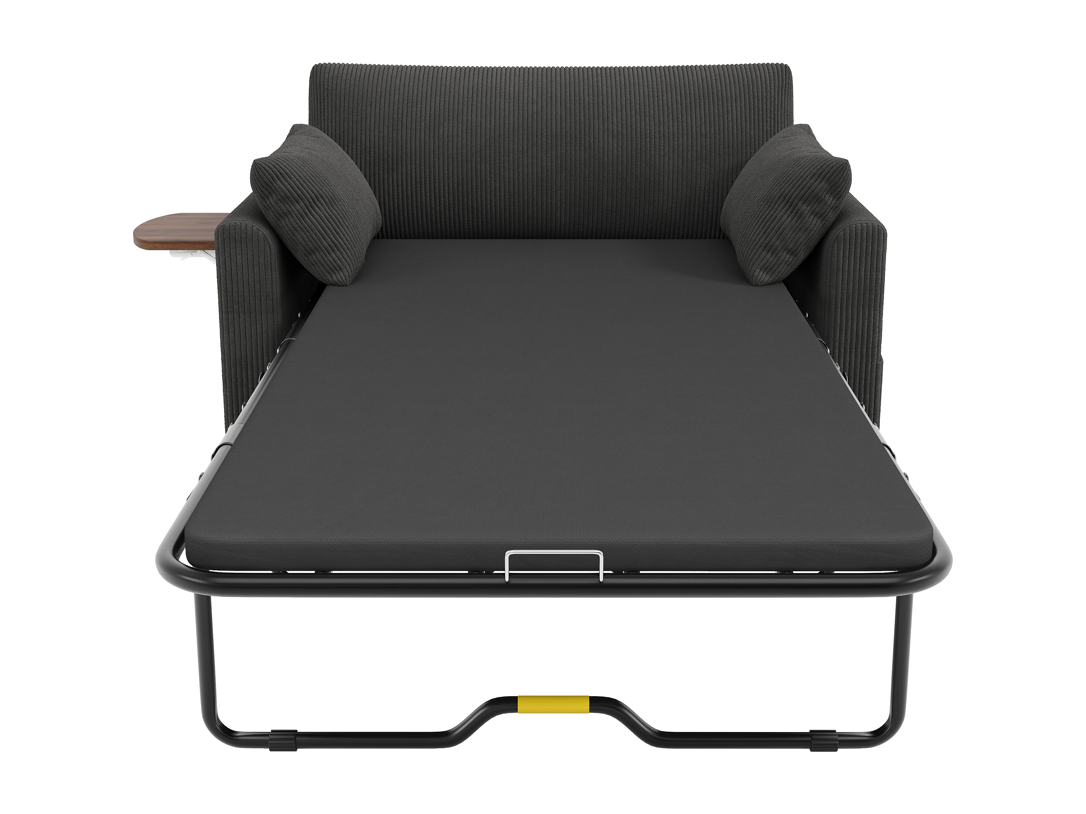 Canapé convertible extensible - 134 x 82 x 84 cm - avec USB + table pliante + matelas + 2 draps et 2 oreillers - velours - gris