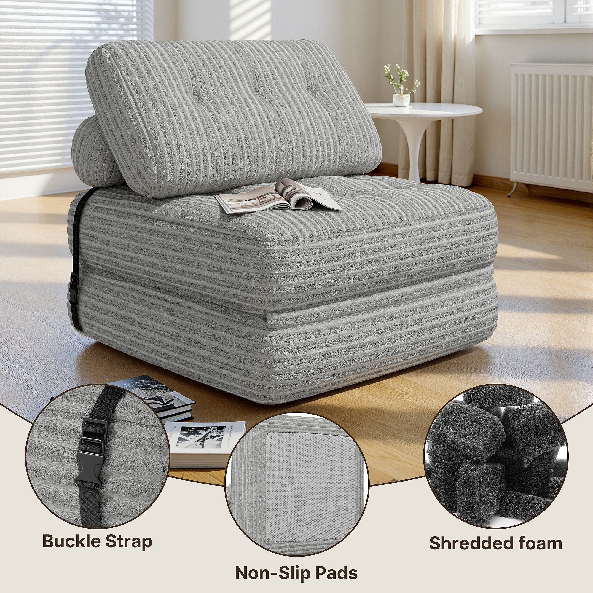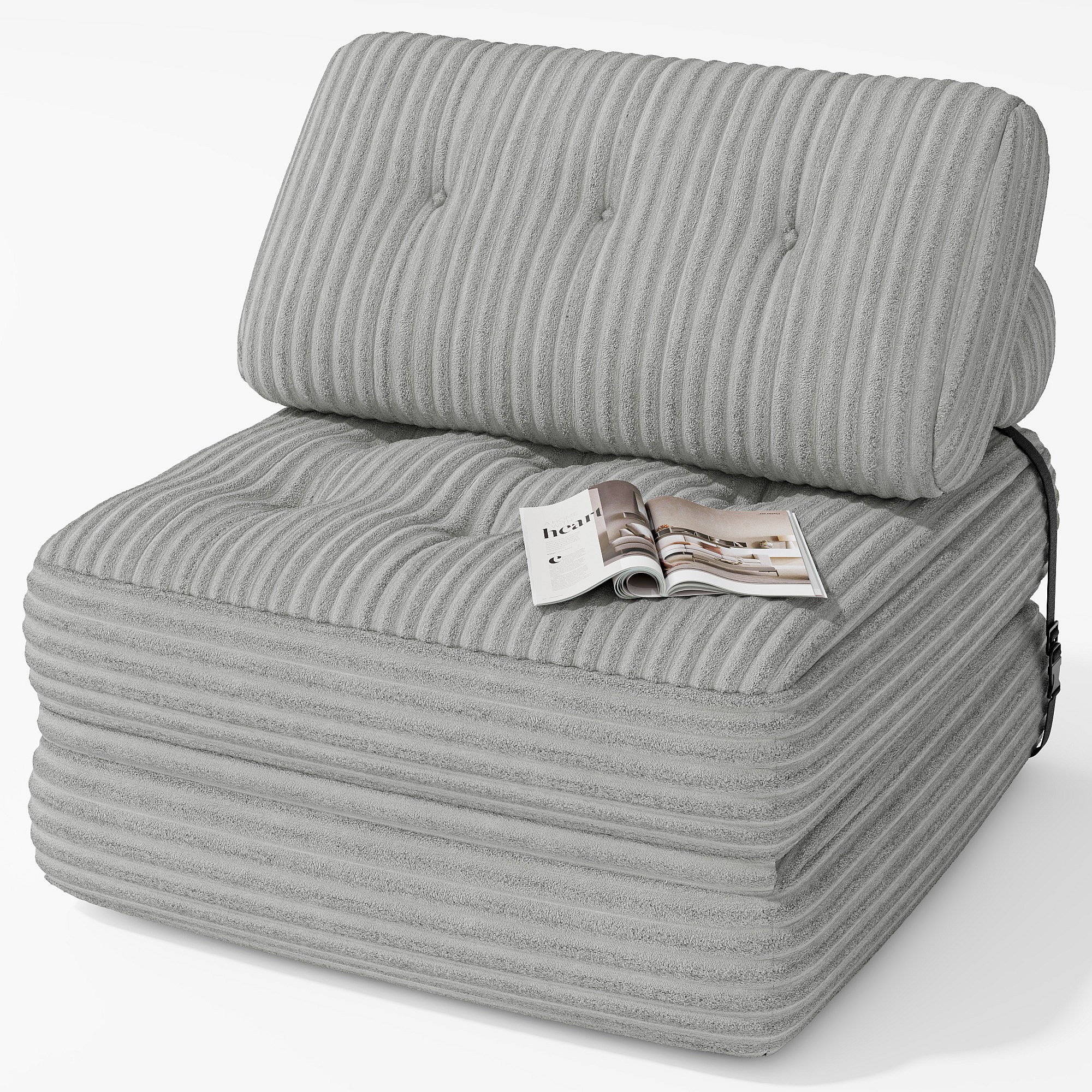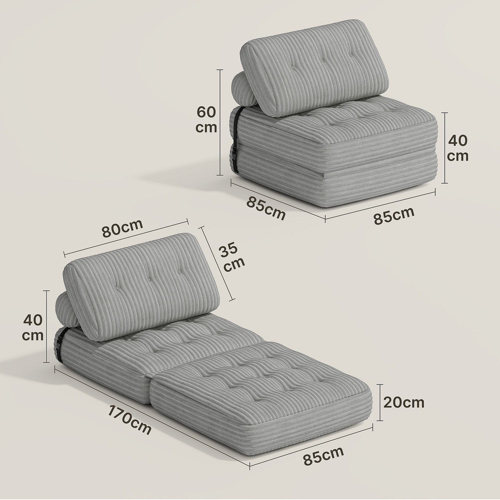 Canapé Convertible Fauteuil Lit 1 Place Dossier Sans Installation Gris clair Velours Côtelé 85x85cm
