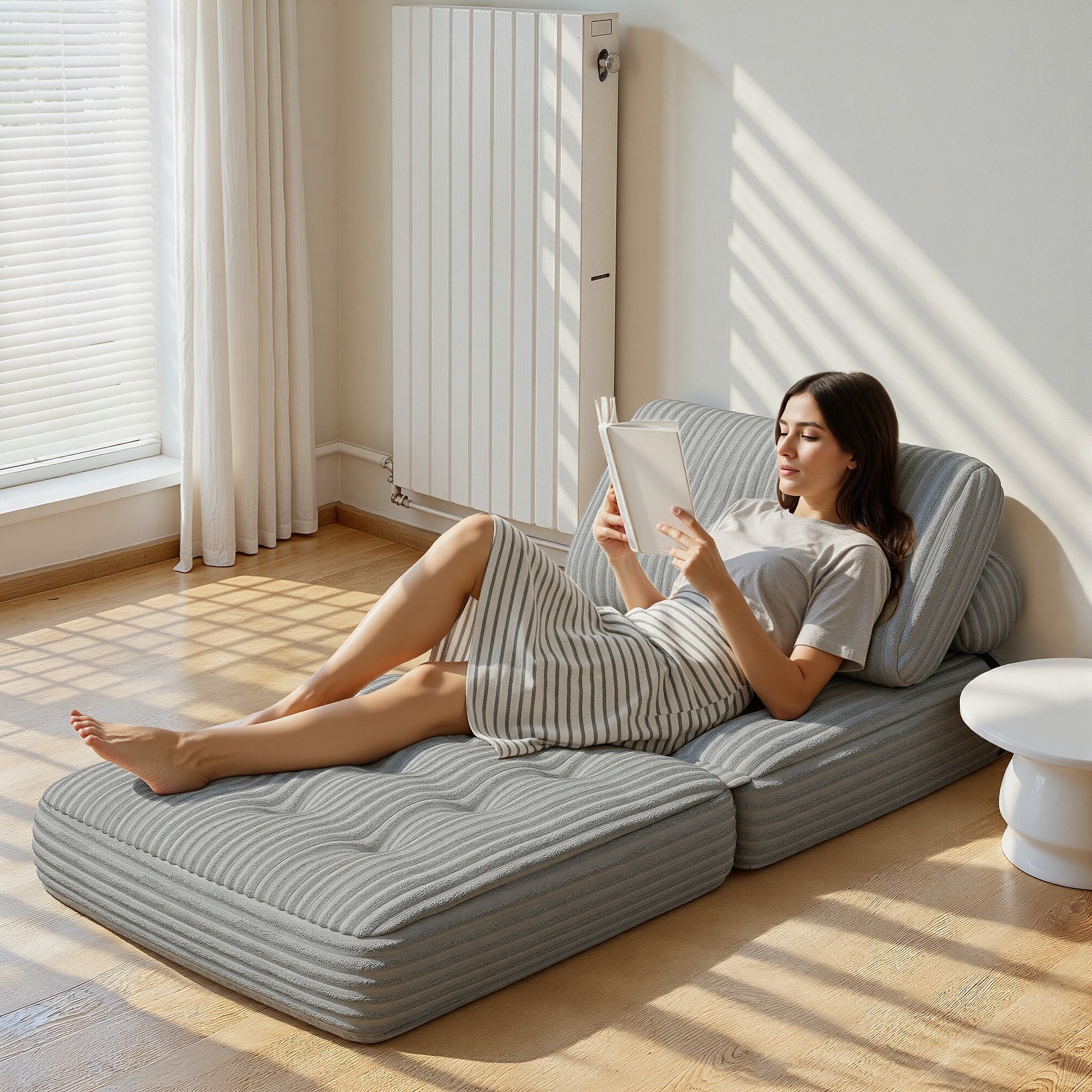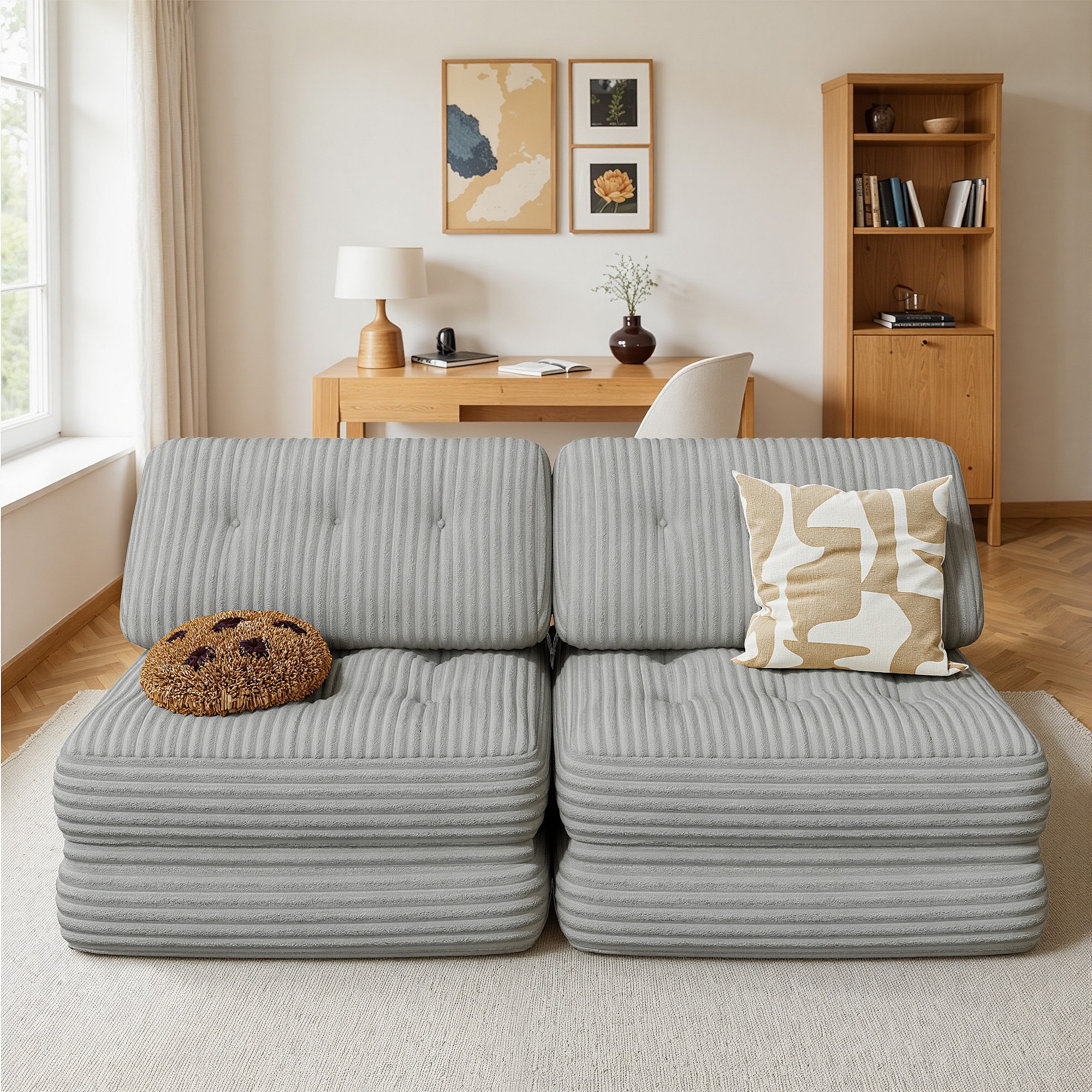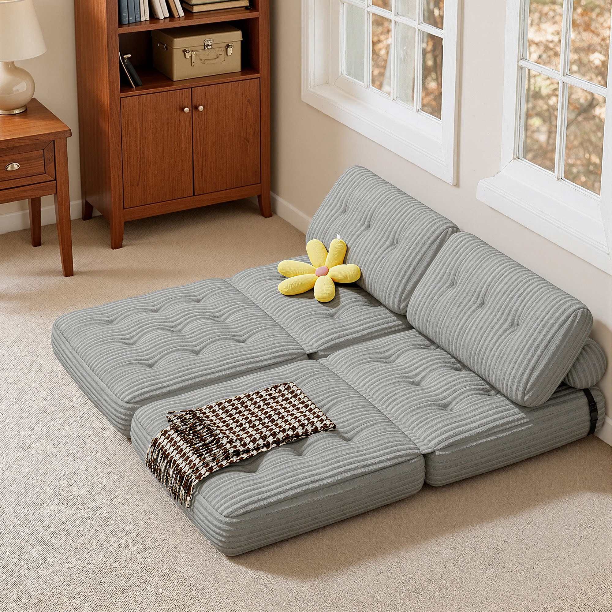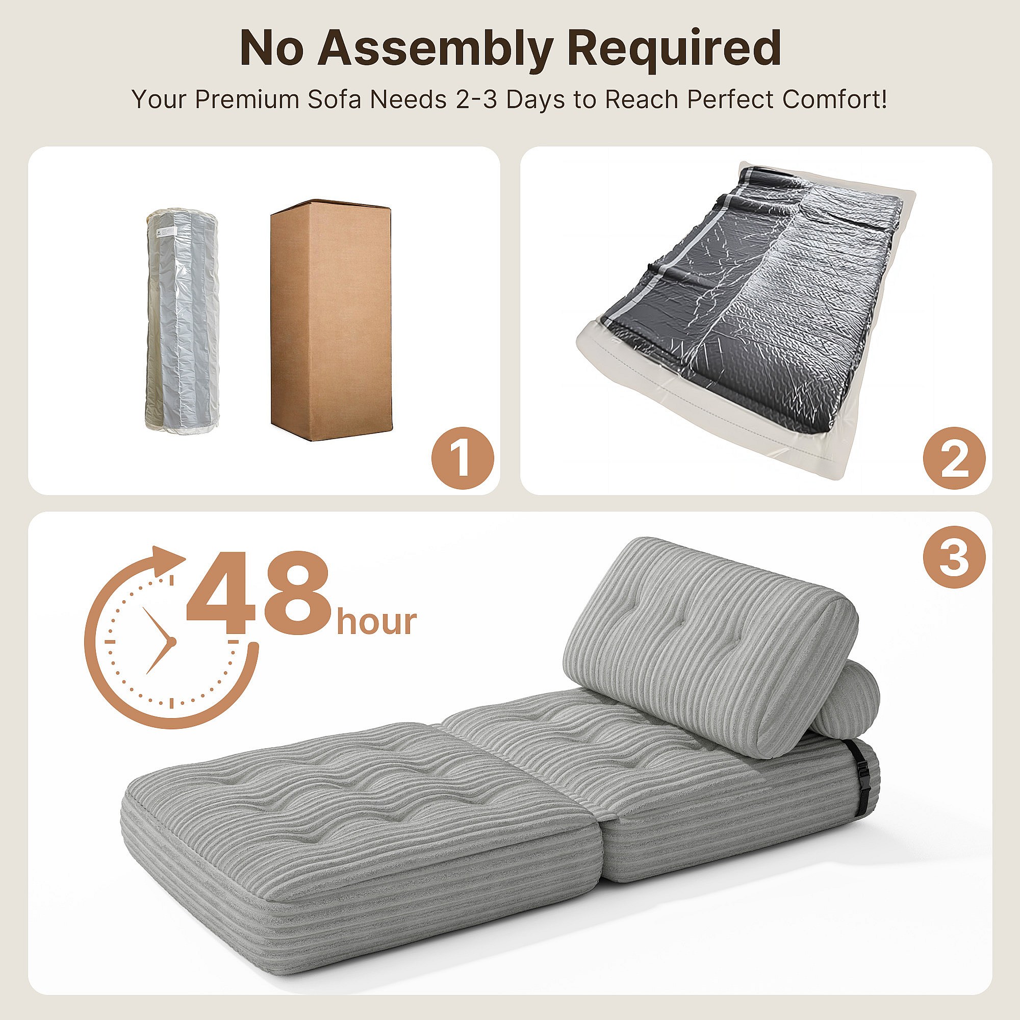 Canapé Convertible Fauteuil Lit 1 Place Dossier Sans Installation Gris clair Velours Côtelé 85x85cm