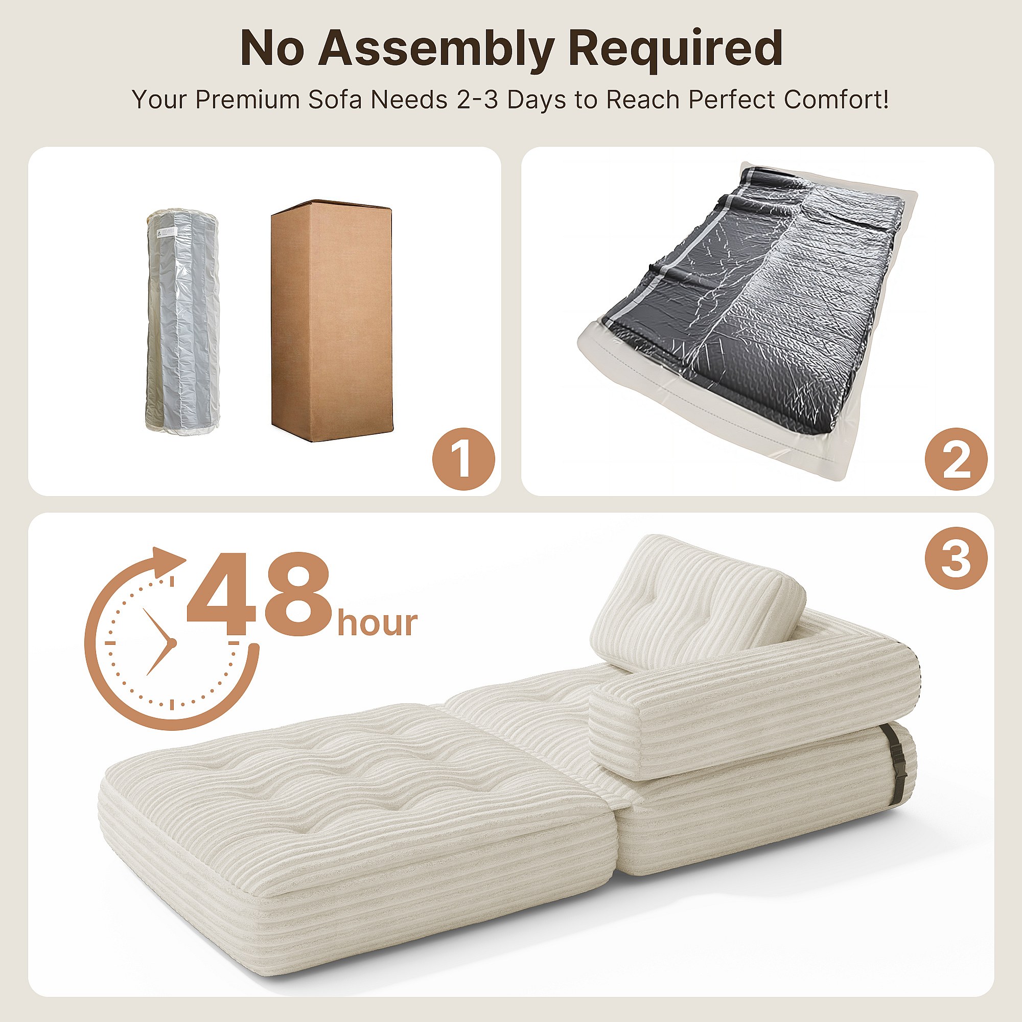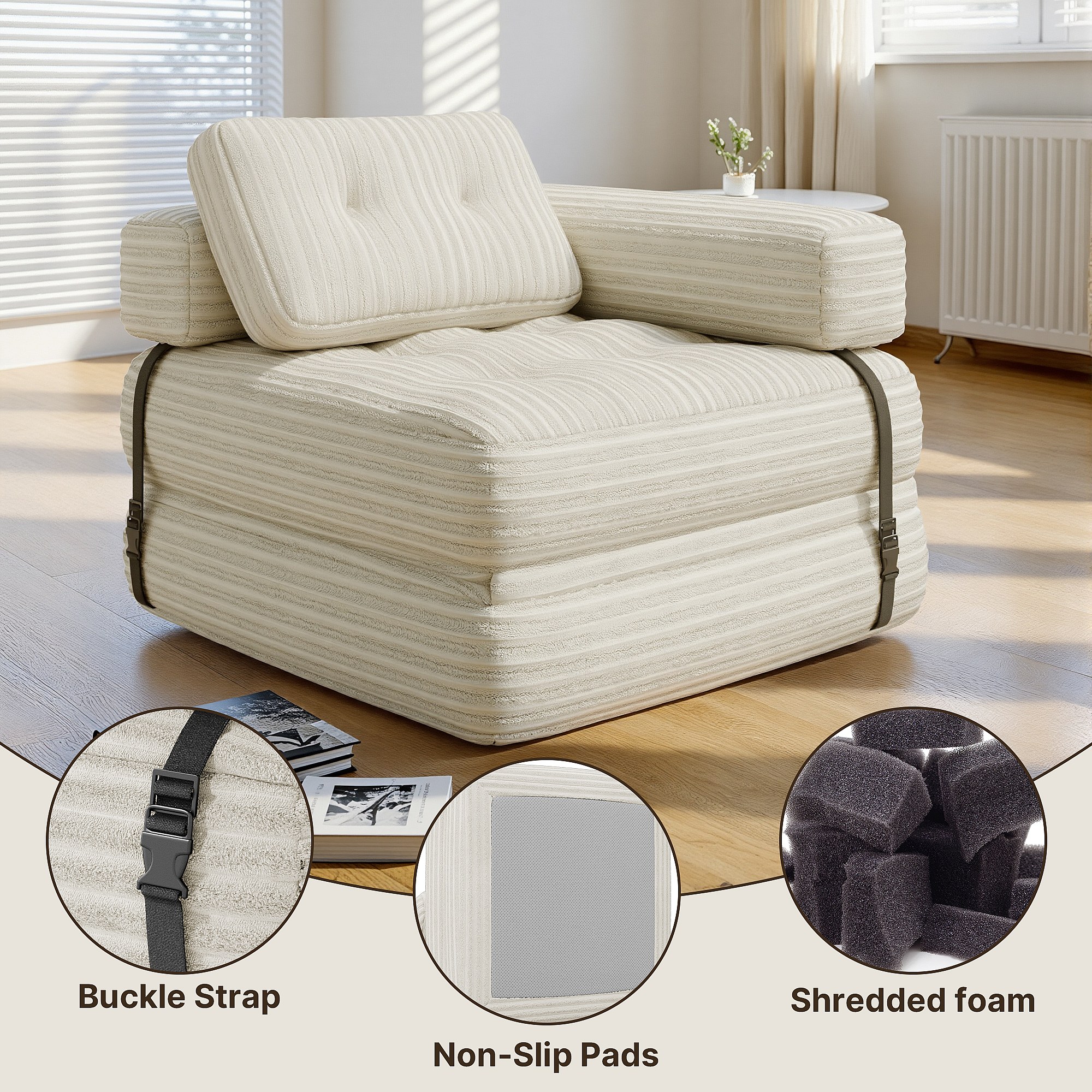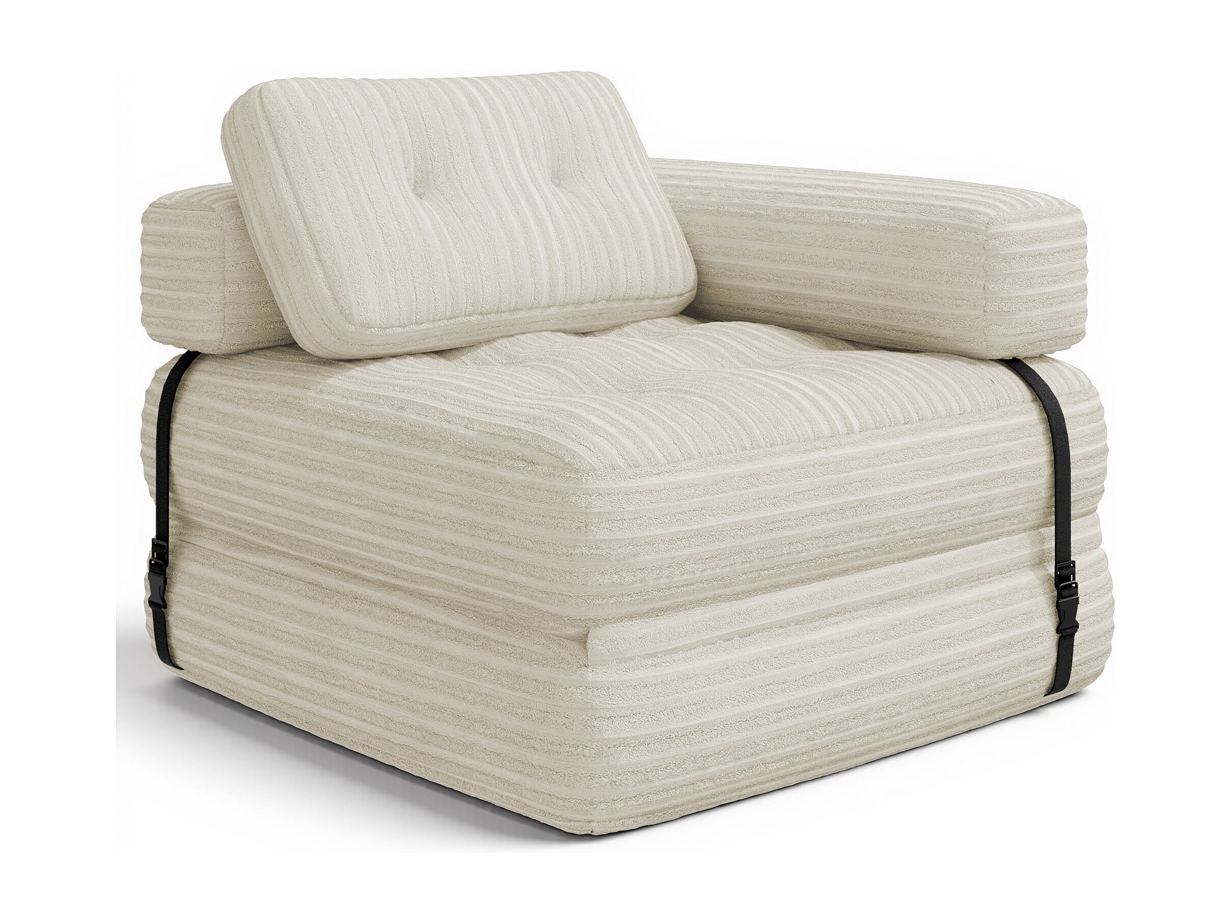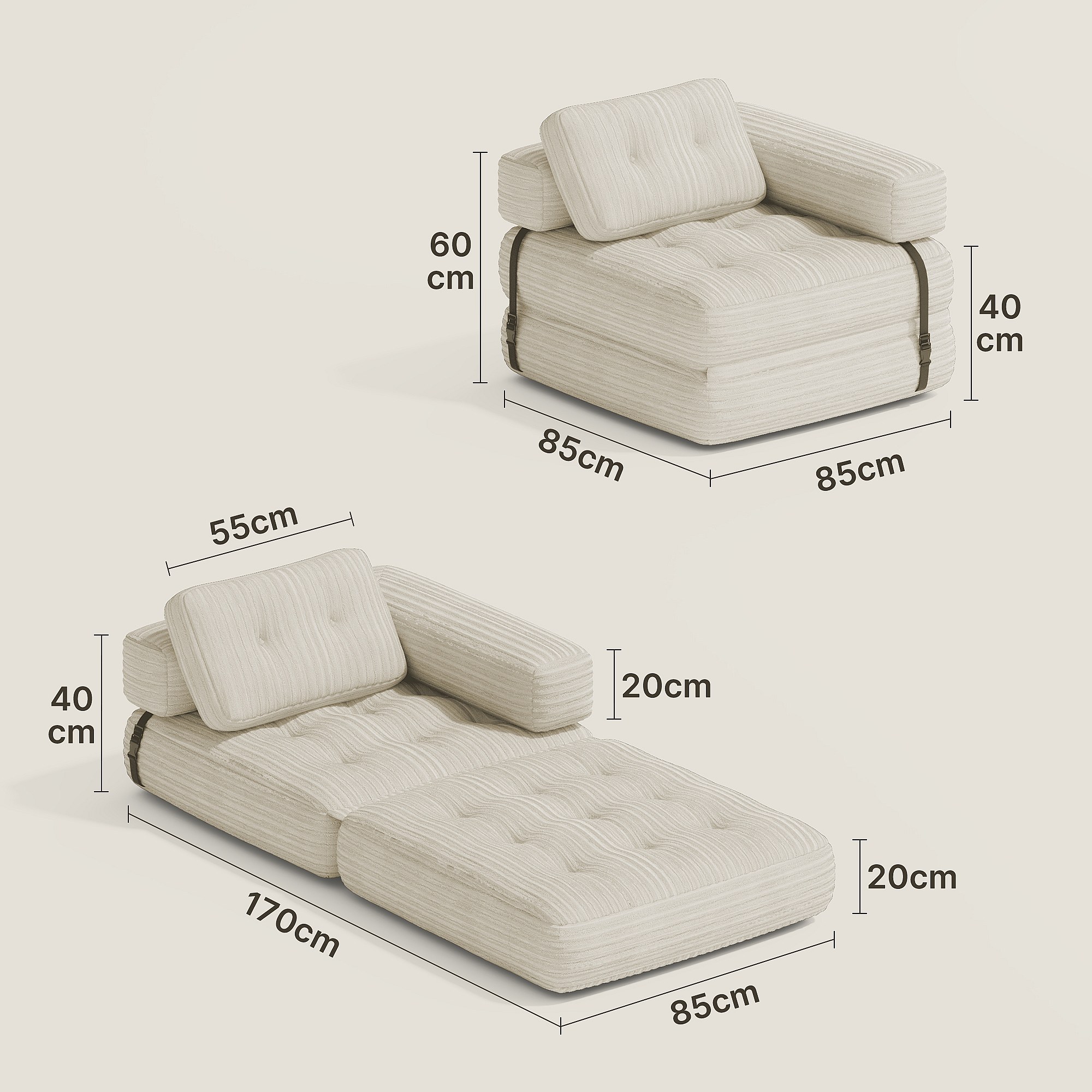 Canapé Convertible Fauteuil Lit 1 Place en L Blanc Velours Côtelé Longue Coussin 85 x 85 cm