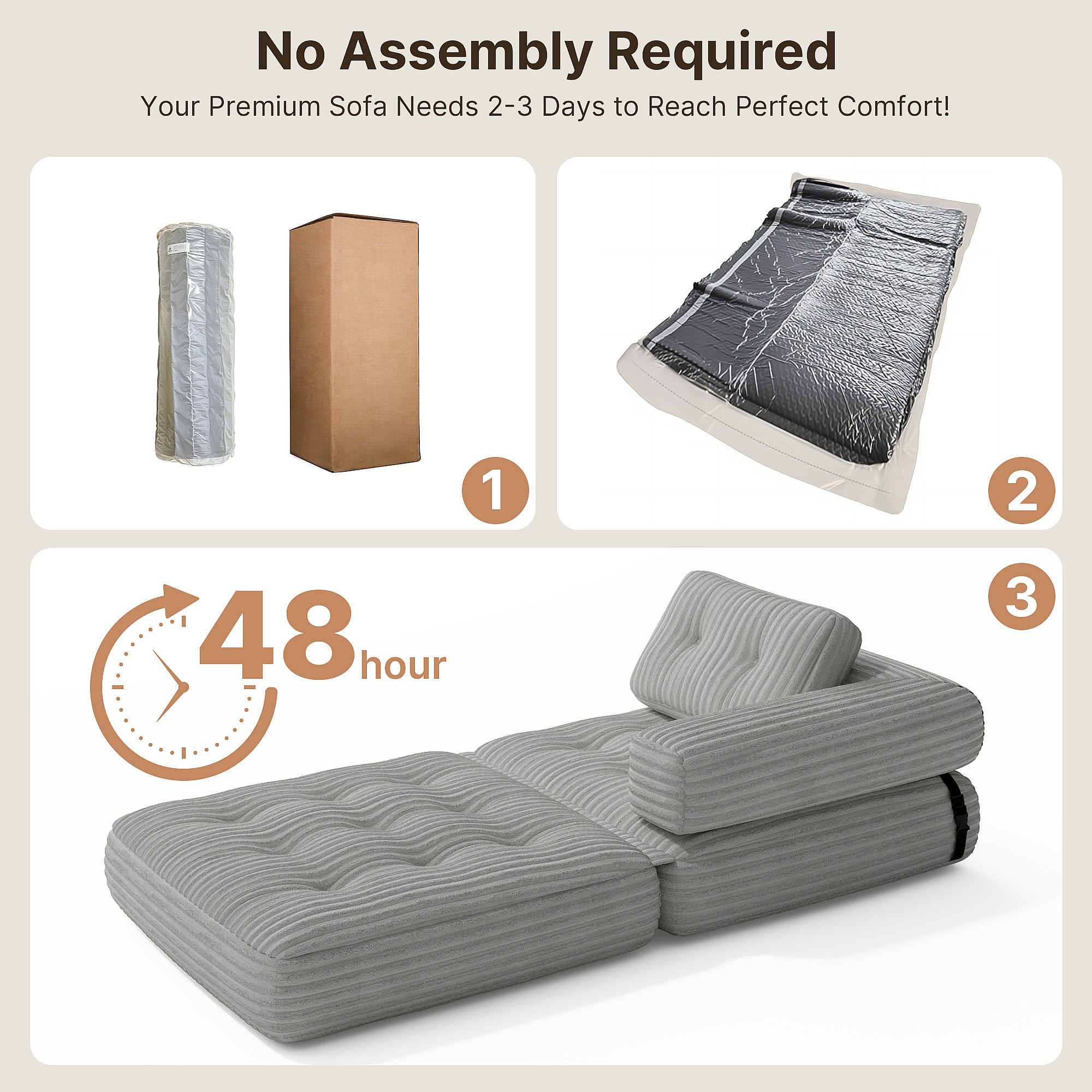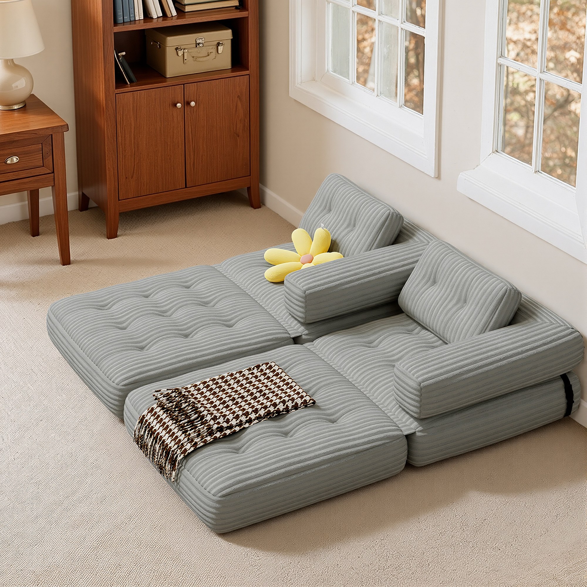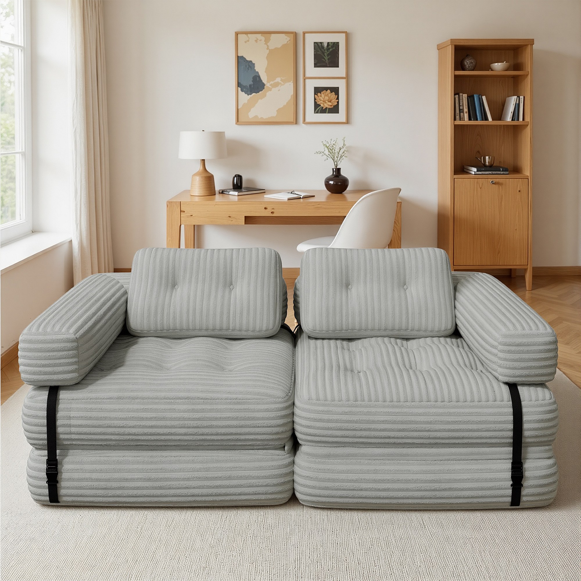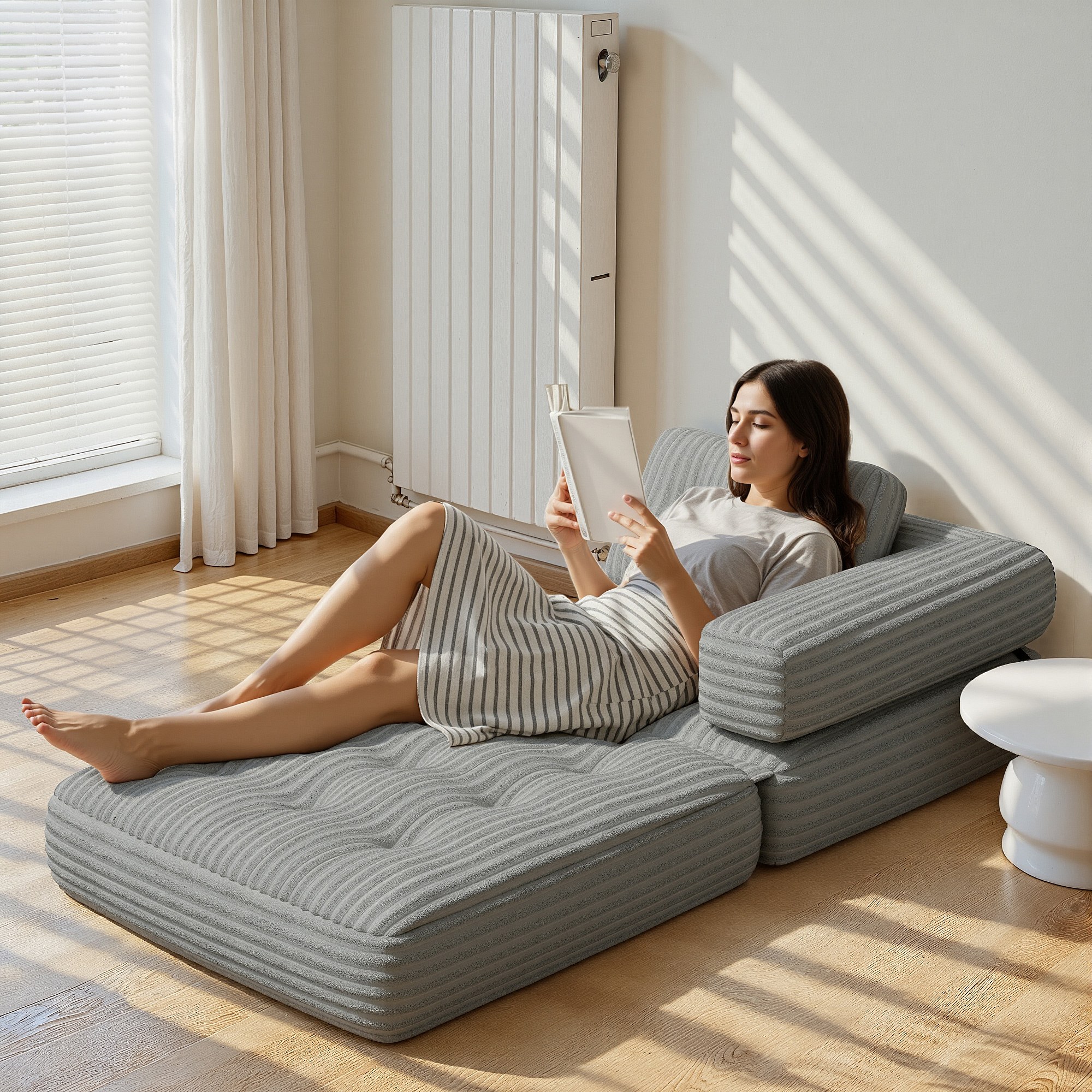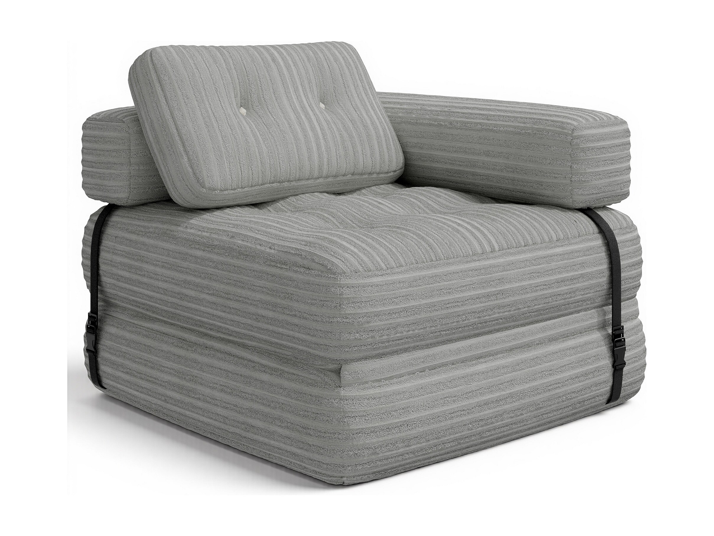Canapé Convertible Fauteuil Lit 1 Place en L Gris clair Velours Côtelé Longue Coussin 85 x 85 cm