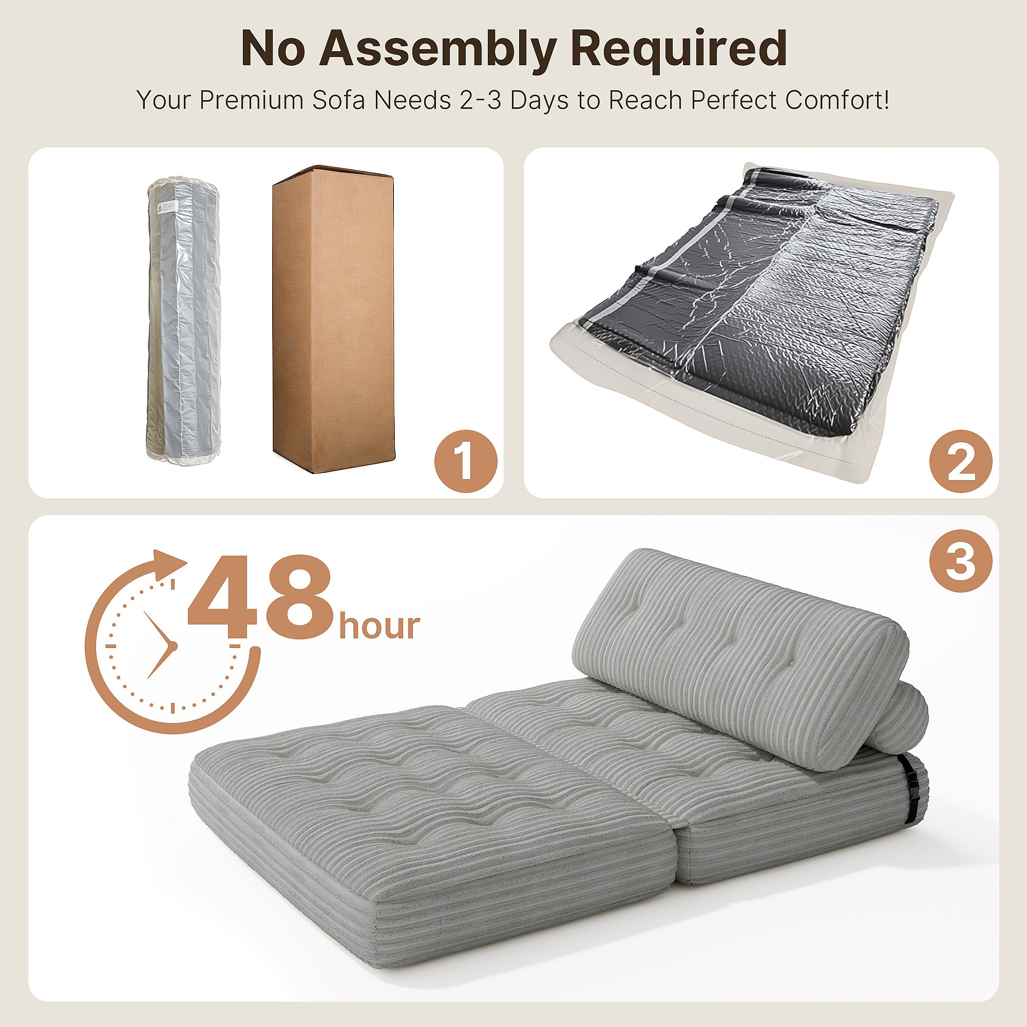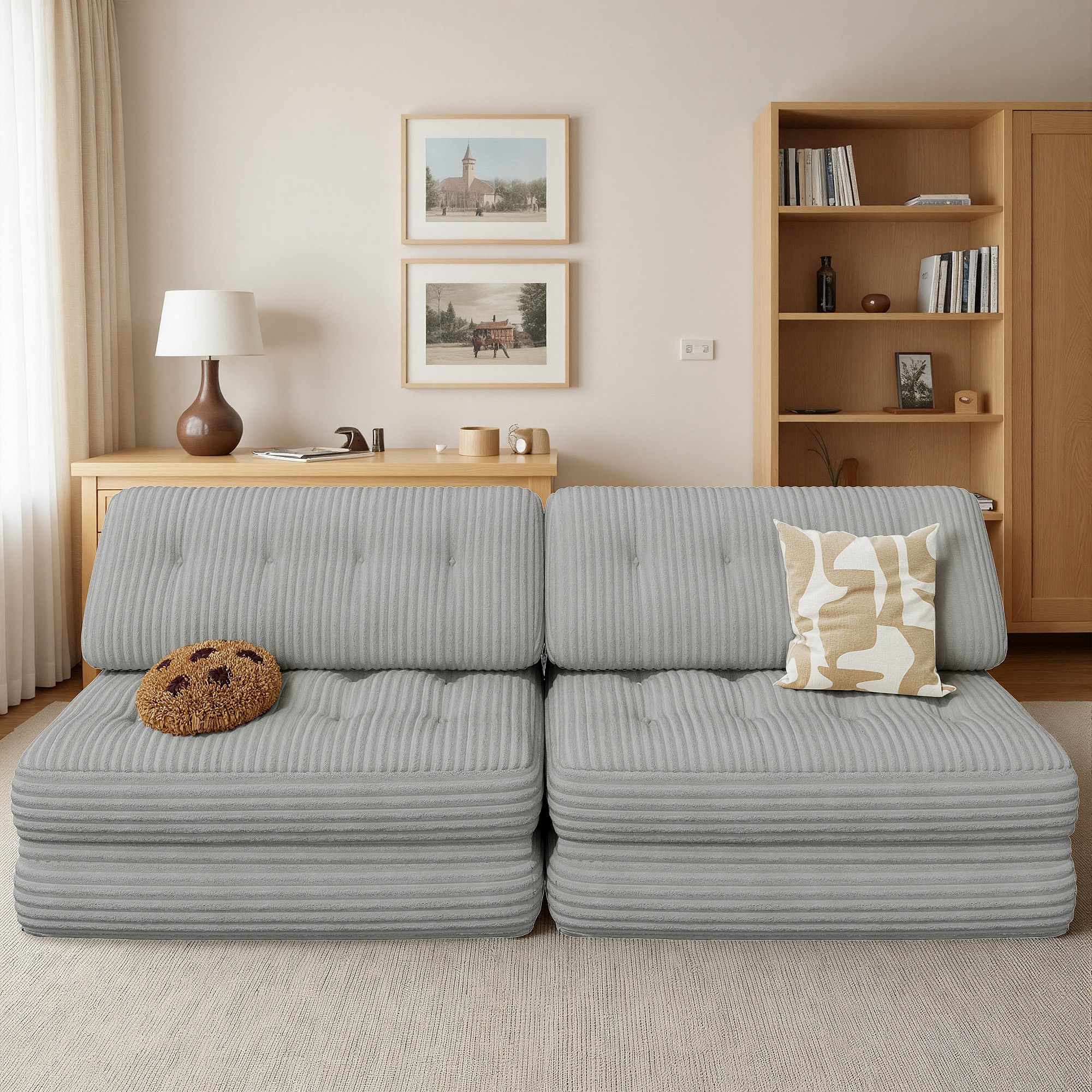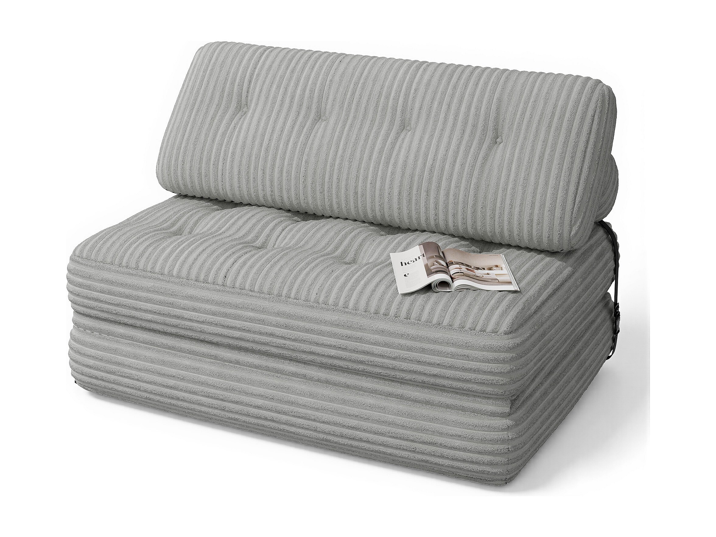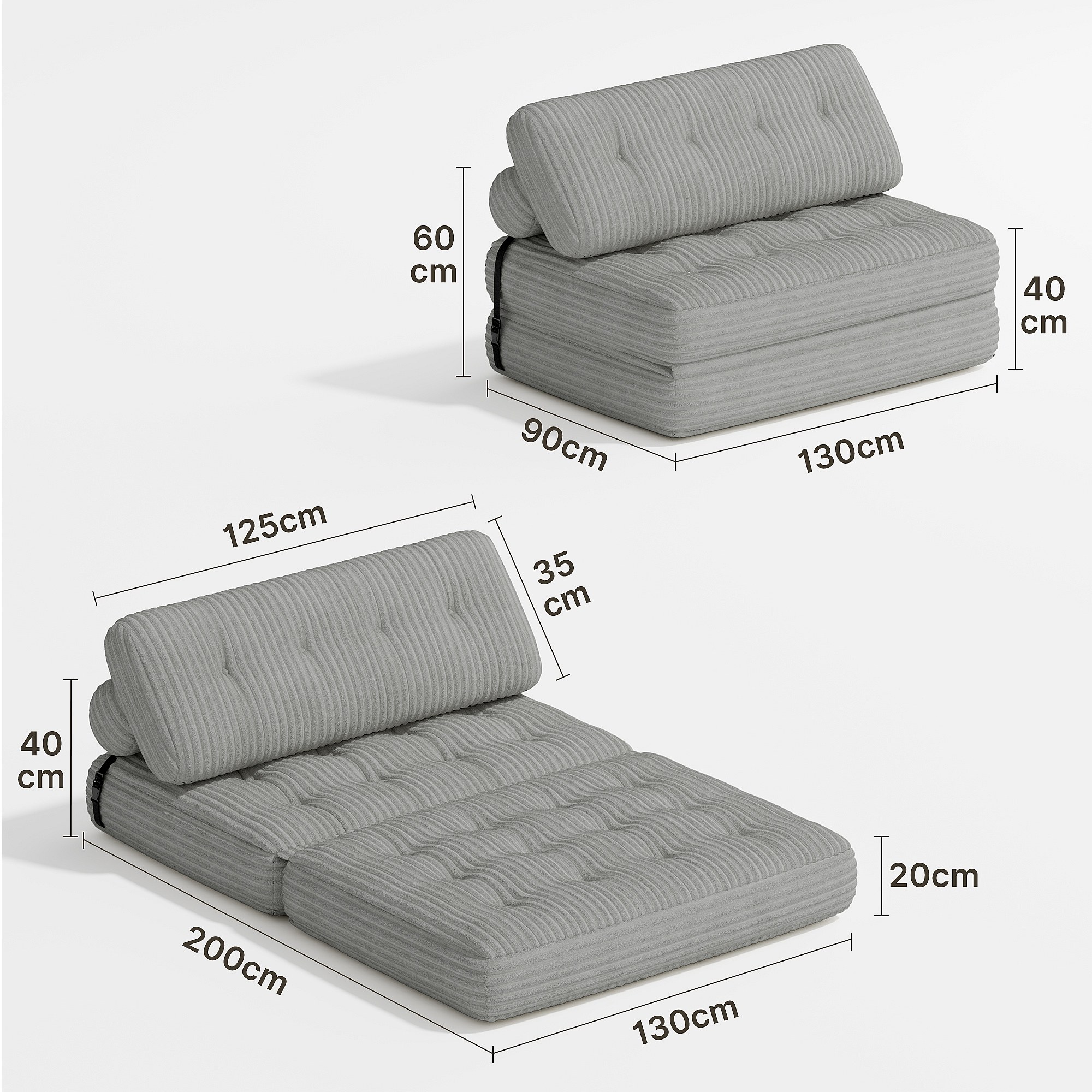 Canapé Convertible Fauteuil Lit 2 Place Dossier Gris clair Velours Côtelé Longue Coussin 130x90cm