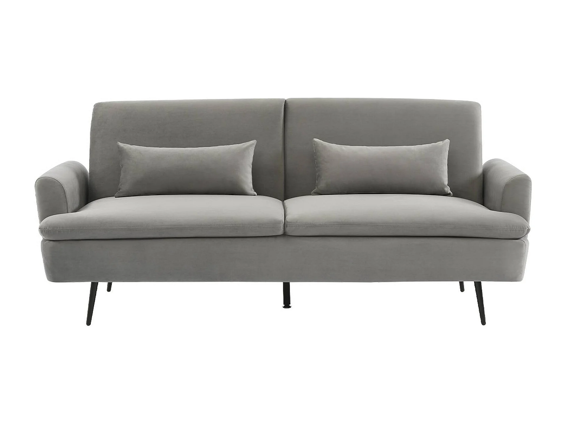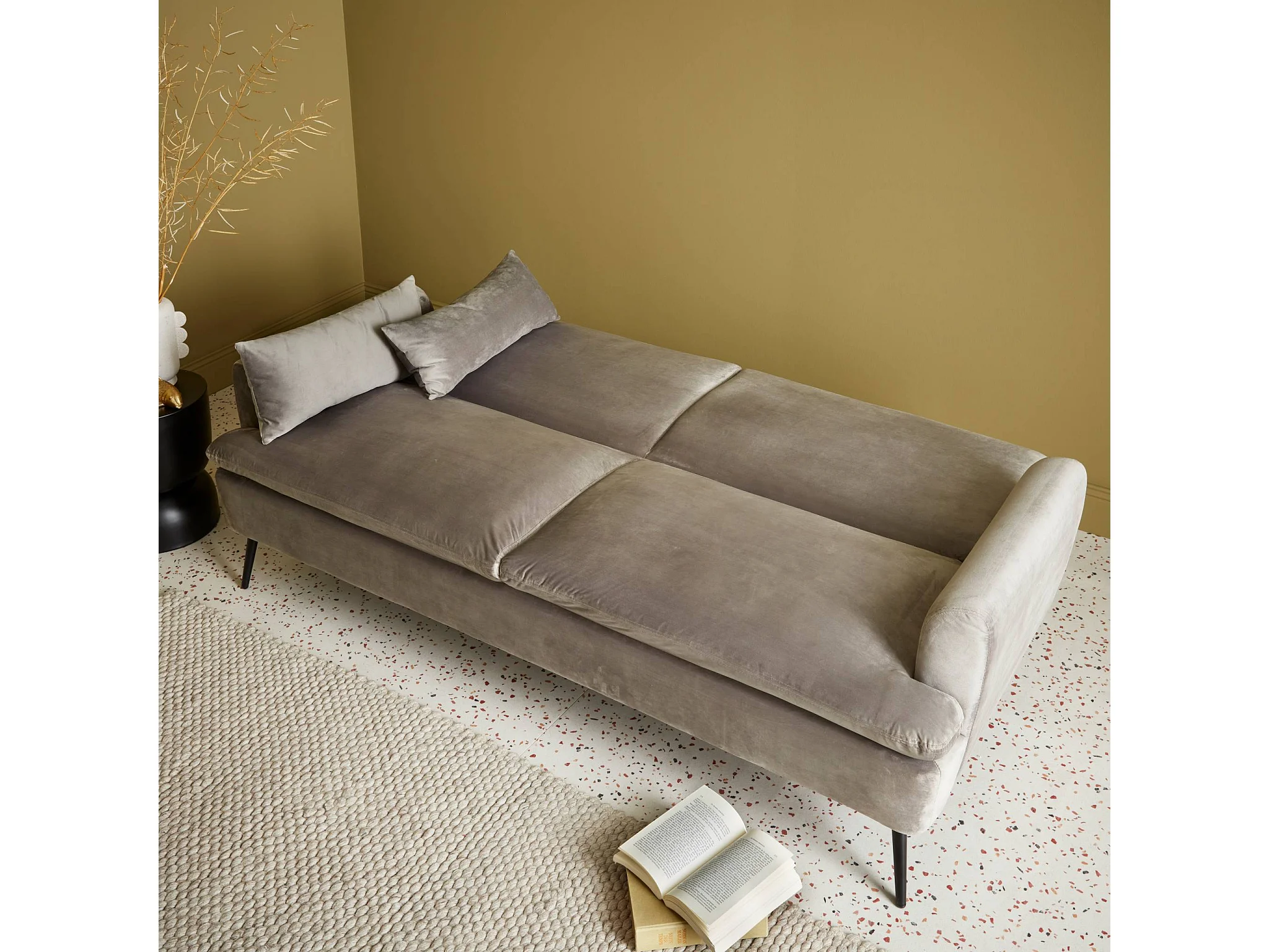 Canapé convertible. John. 2-3 places pieds métal et velours gris clair L 210 x P111 x H48cm