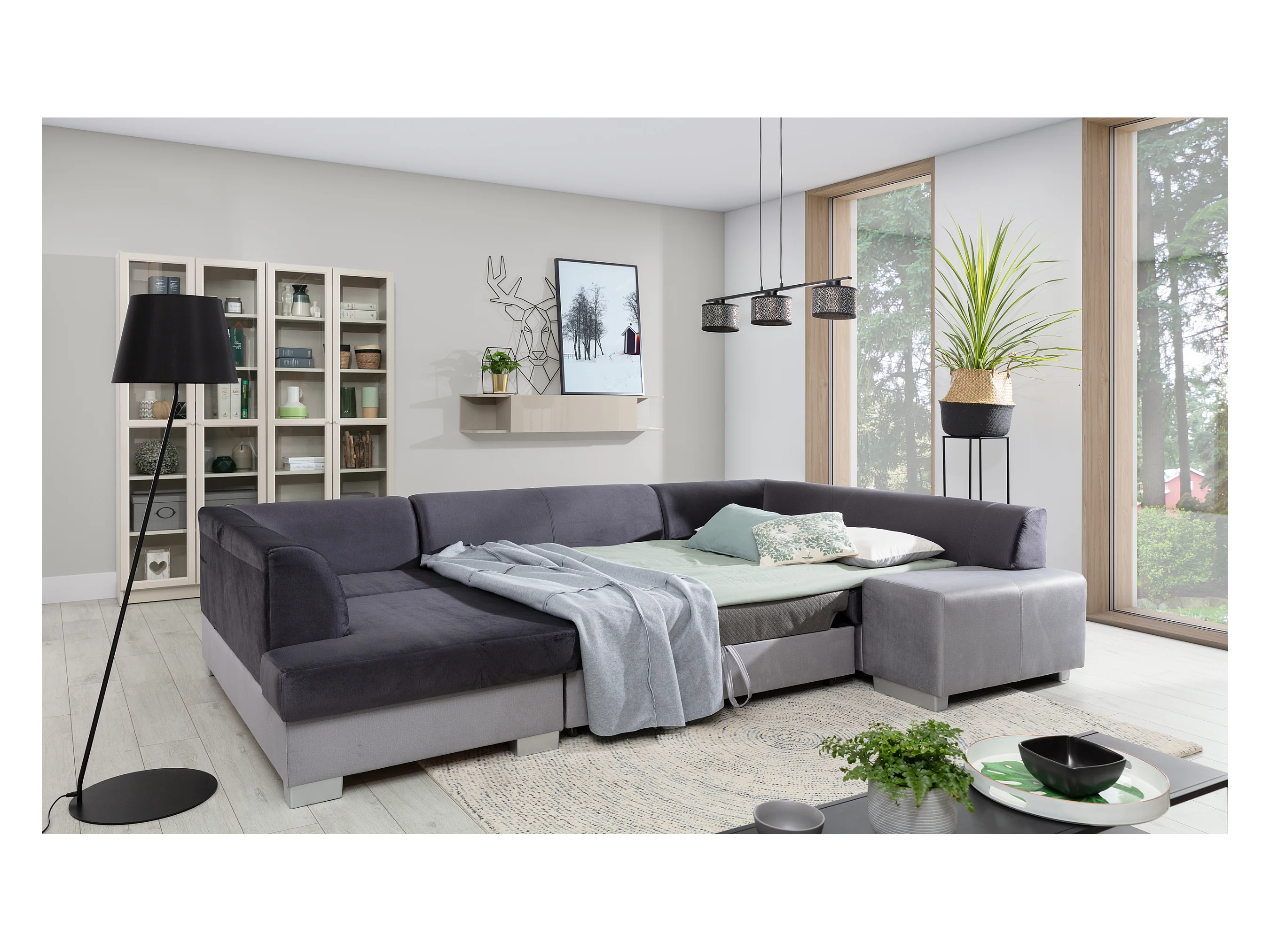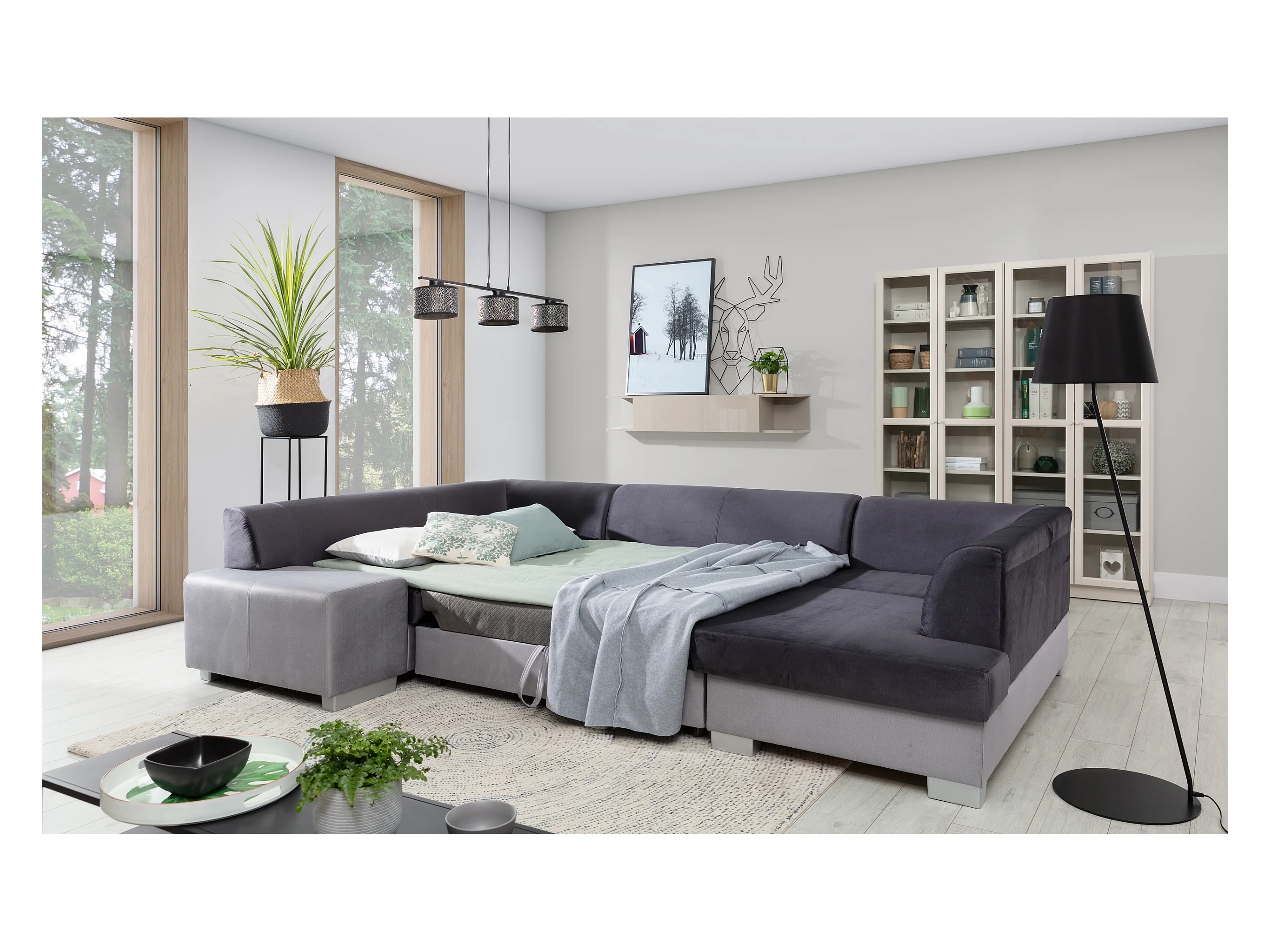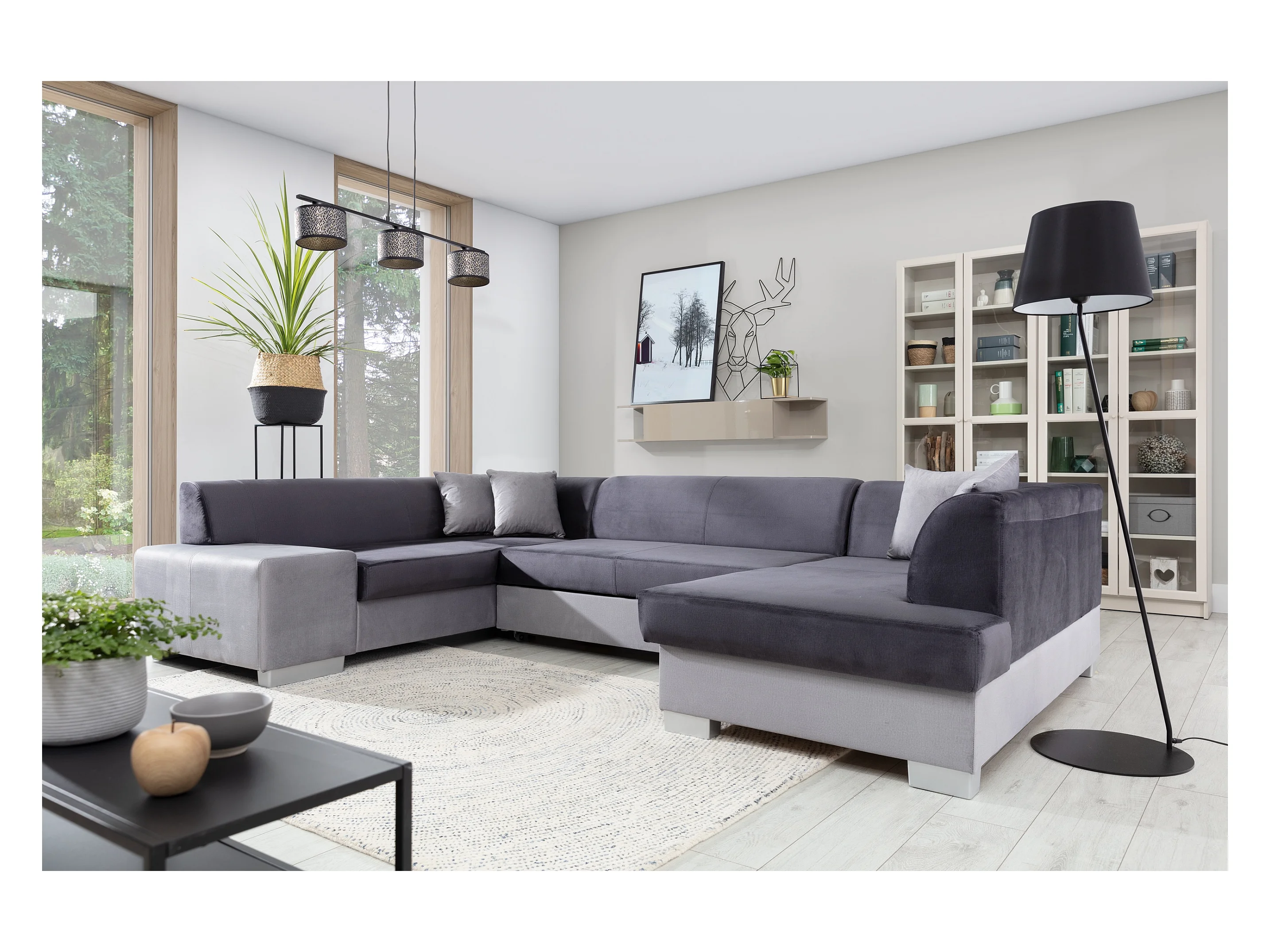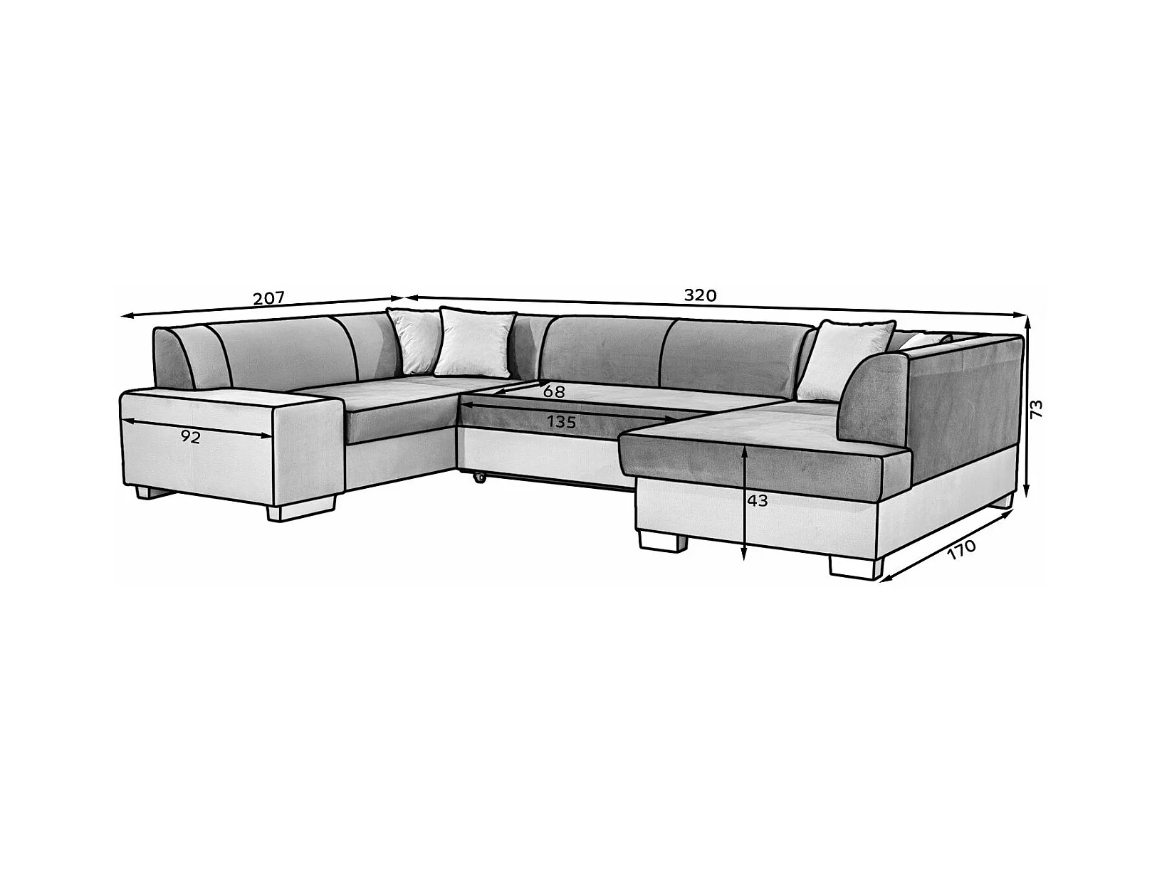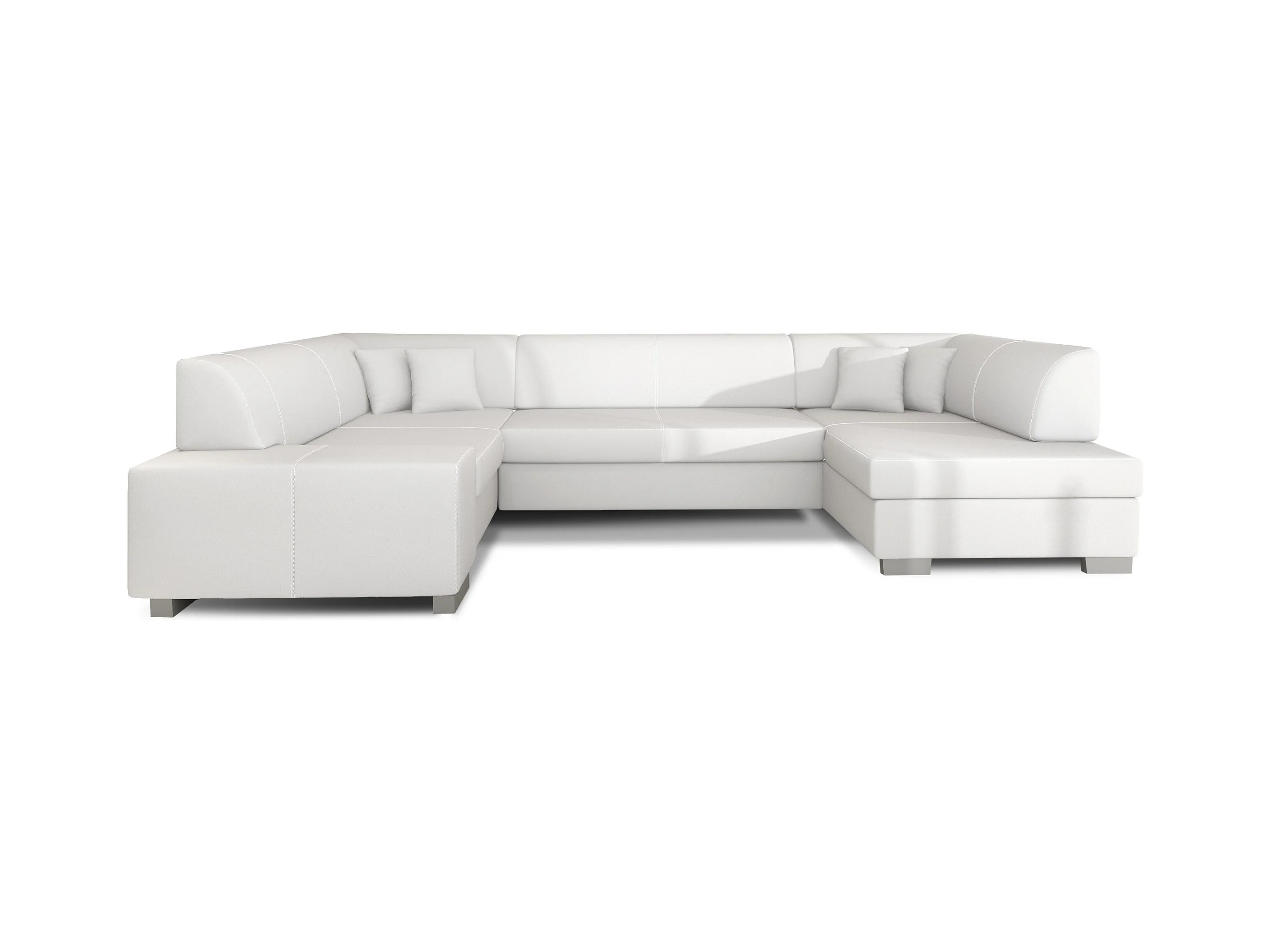 Canapé convertible panoramique simili cuir blanc avec coffre de rangement Houston 320cm-Coffre de rangement à droite
