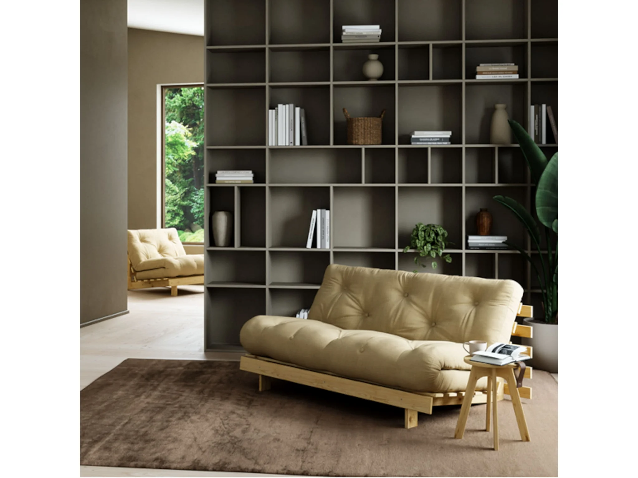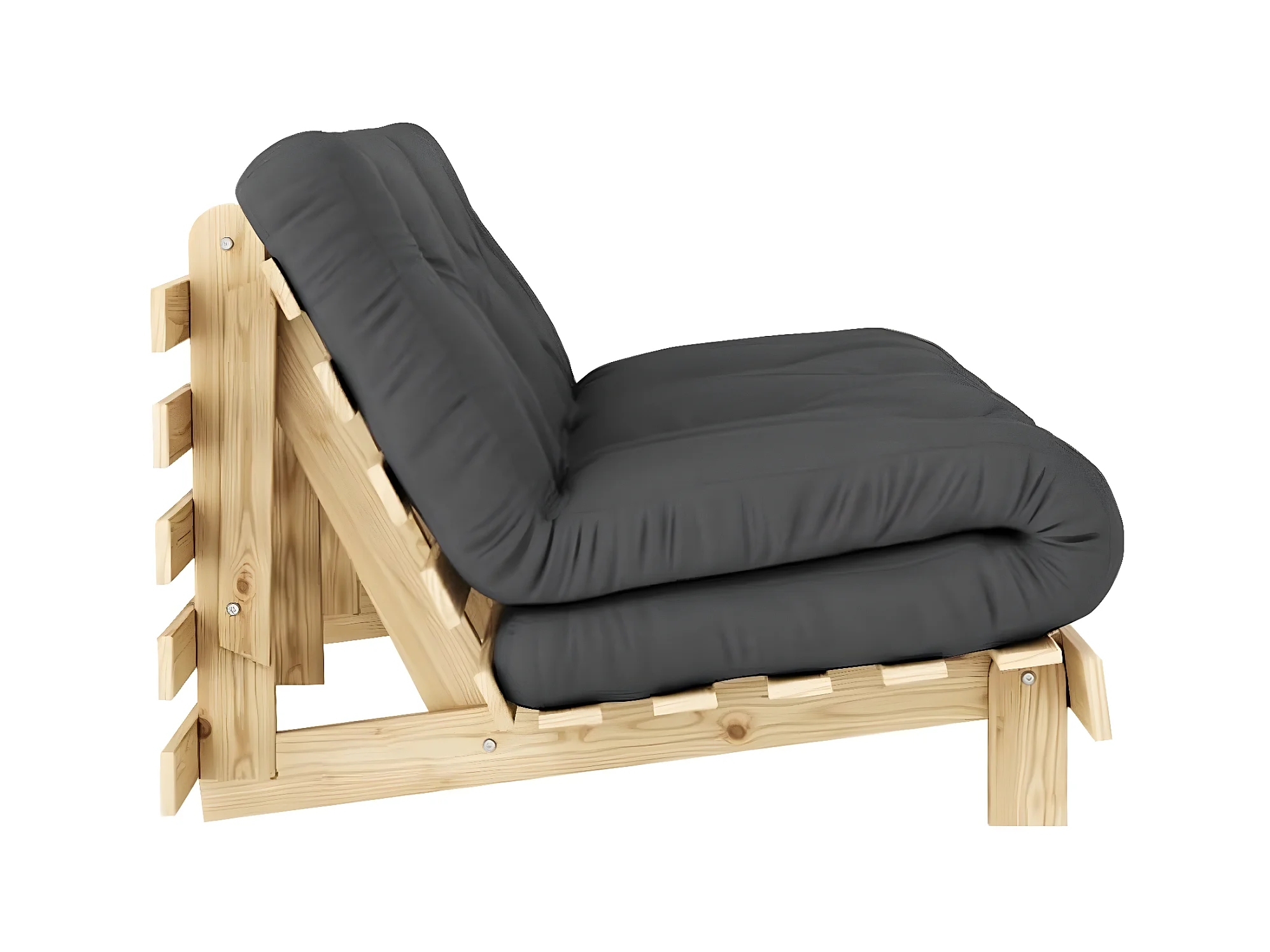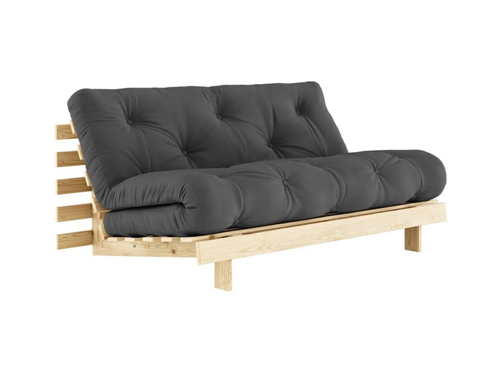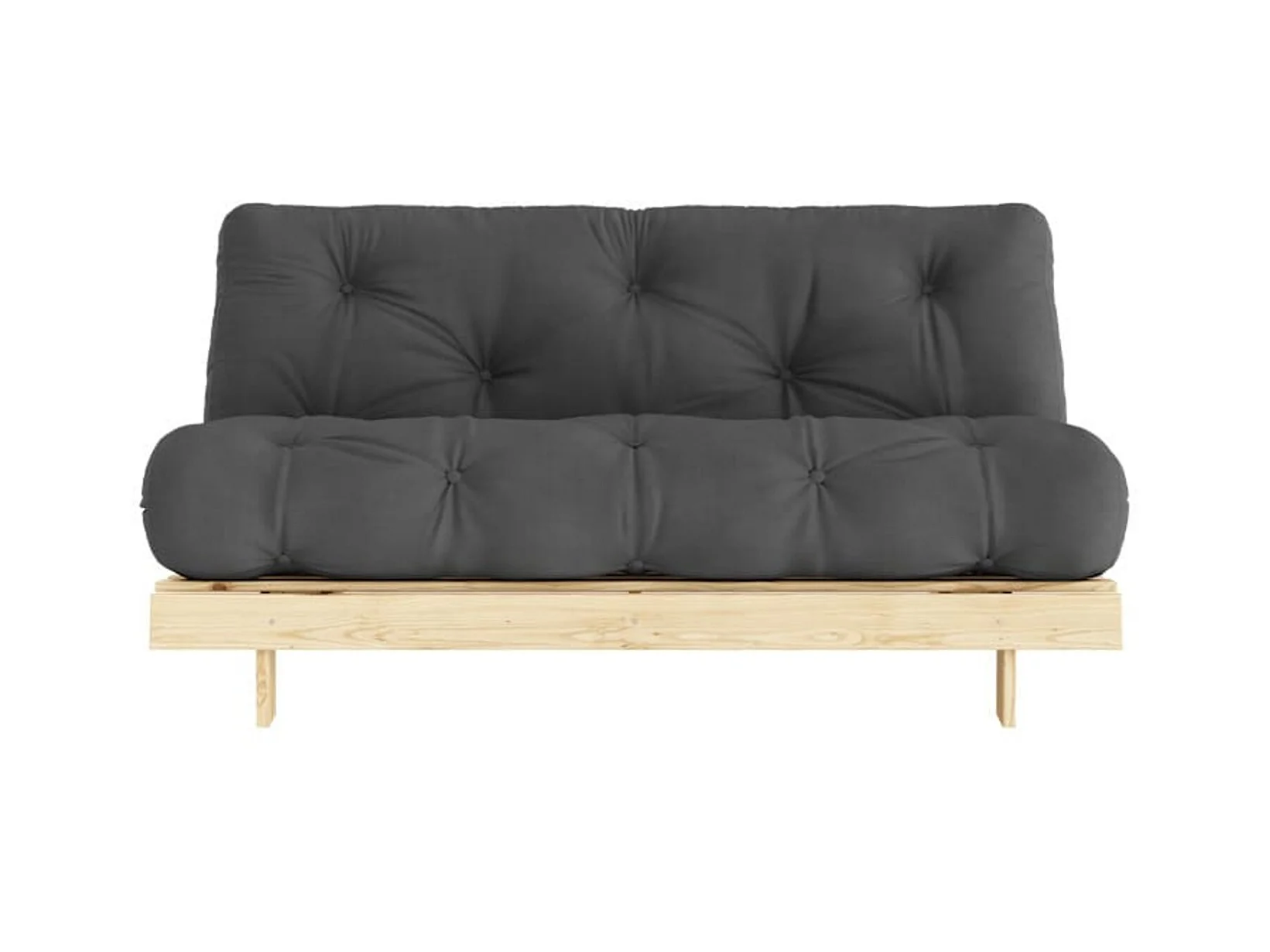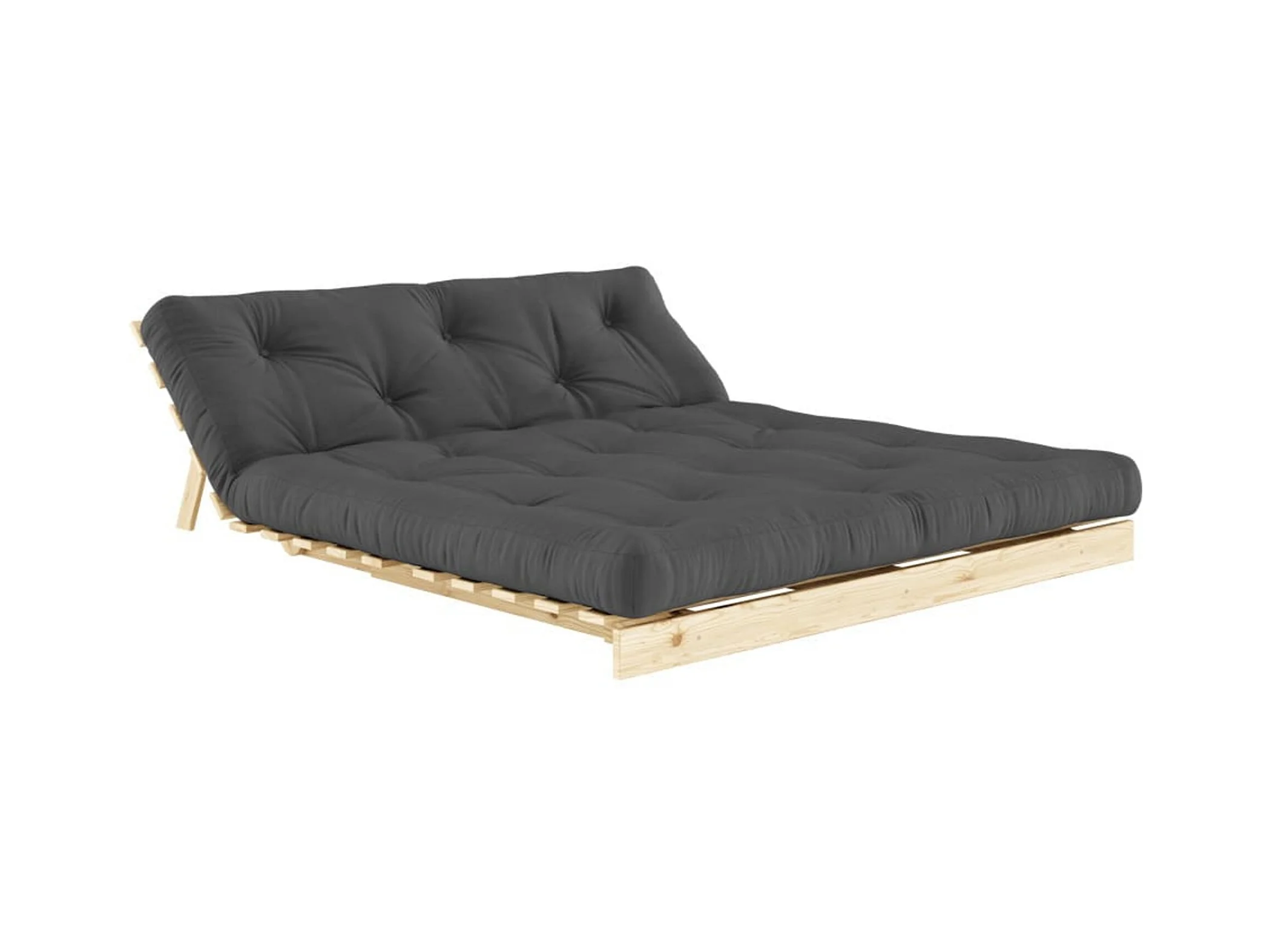 Canapé convertible ROOTS en pin massif naturel avec matelas futon anthracite 160x200