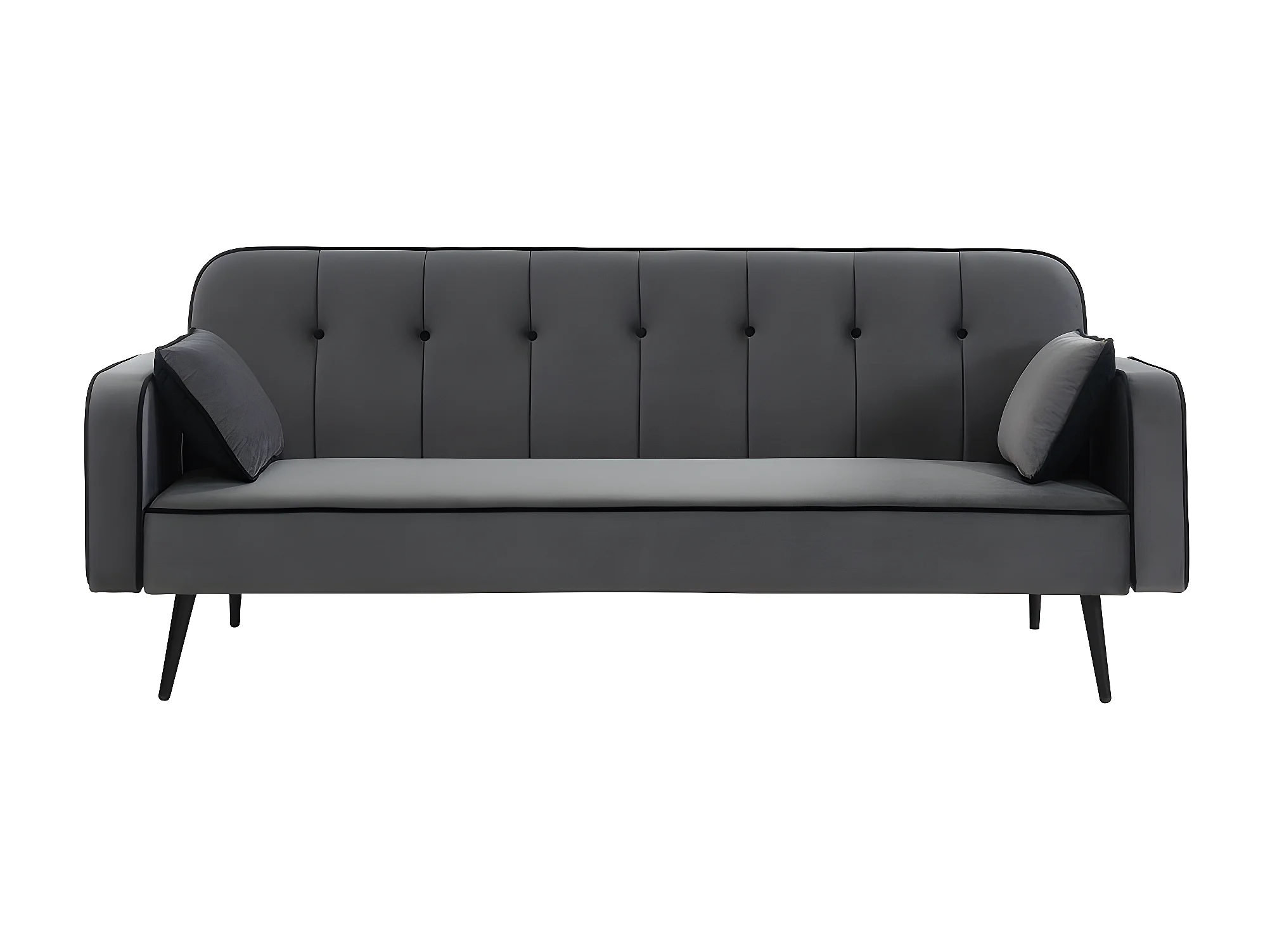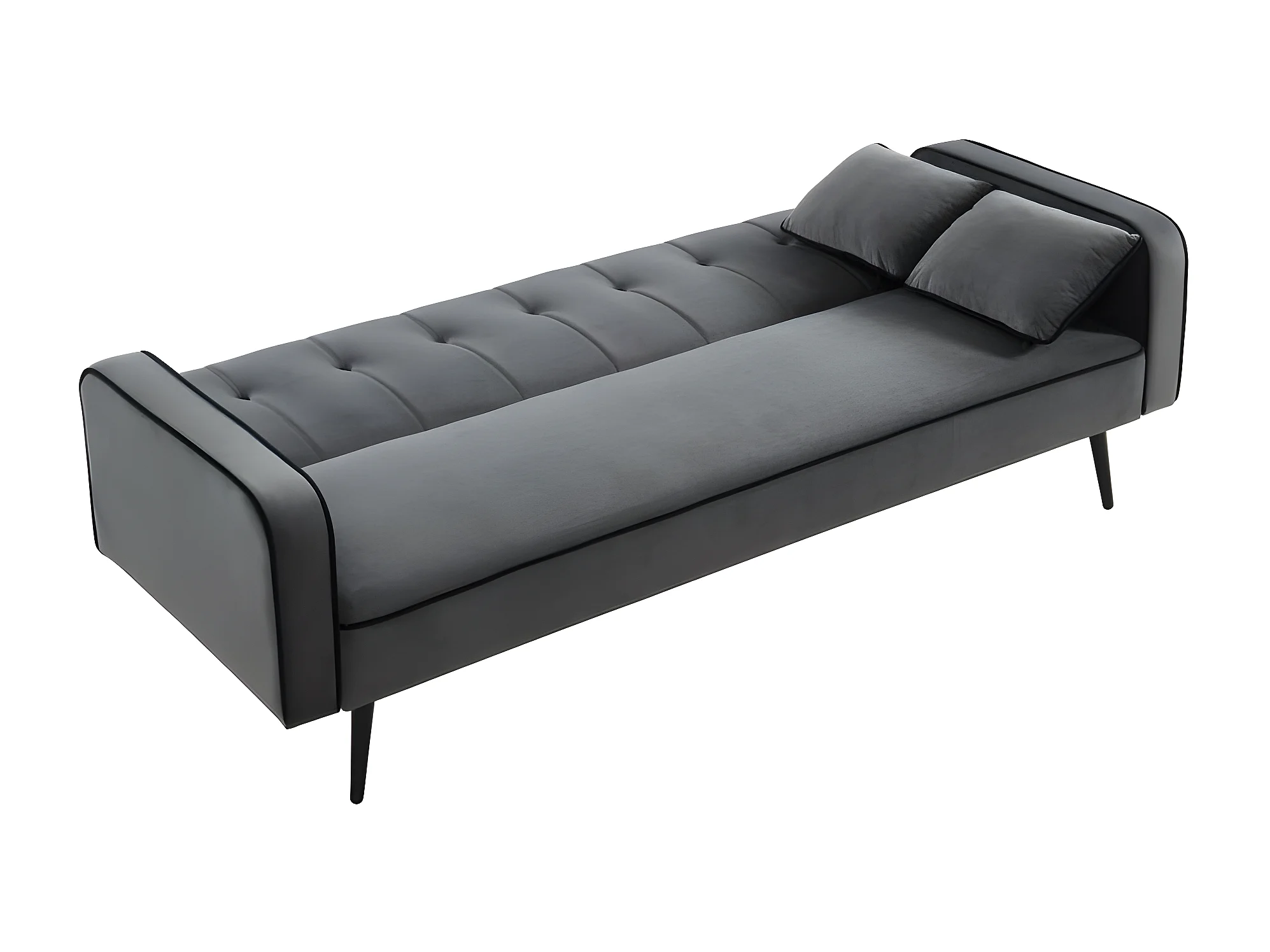 Canapé droit convertible SWEETY en velours gris 3 places pieds métal noir et 2 coussins