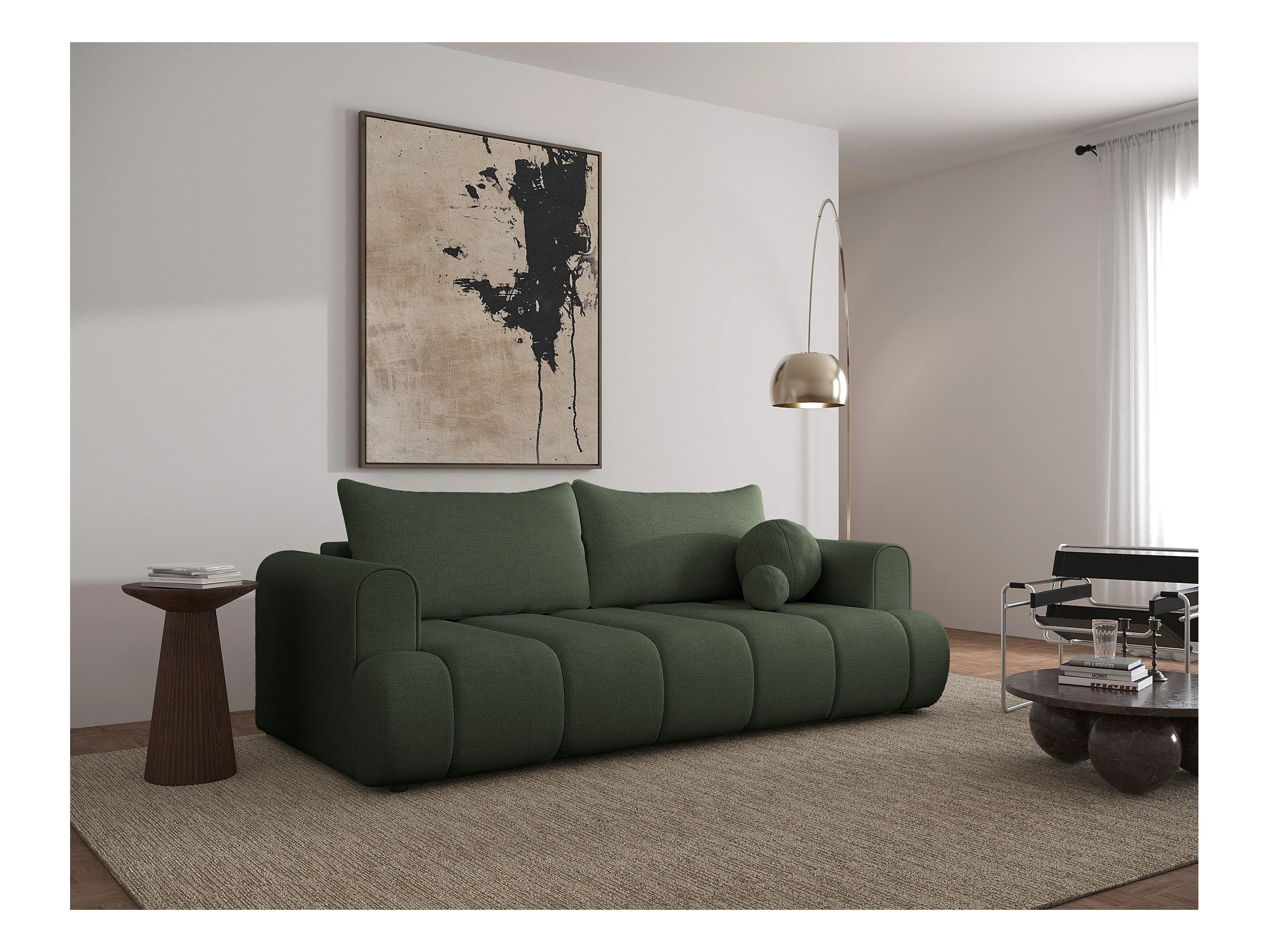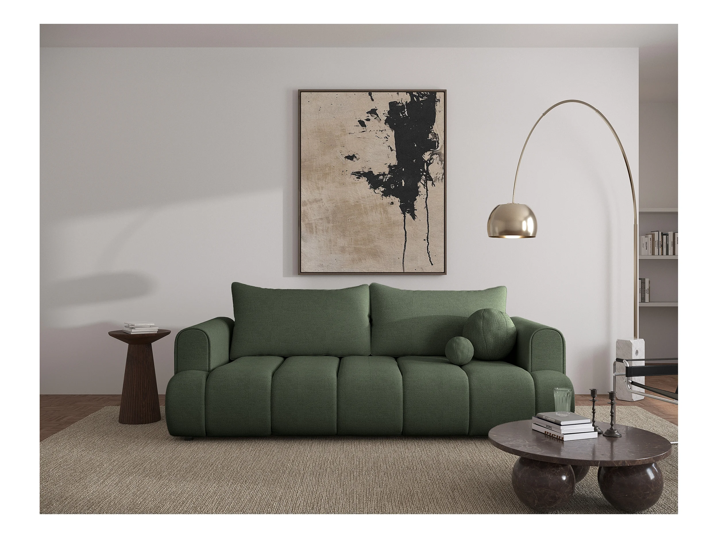 Canapé convertible trois places - tissu chenille vert - DANDELINO