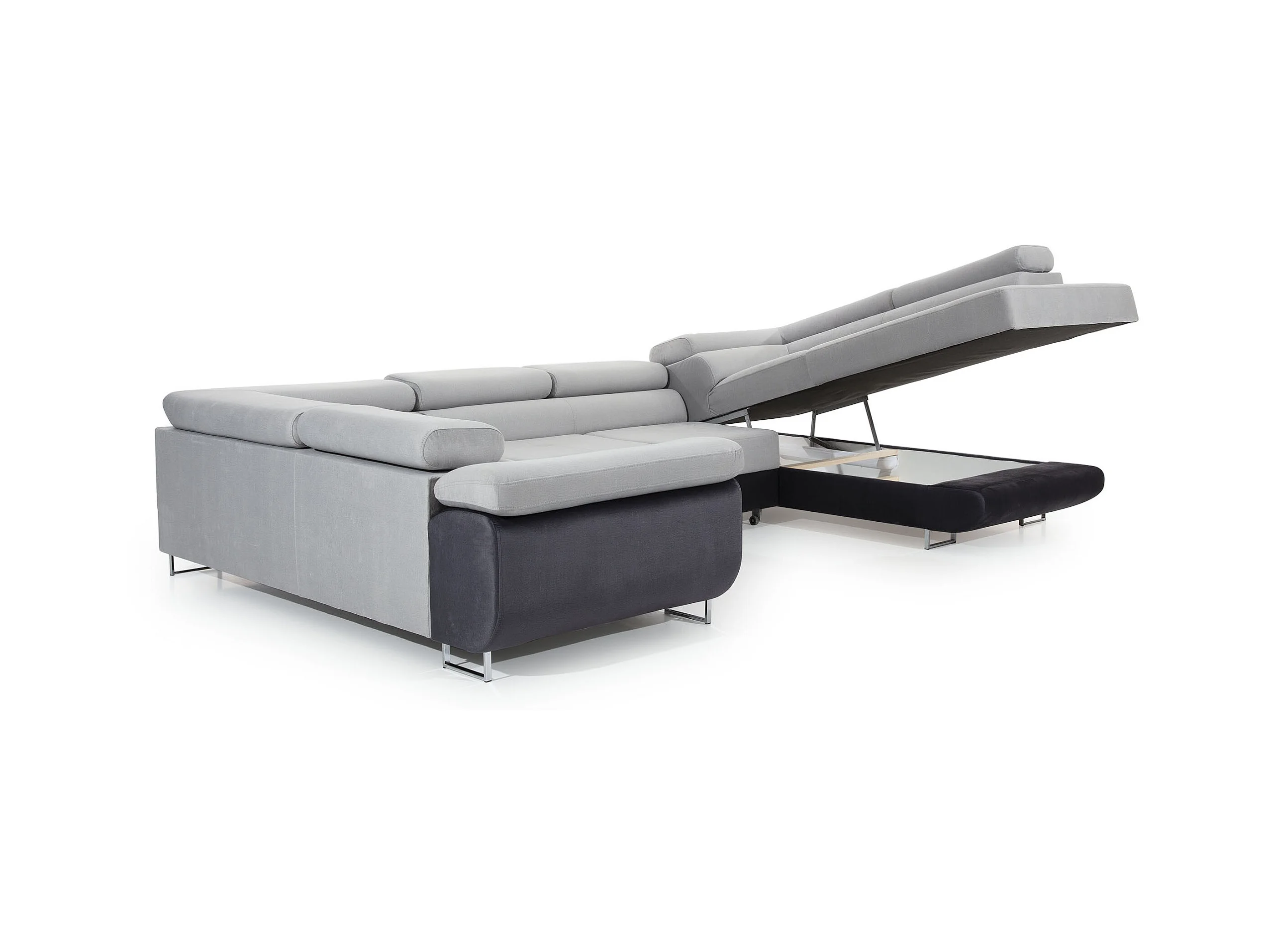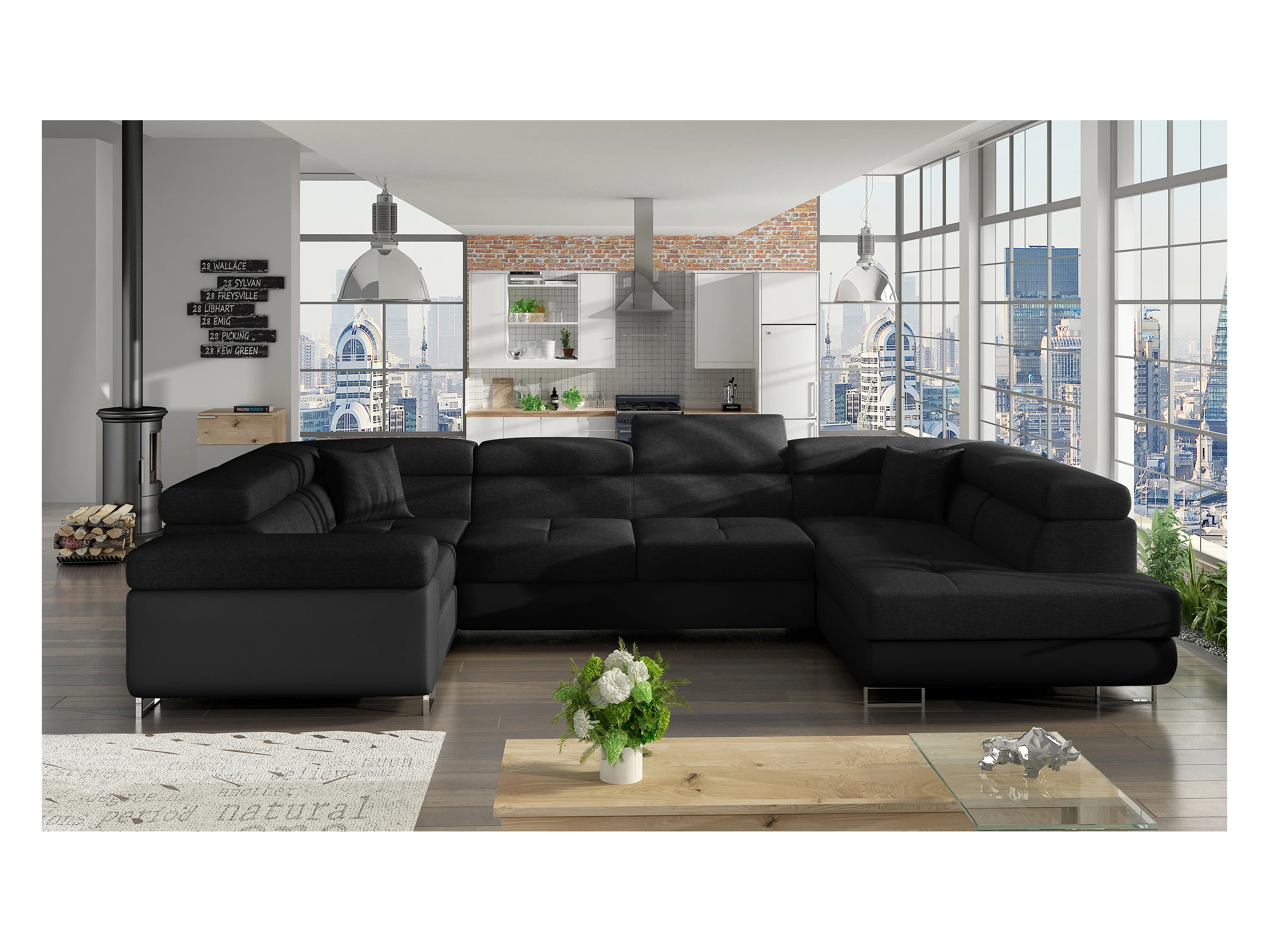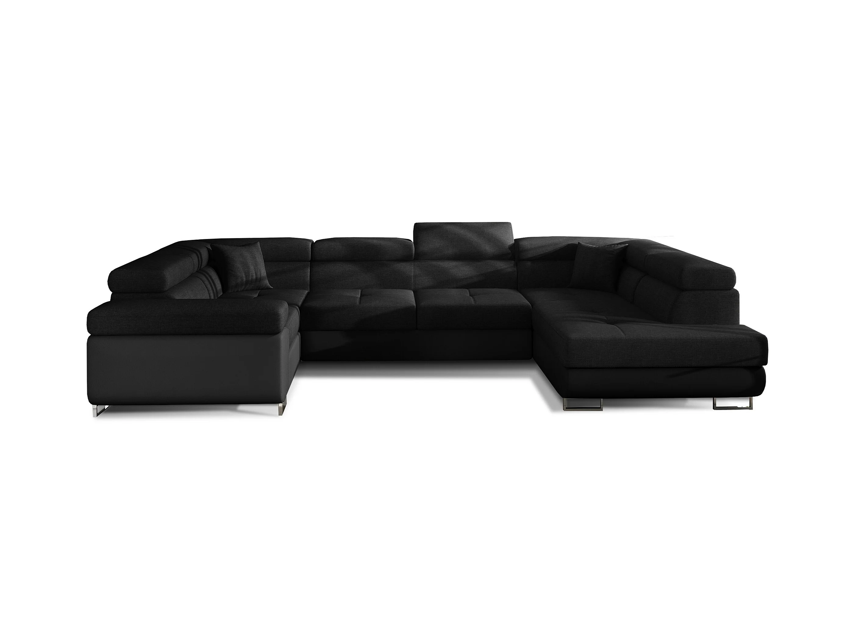Canapé convertible U droit tissu et simili noir avec coffre de rangement Tovy 340cm