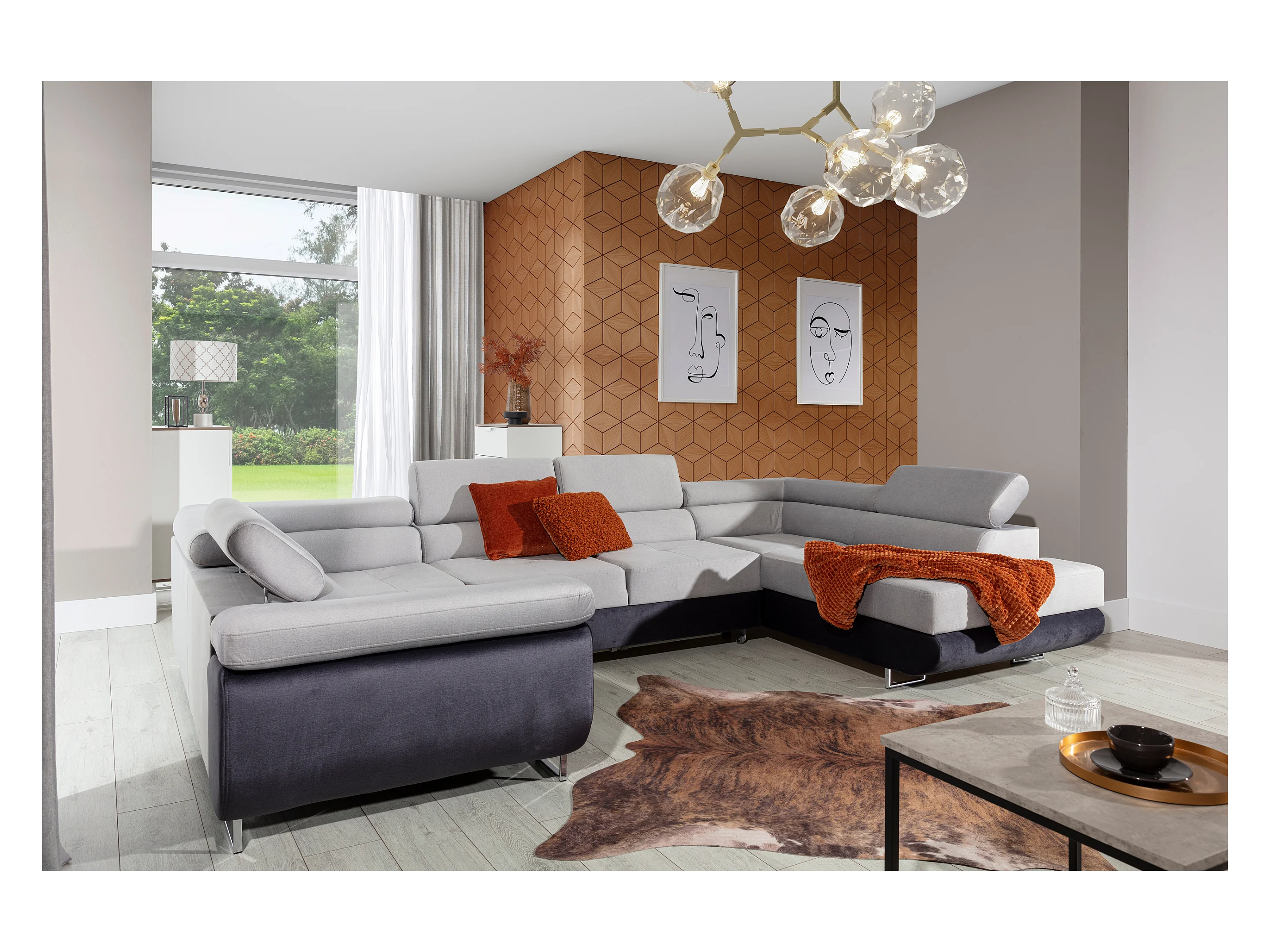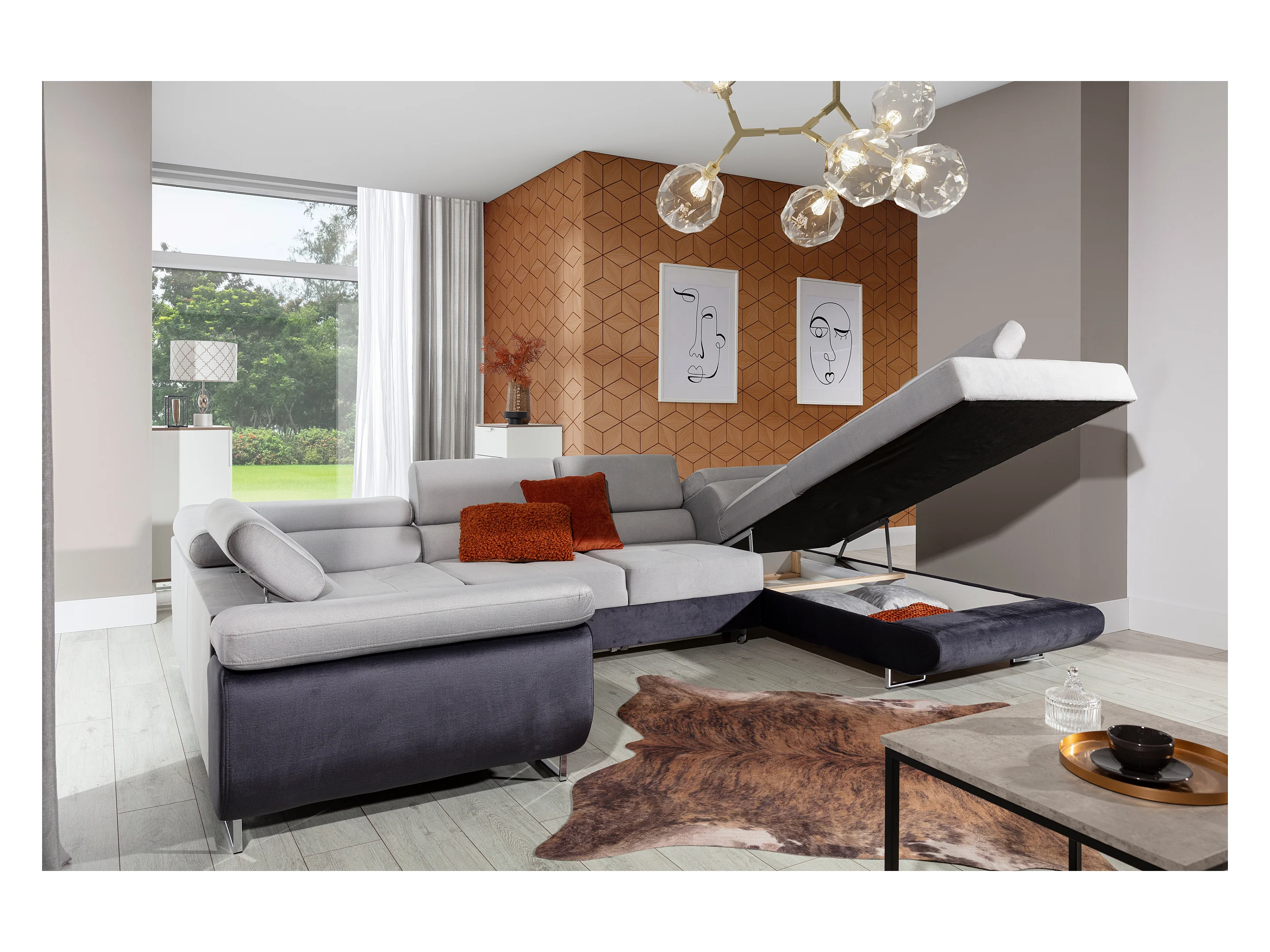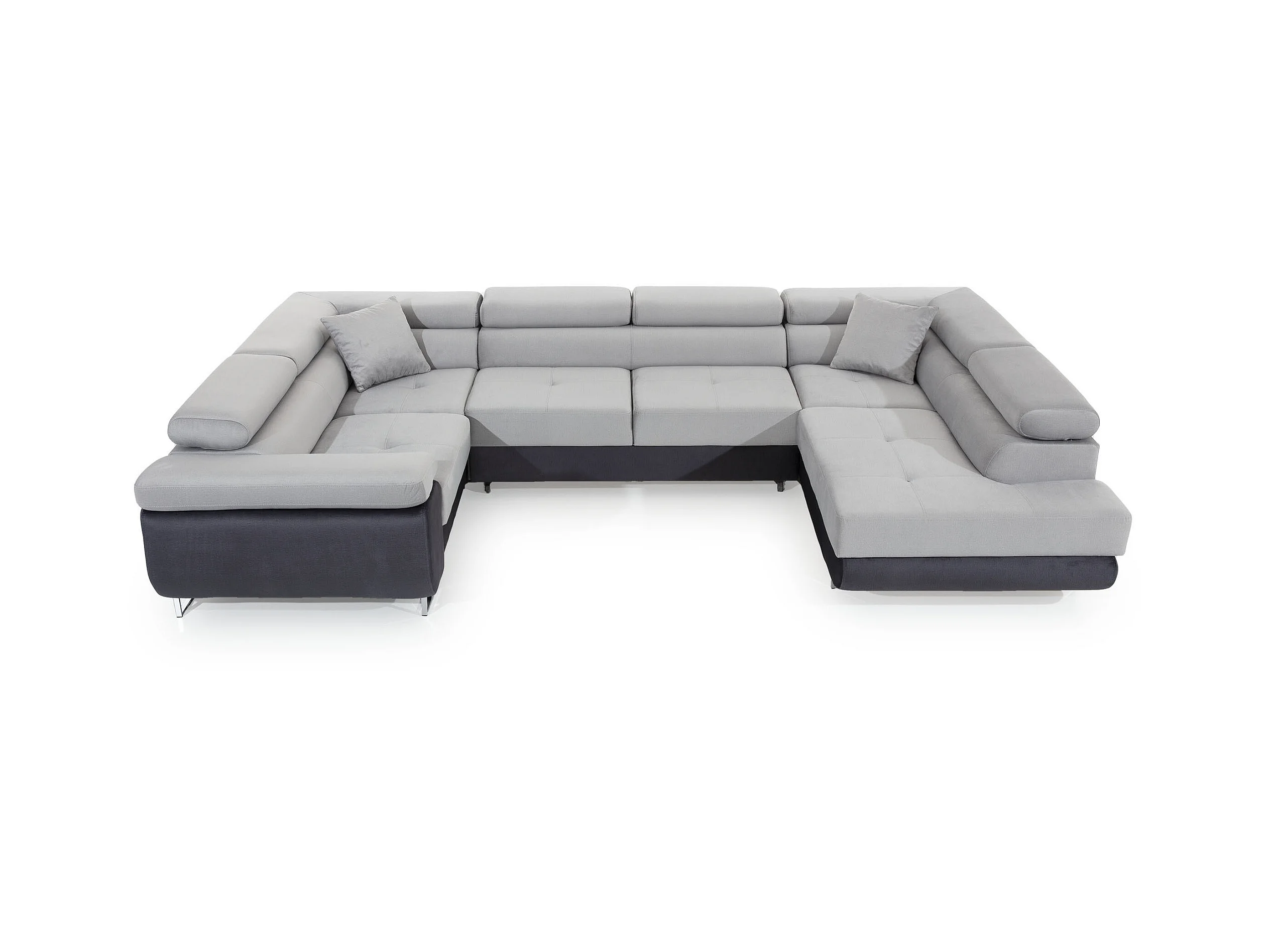 Canapé convertible U droit tissu et simili noir avec coffre de rangement Tovy 340cm
