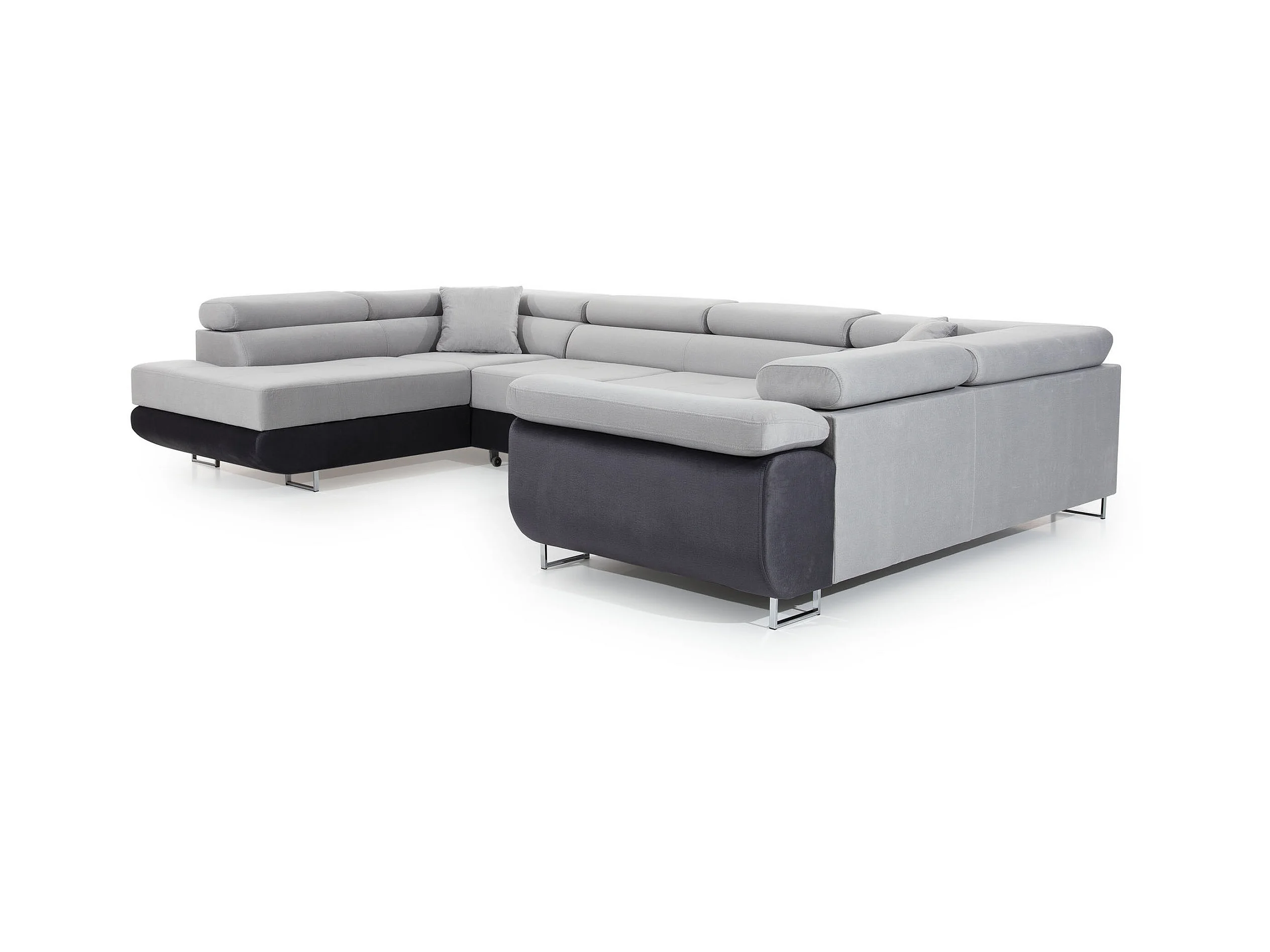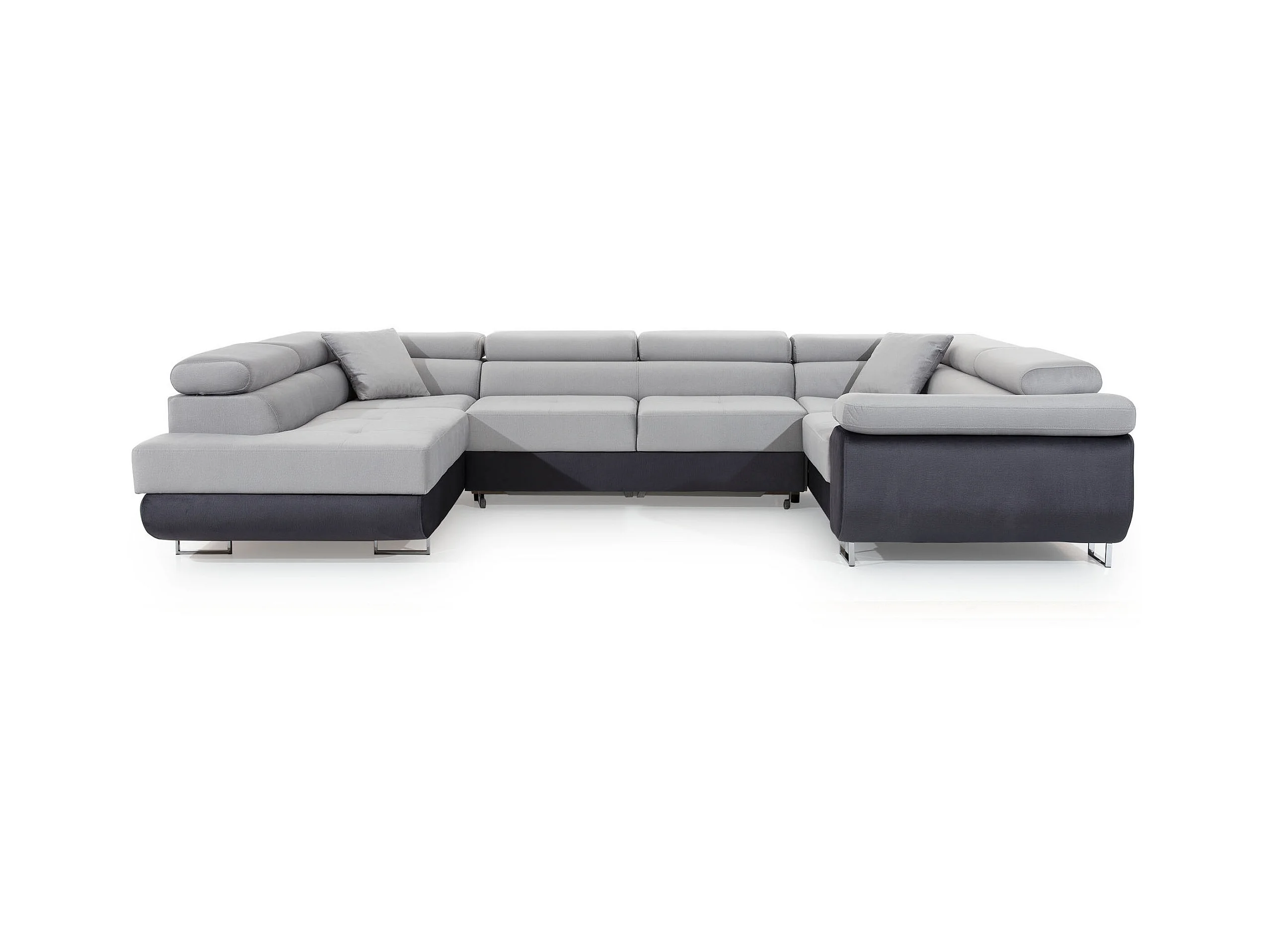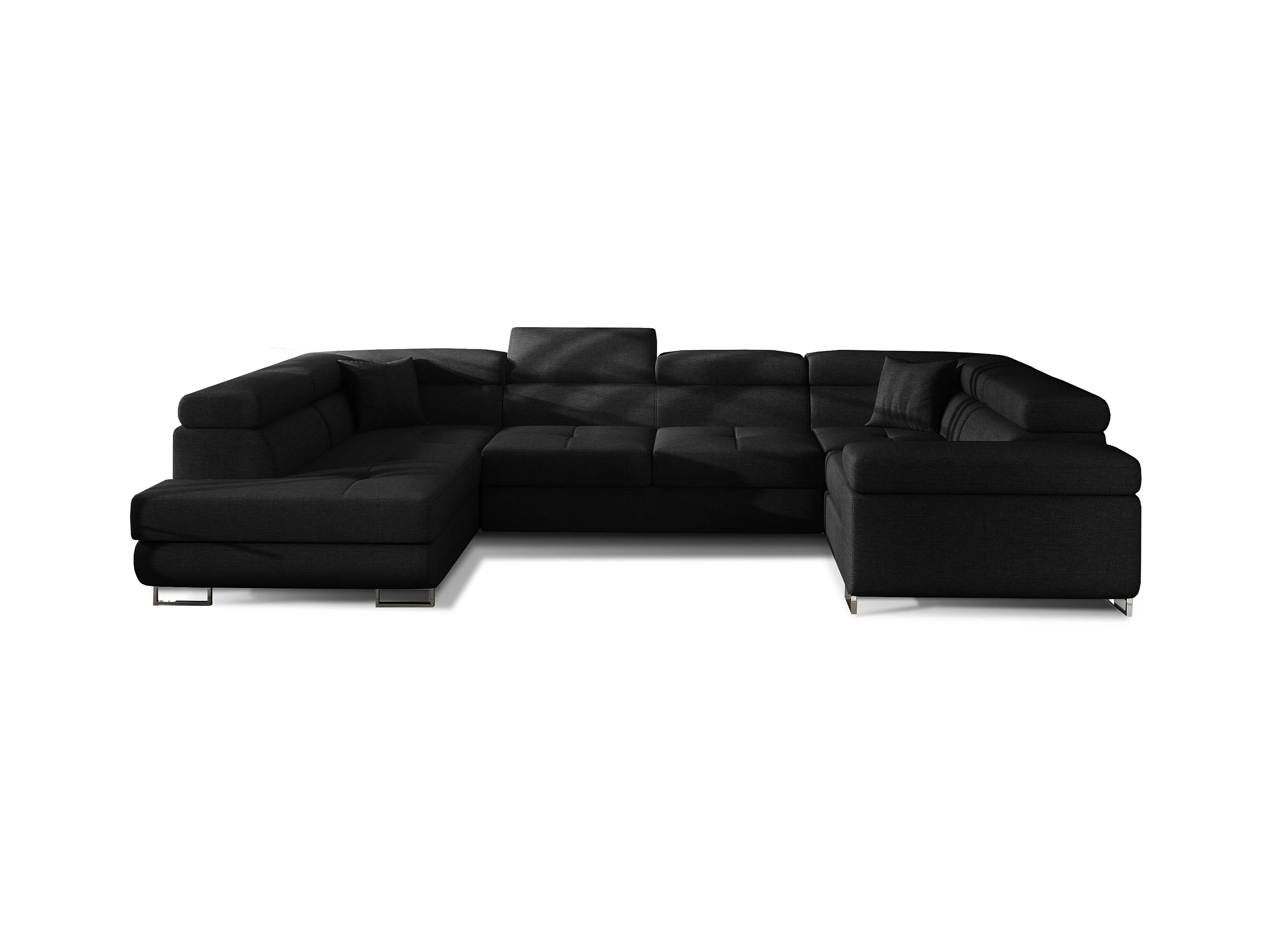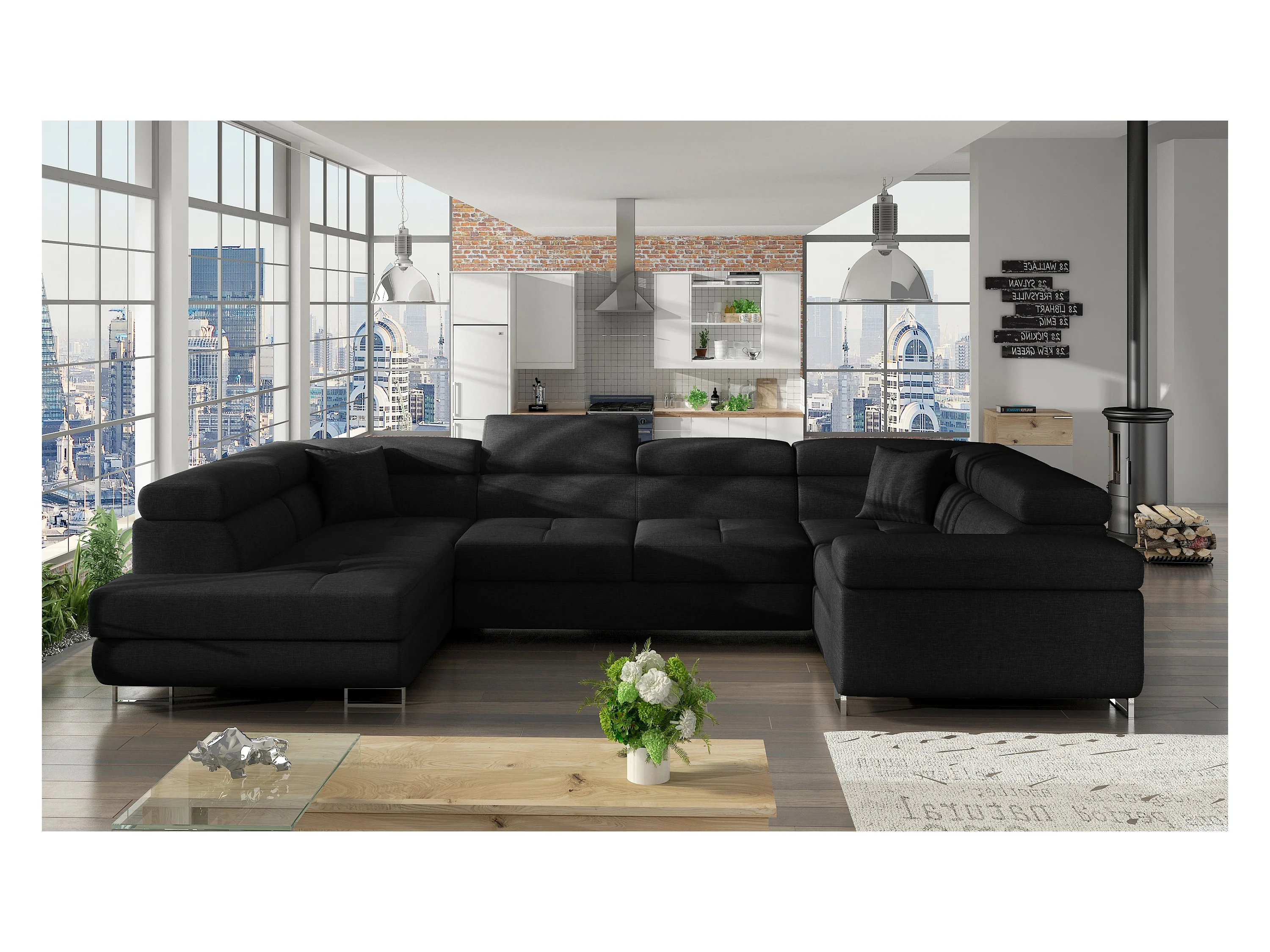 Canapé convertible U gauche tissu noir avec coffre de rangement Tovy 340cm