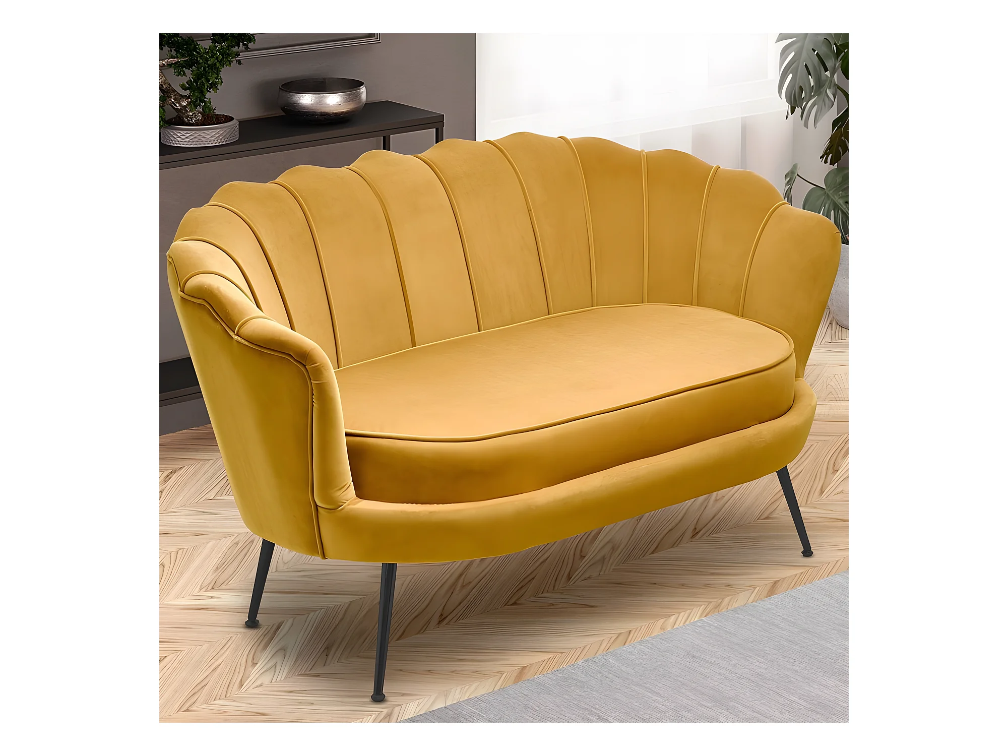 Canapé coquillage en velours jaune moutarde avec pieds noirs en métal CAPRICA 2 XL