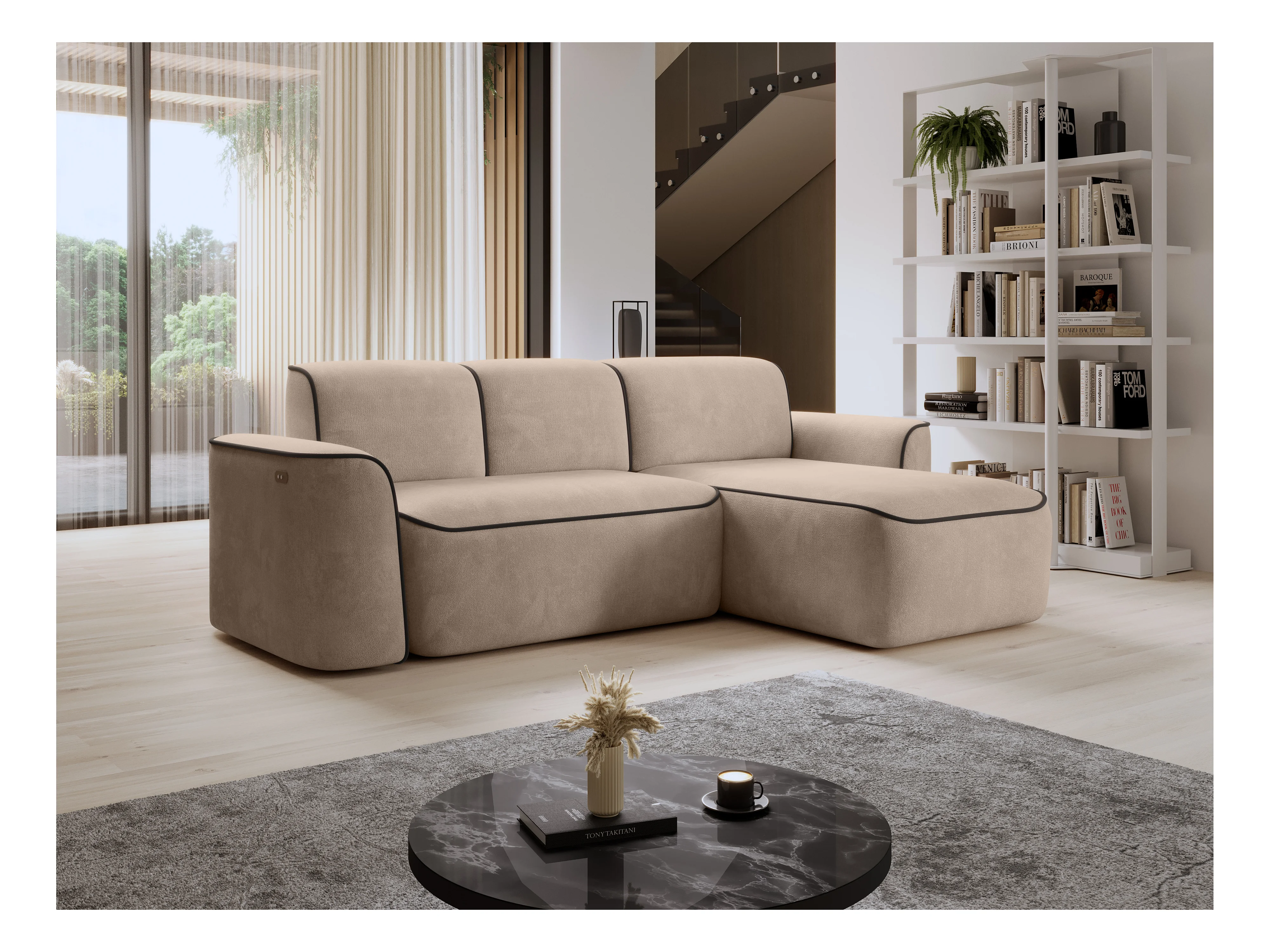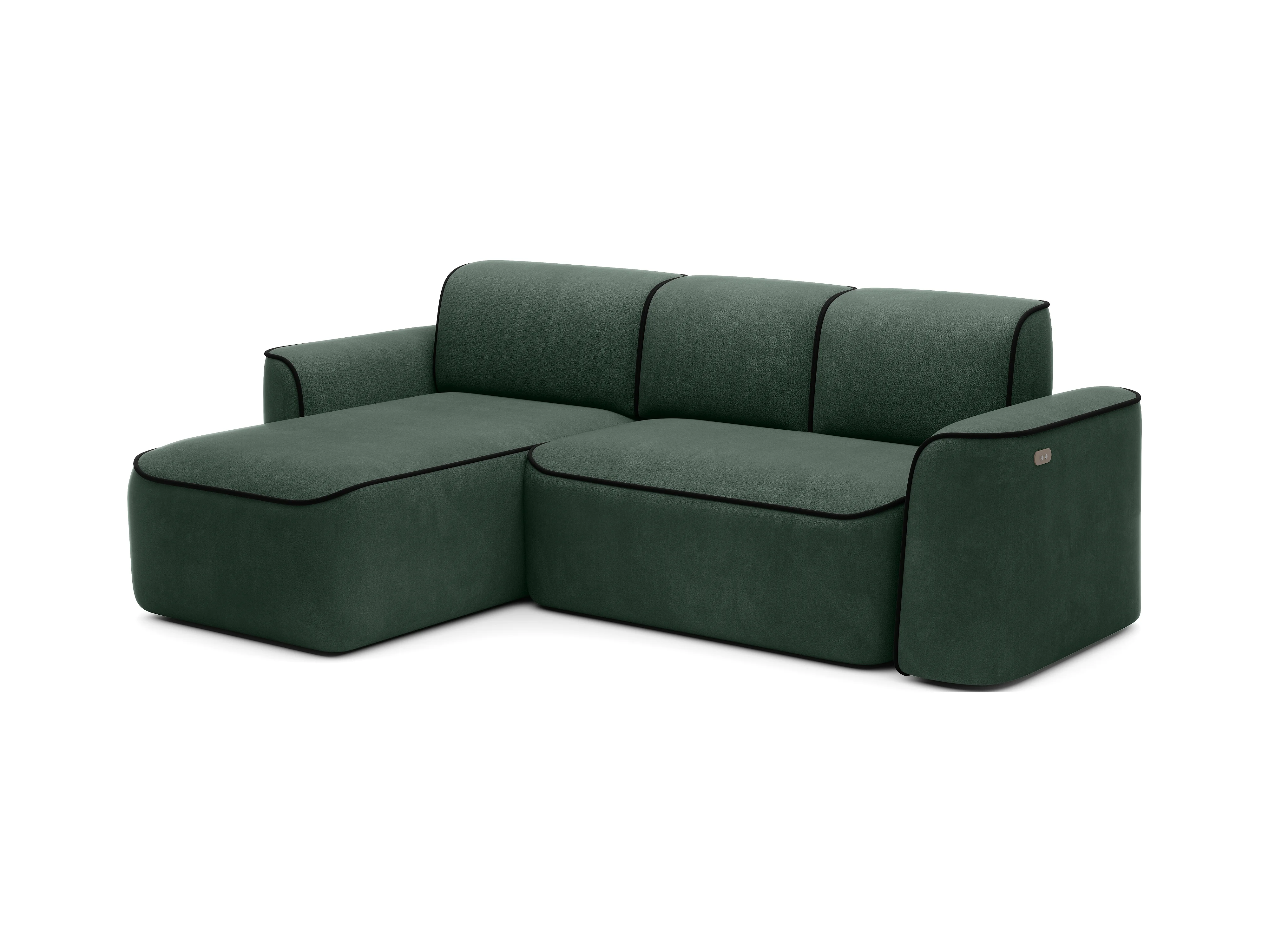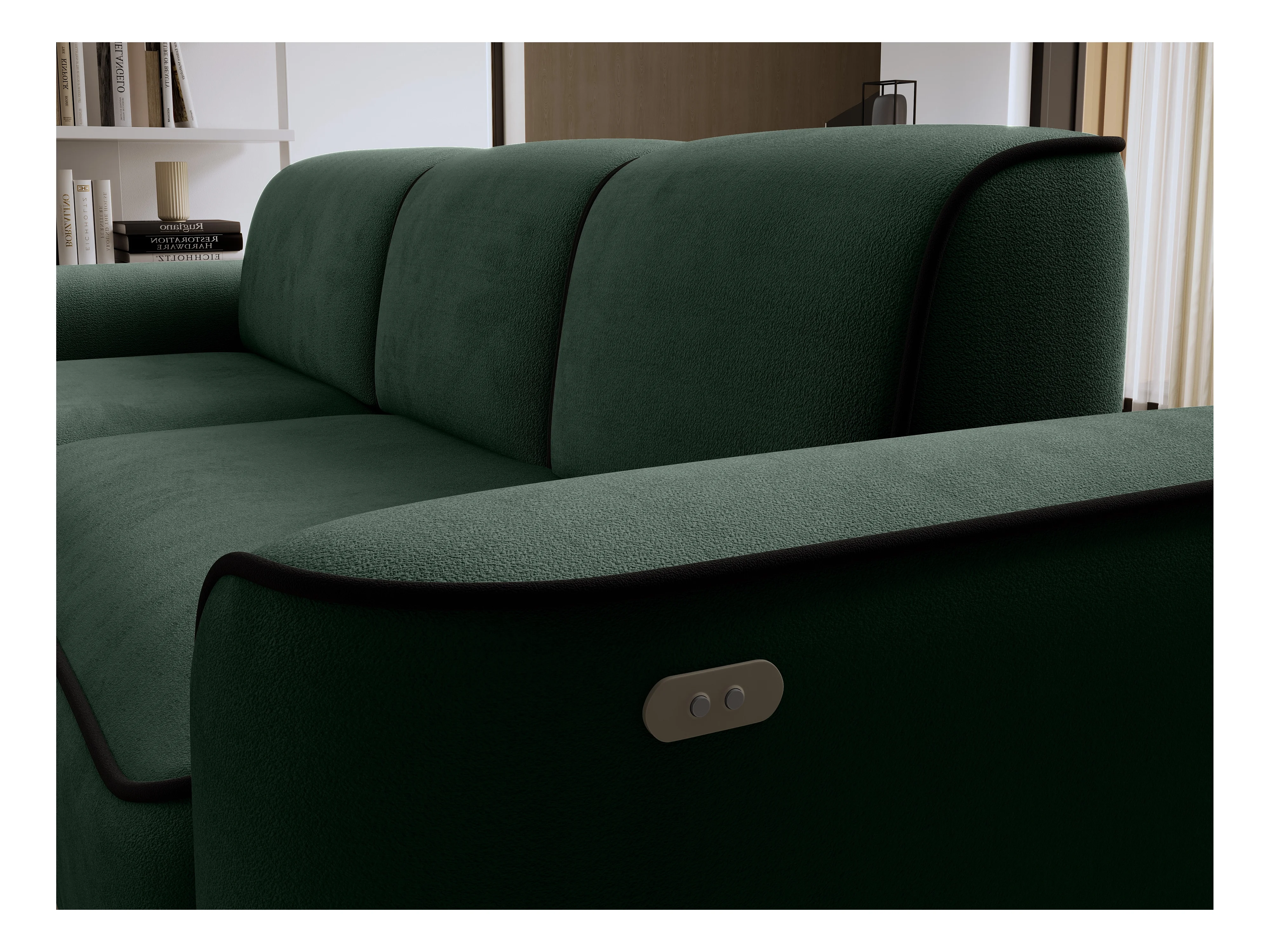 Canapé d'angle relax électrique en tissu DUMAS - Innovation bien-être-Vert foncé/Noir-angle gauche