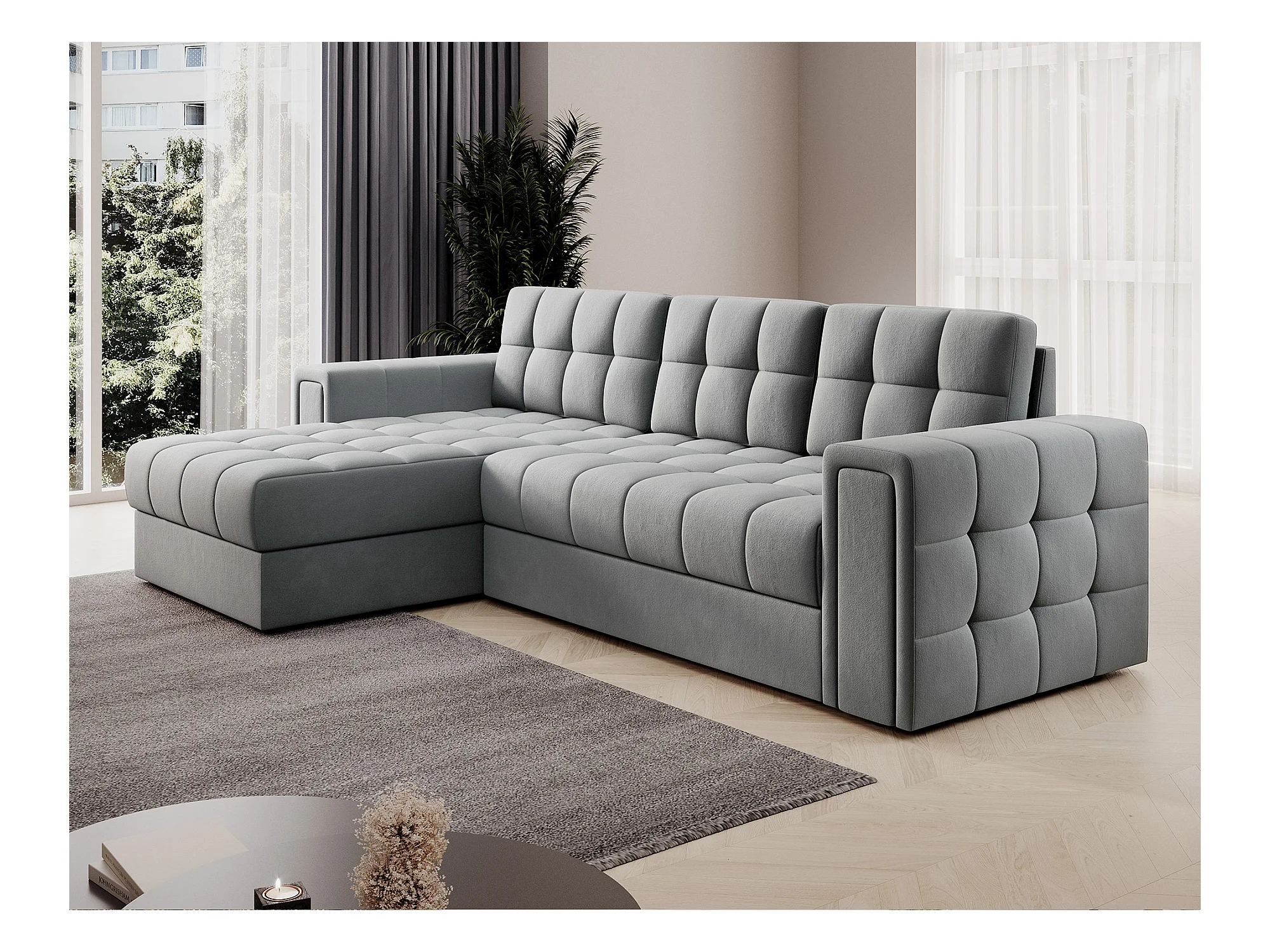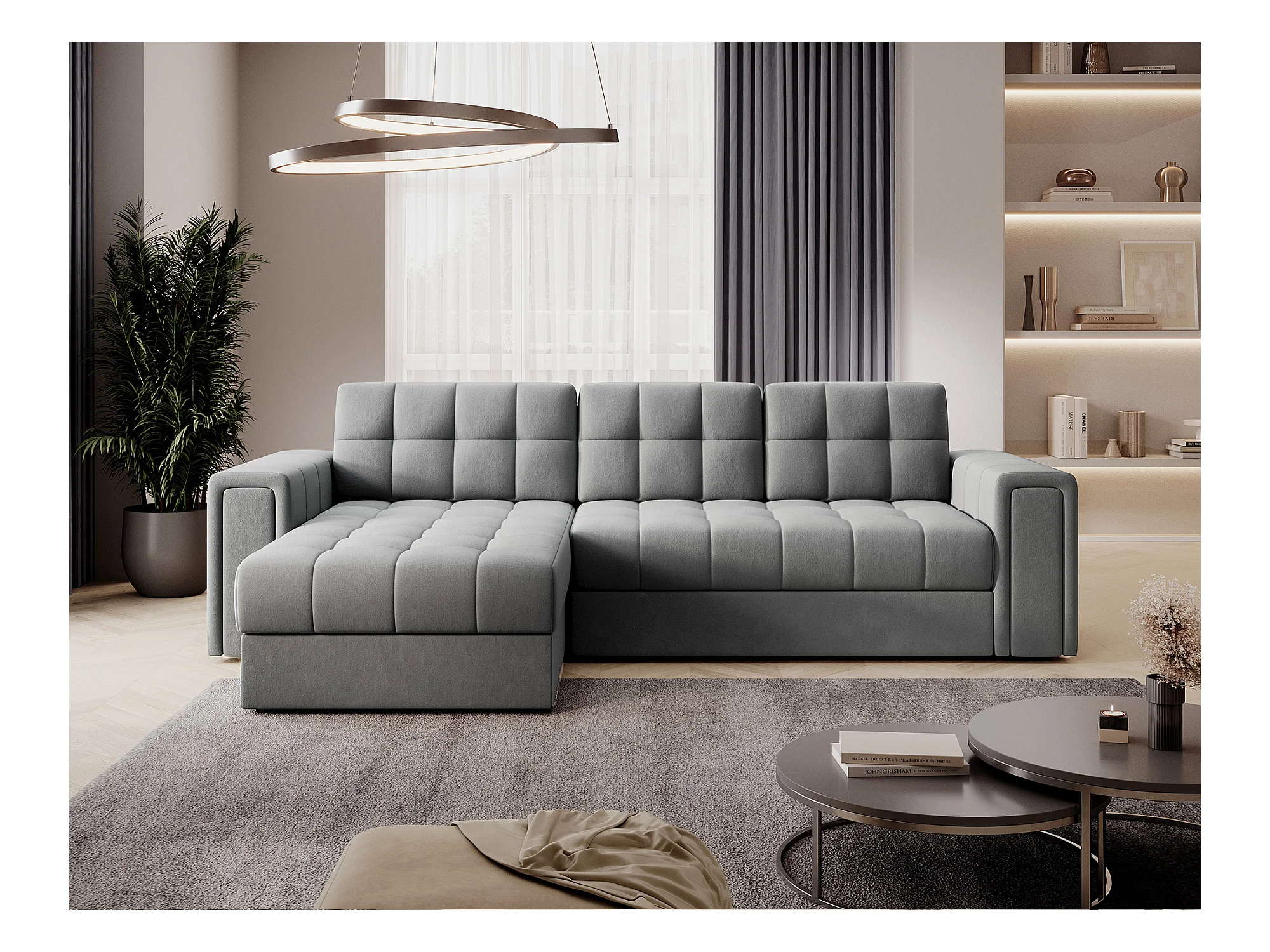 Canapé d’angle reversible et convertible Klumann – Élégance et praticité réunies-Couleur Gris clair