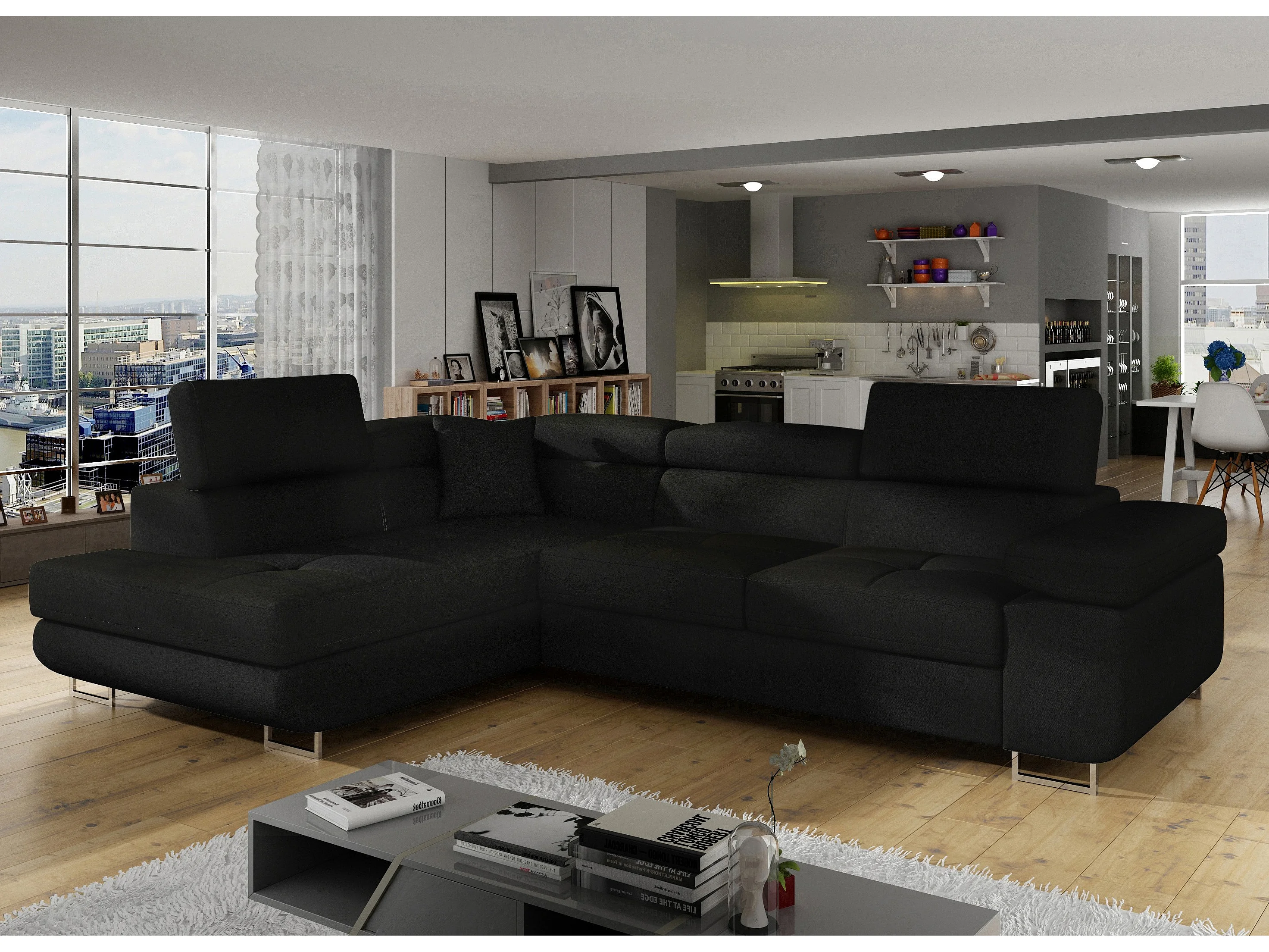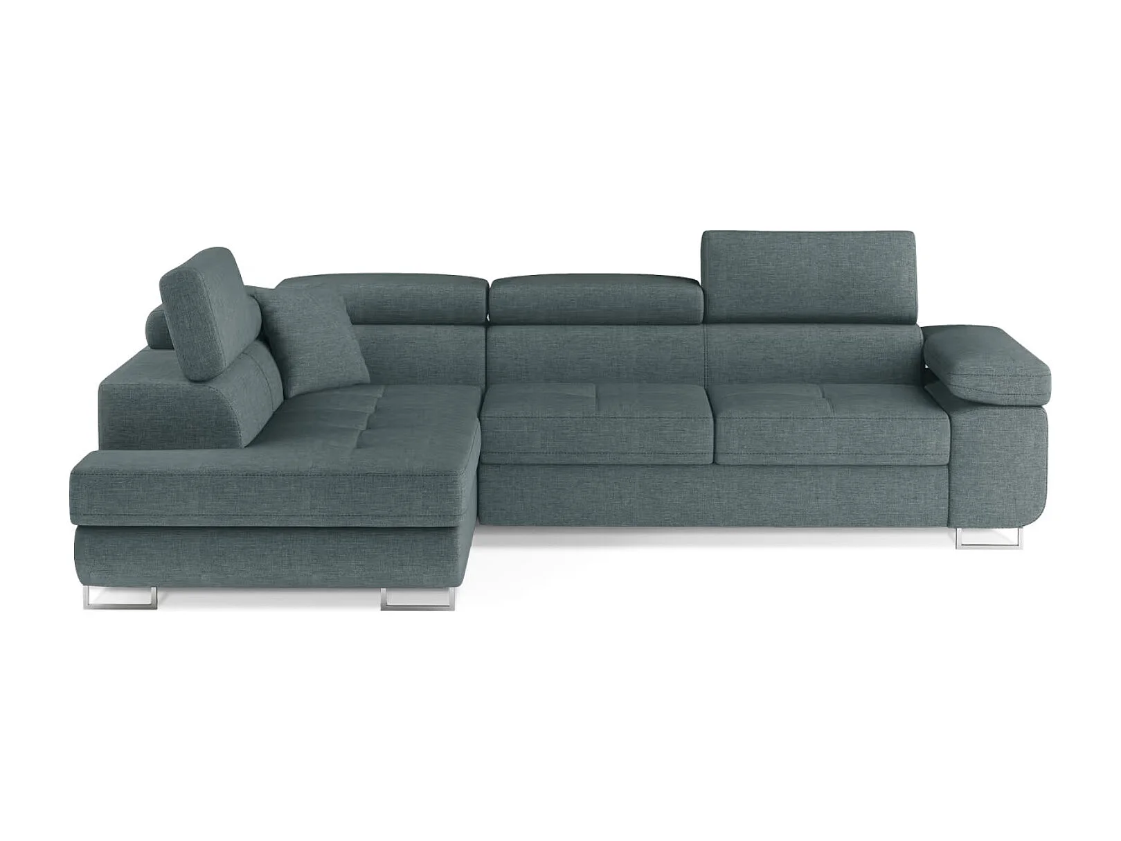 Canapé d'angle convertible tissu MARKA - Coffre et appuis-tête réglables-Vert céladon-angle gauche