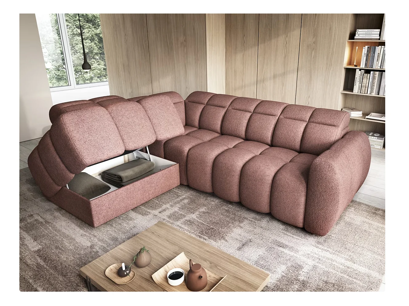 Canapé d’angle tissu Boboon – Convertible et coffre-Couleur Terracotta-angle gauche