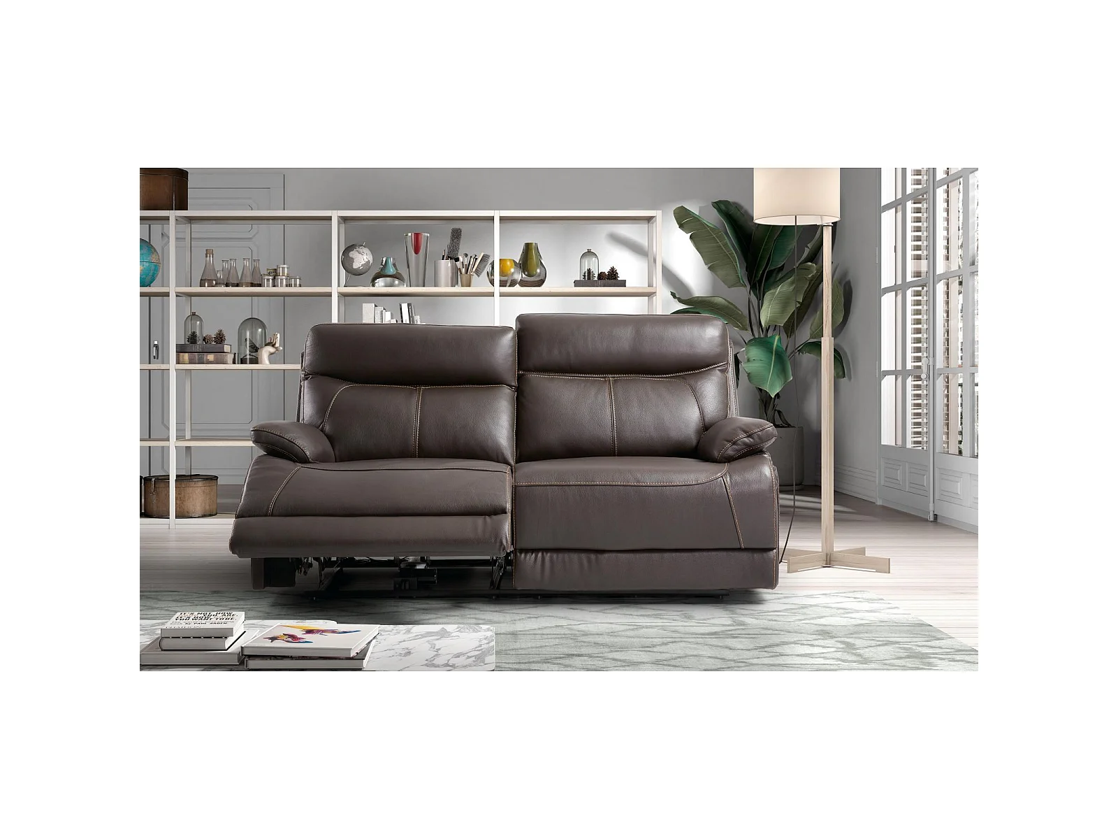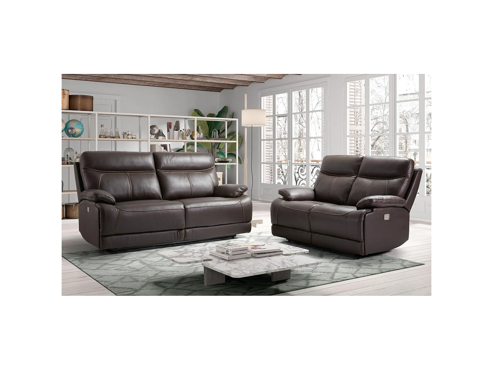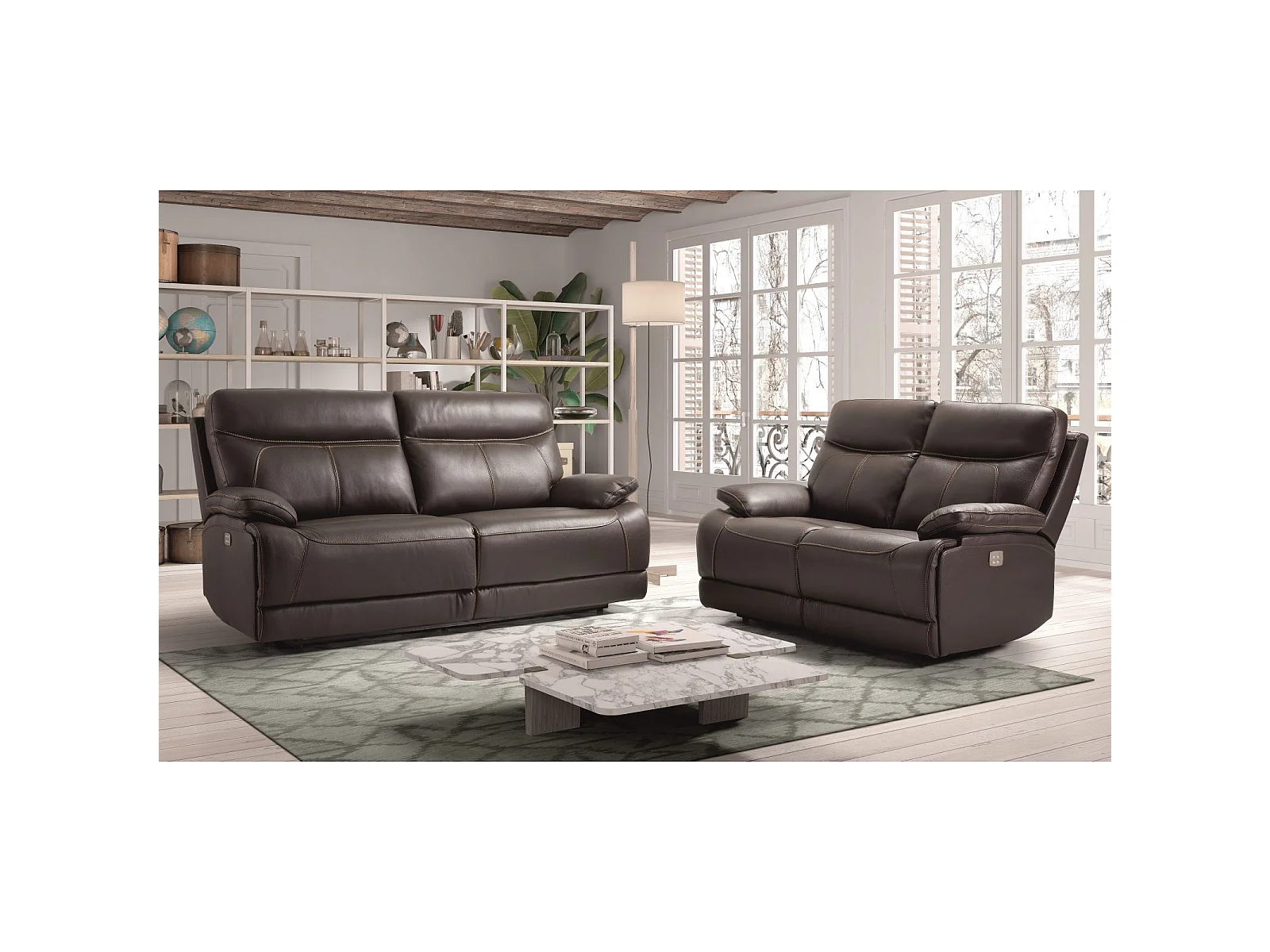 Canapé cuir 3 places, 2 relax électriques Bilbao Chocolat