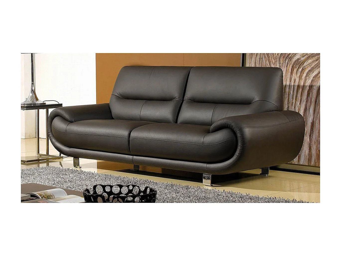 Canapé cuir 3 places ANGIE Marron - Angle Droit