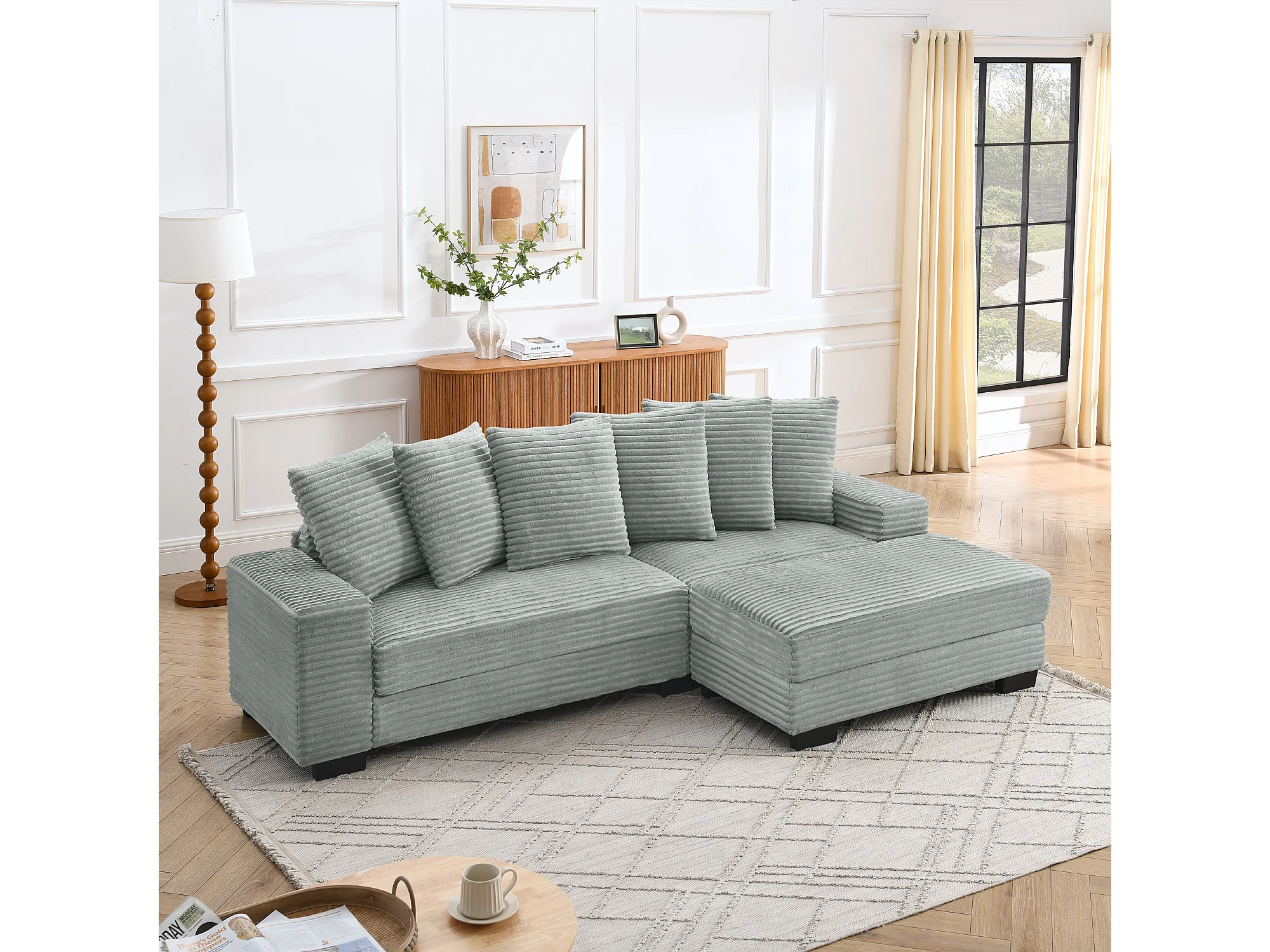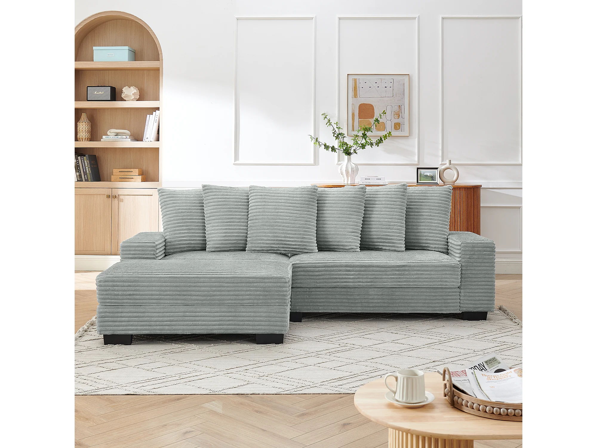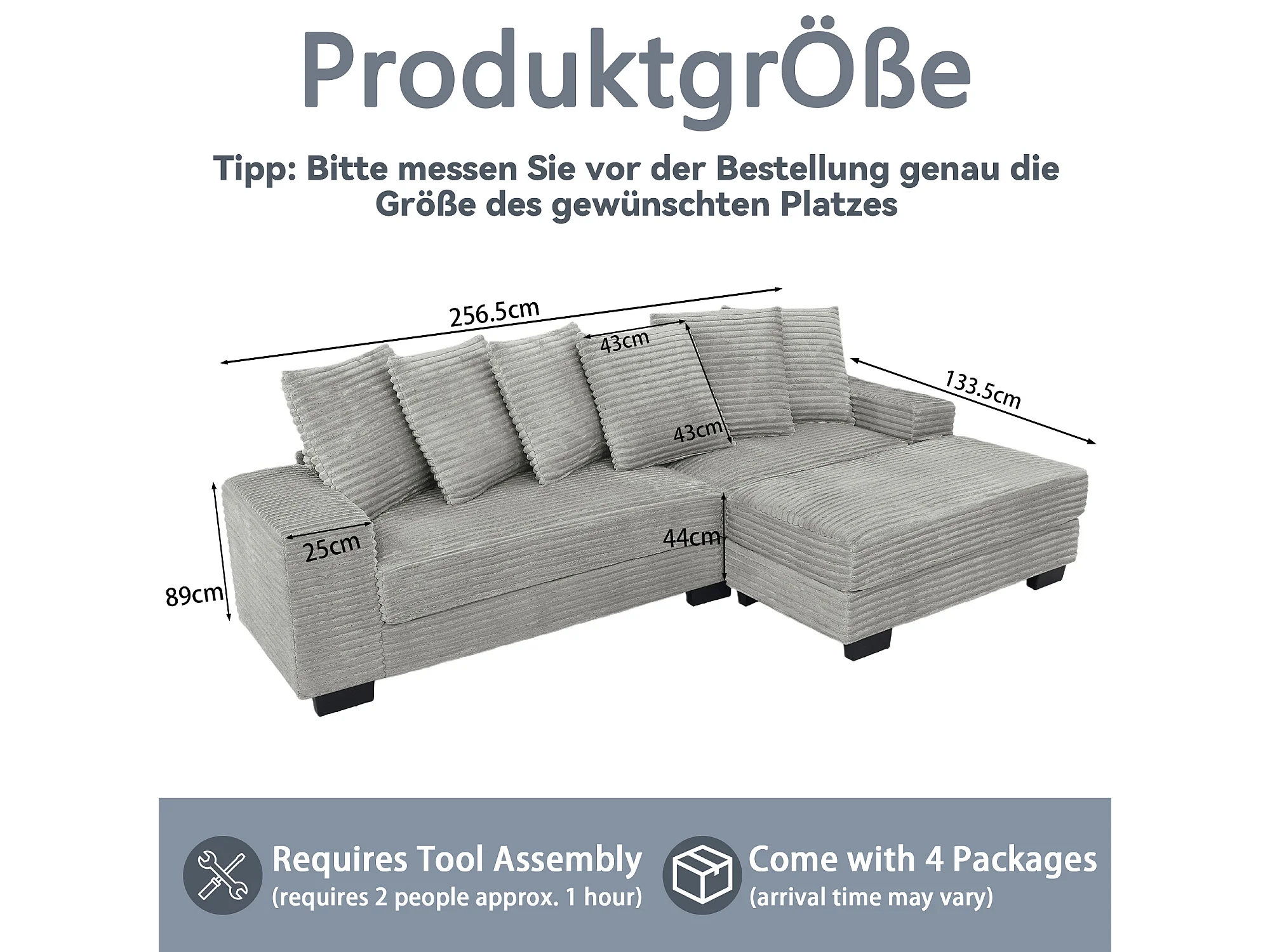 Canapé d angle 256.5x133.5x89cm mobilier contemporain gain de place fonction relax mousse dense tissu chenille pour salon gris