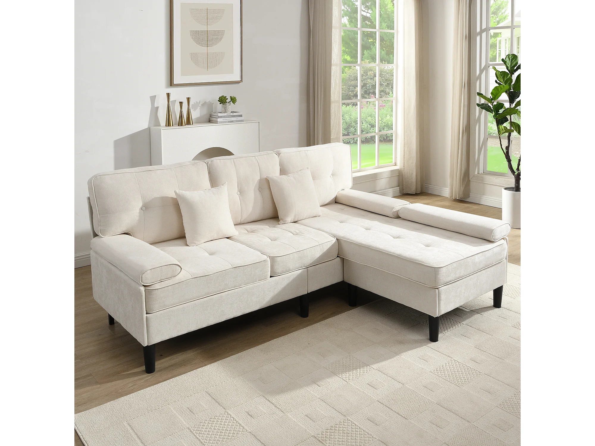 Canapé d'angle 3 places en forme de L - 195 x 149 x 86 cm - avec méridienne + repose-pieds amovible - velours - beige