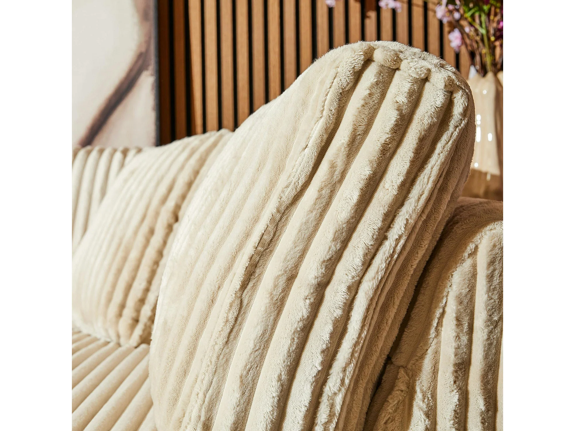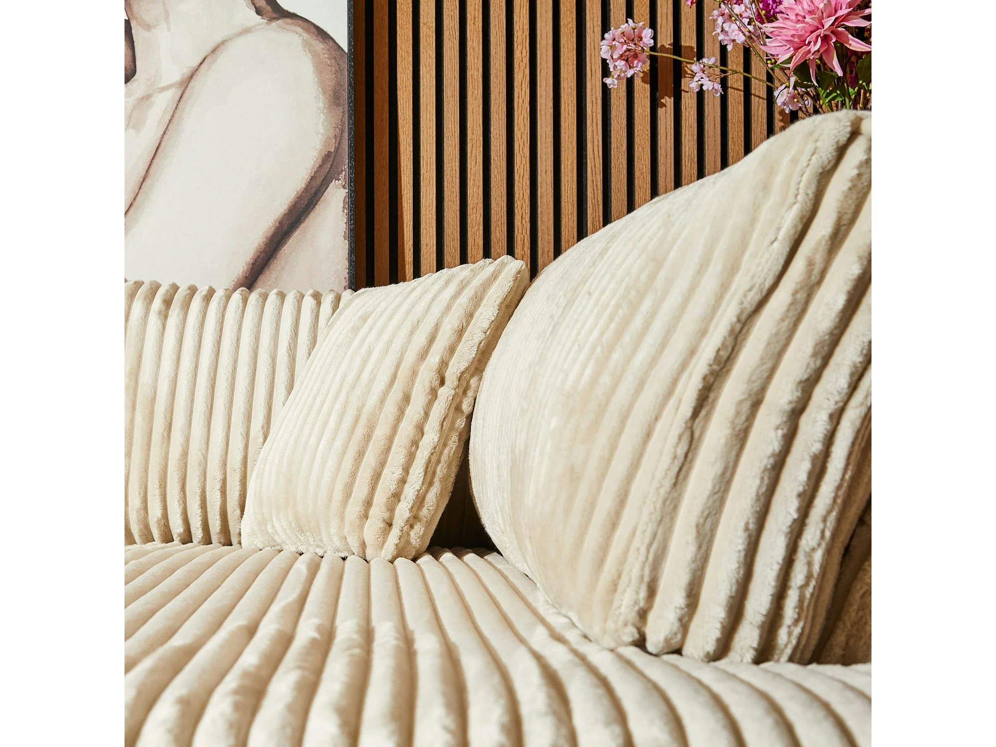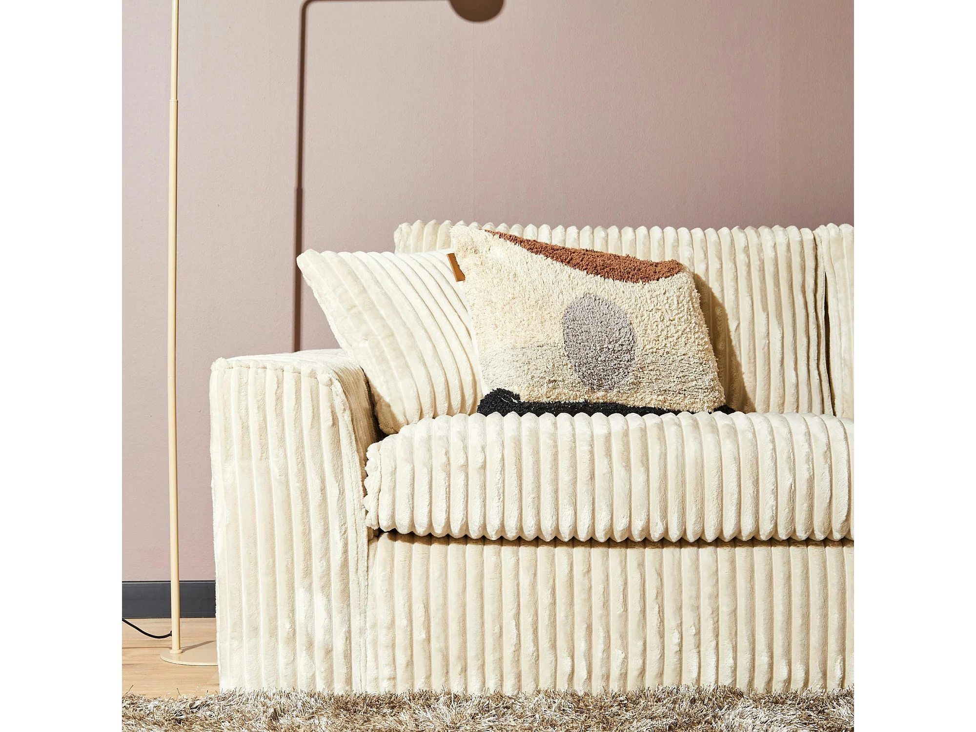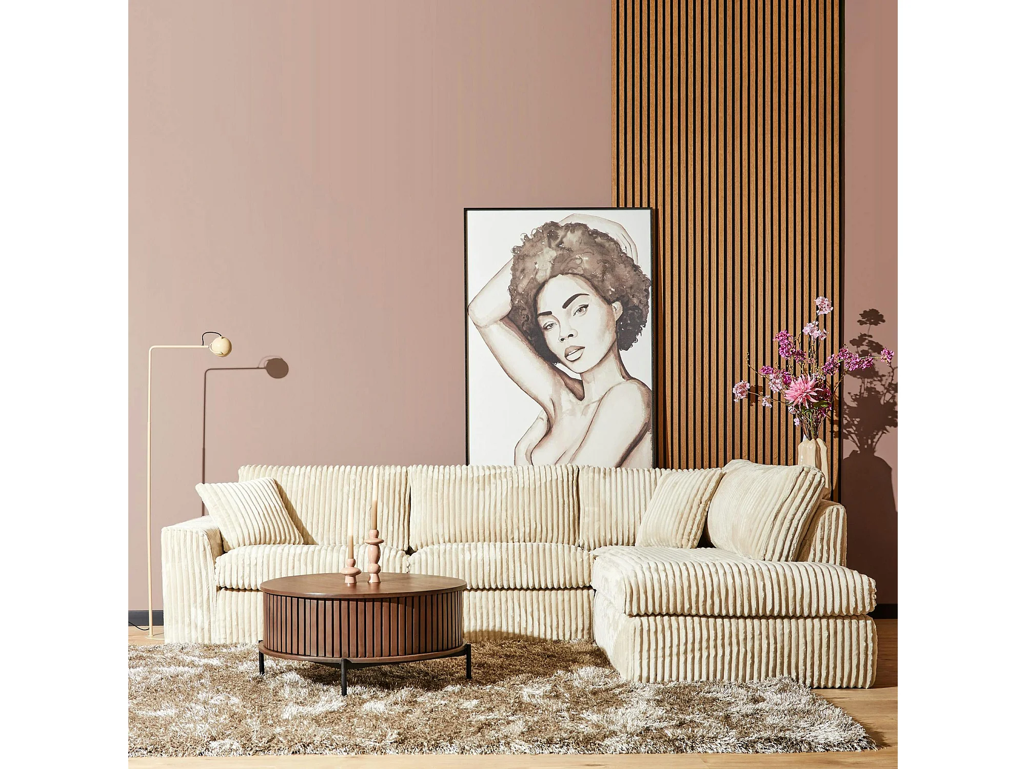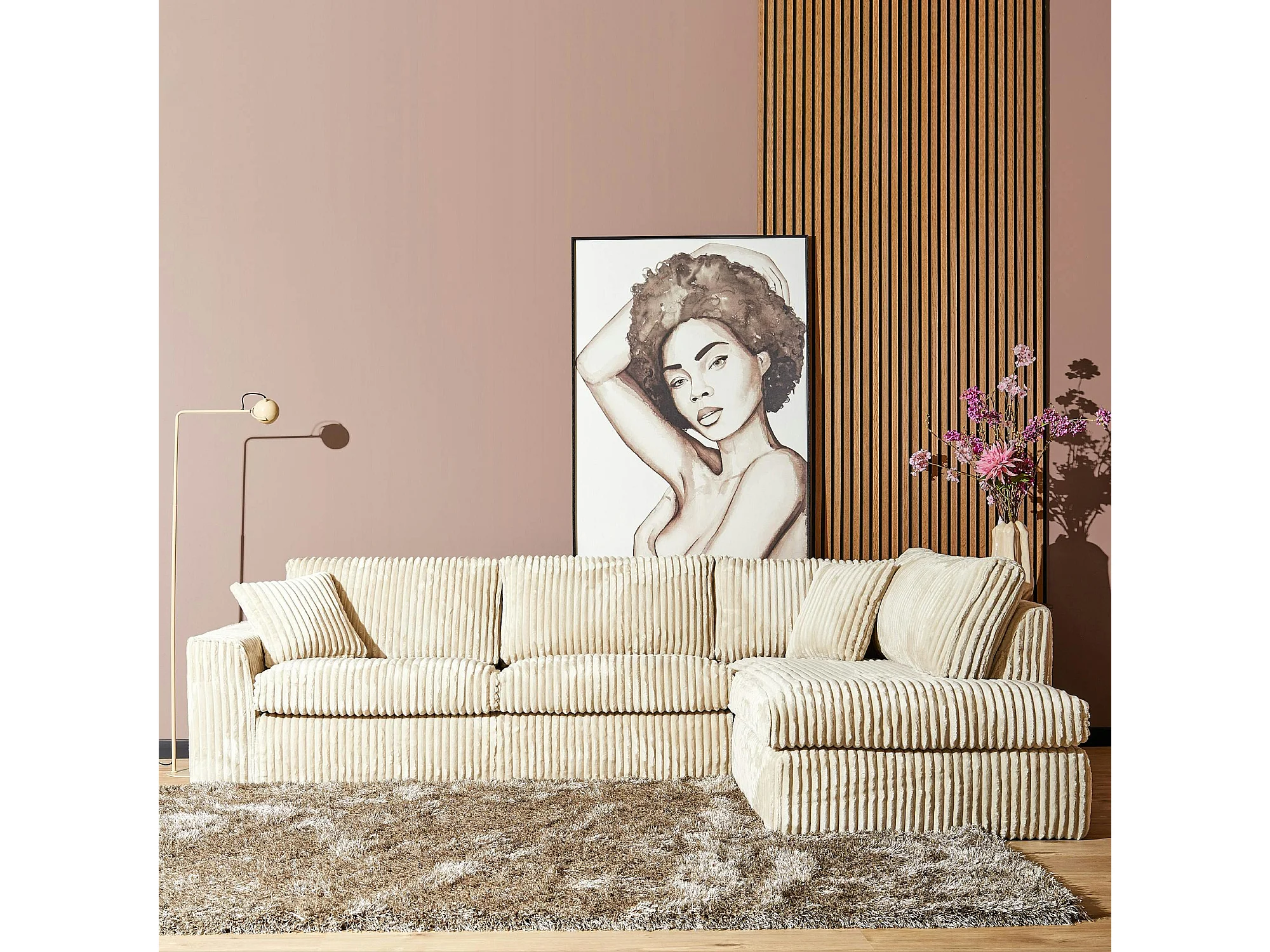 Canapé d'angle beige velours côtelé (côté droit fixe) RIVOLI