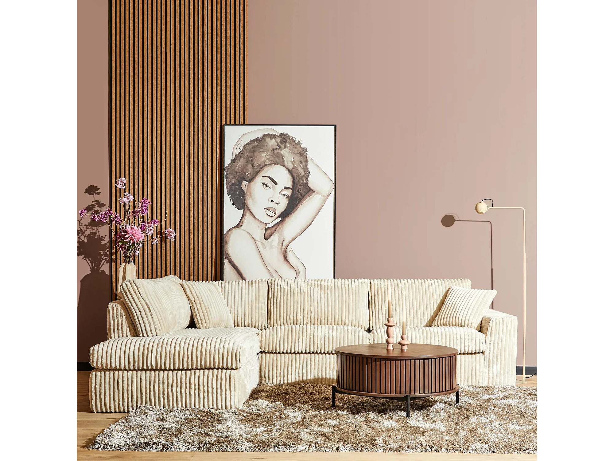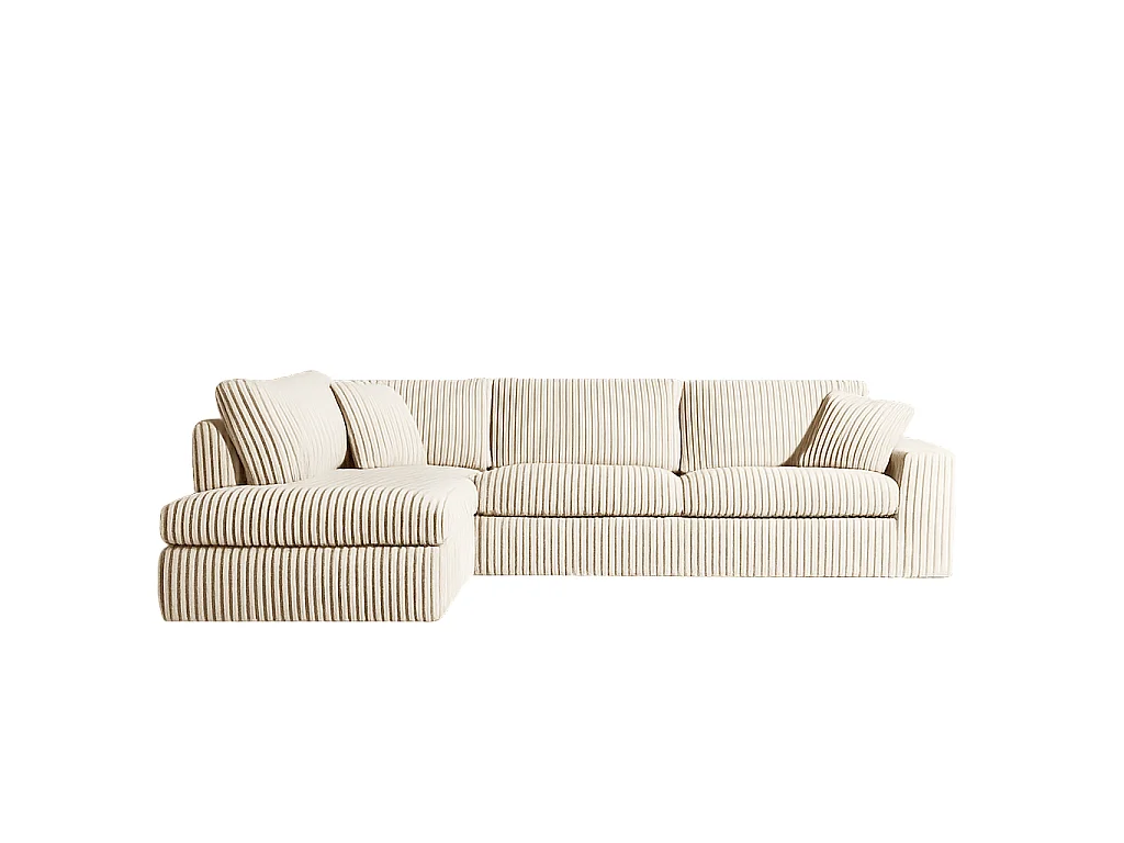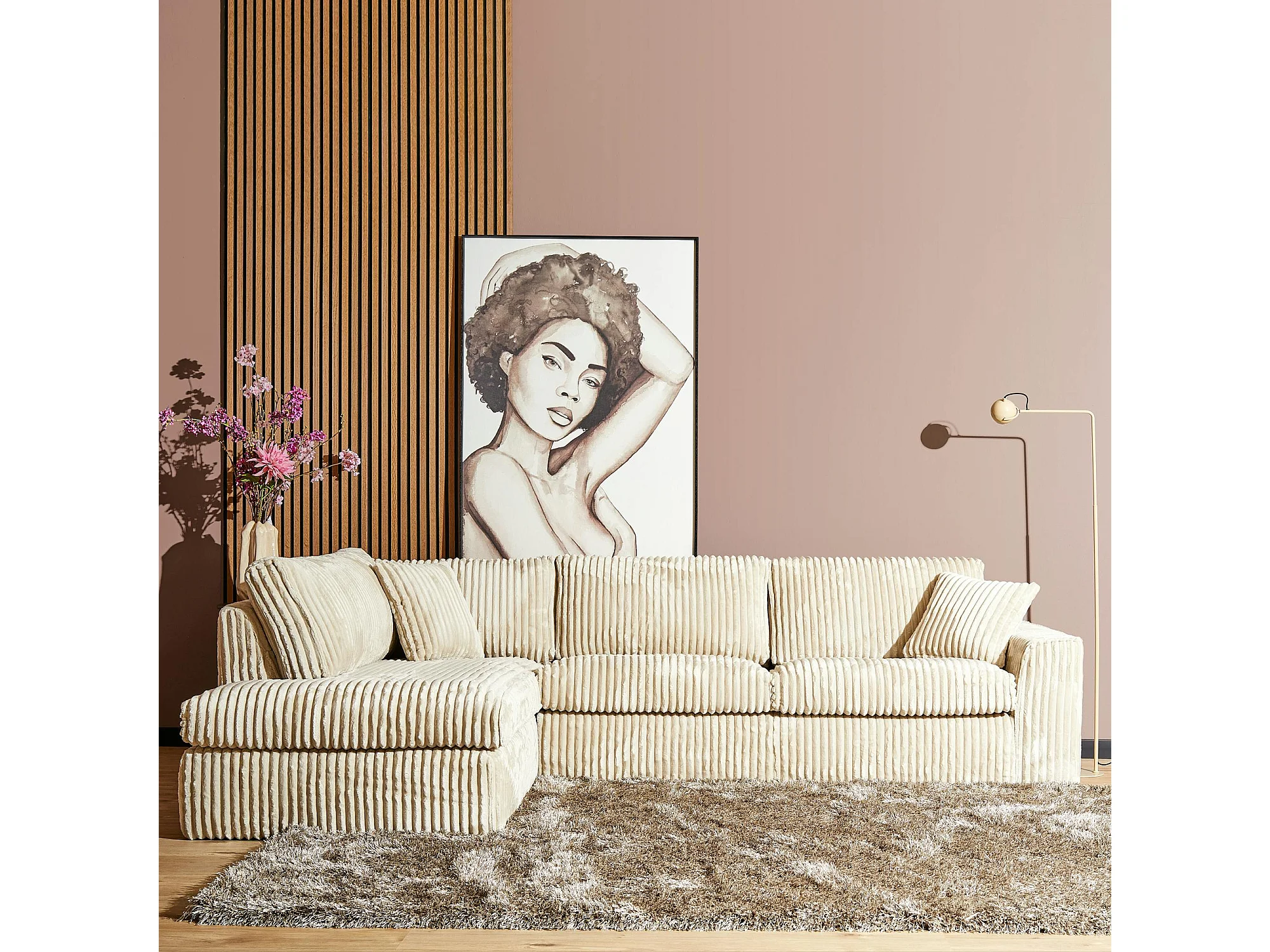 Canapé d'angle beige velours côtelé (côté gauche fixe) RIVOLI