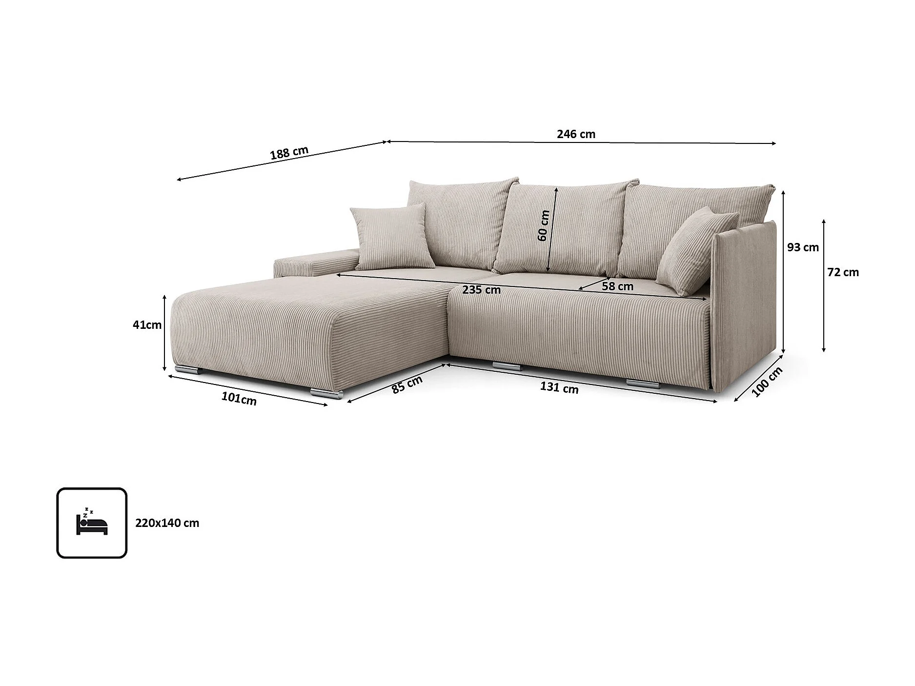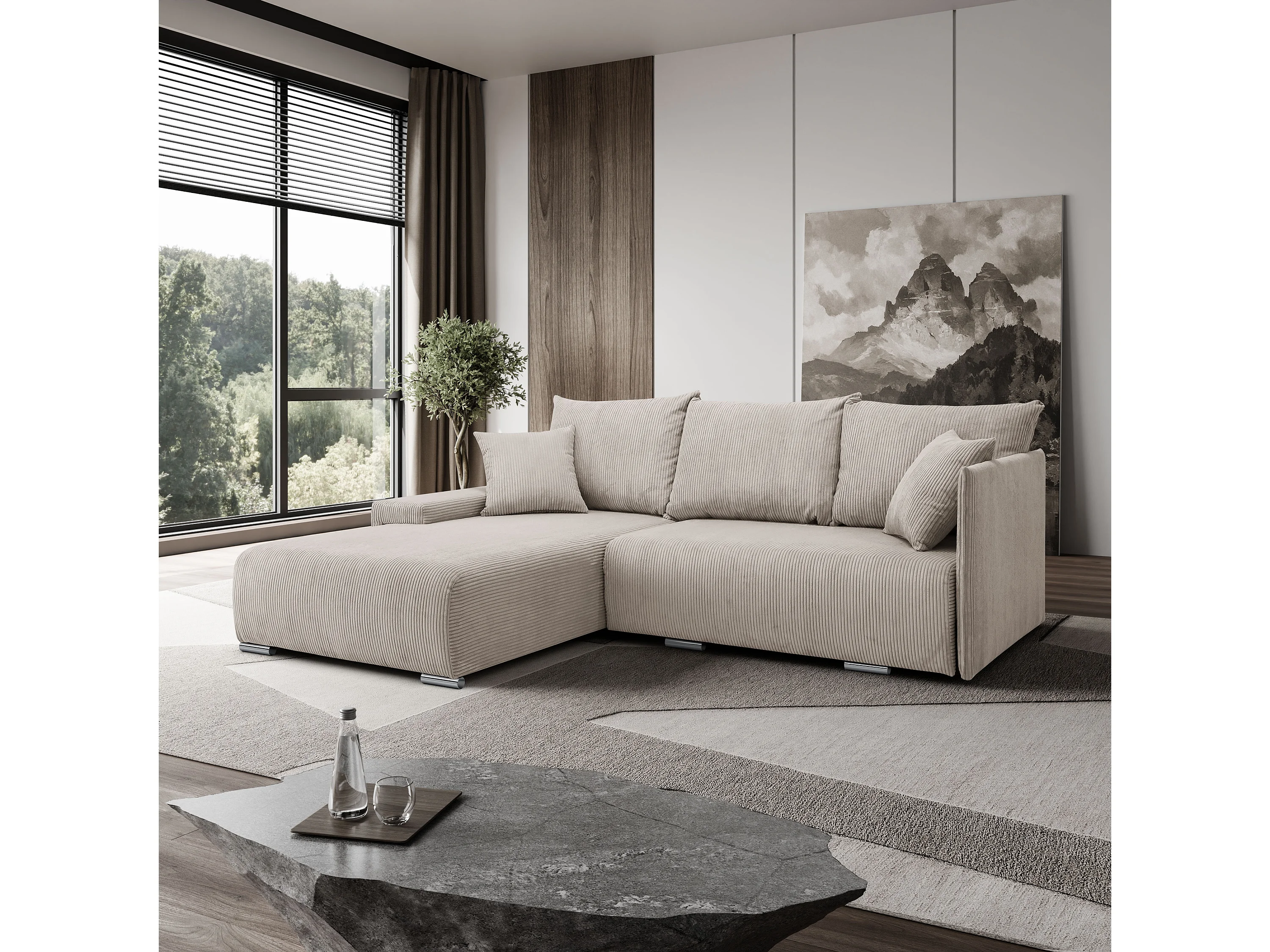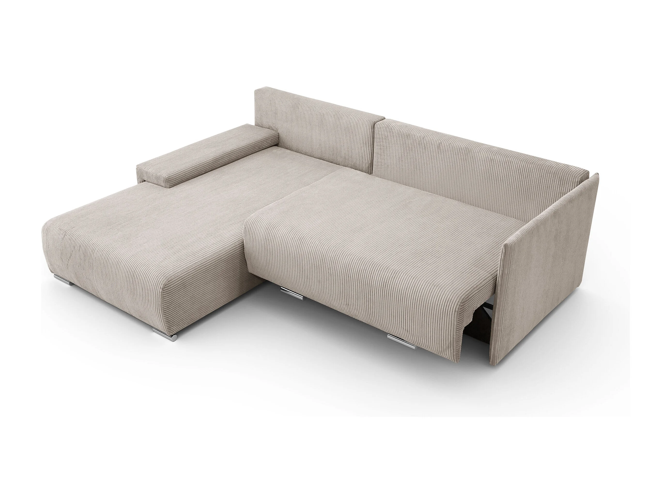Canapé d'angle, Canapé en L, Tissu côtelé Poso, Beige, Gauche, Livorno L