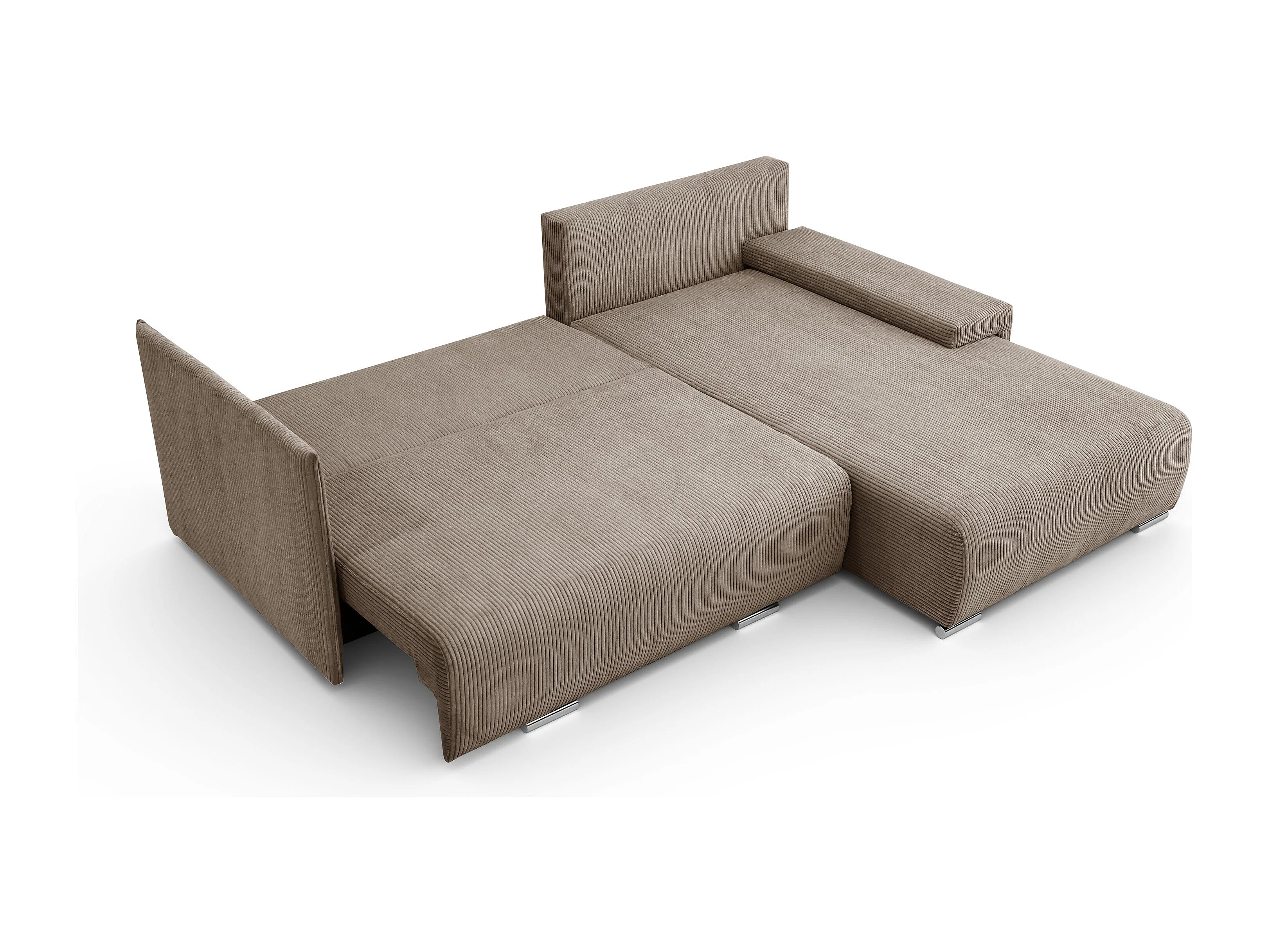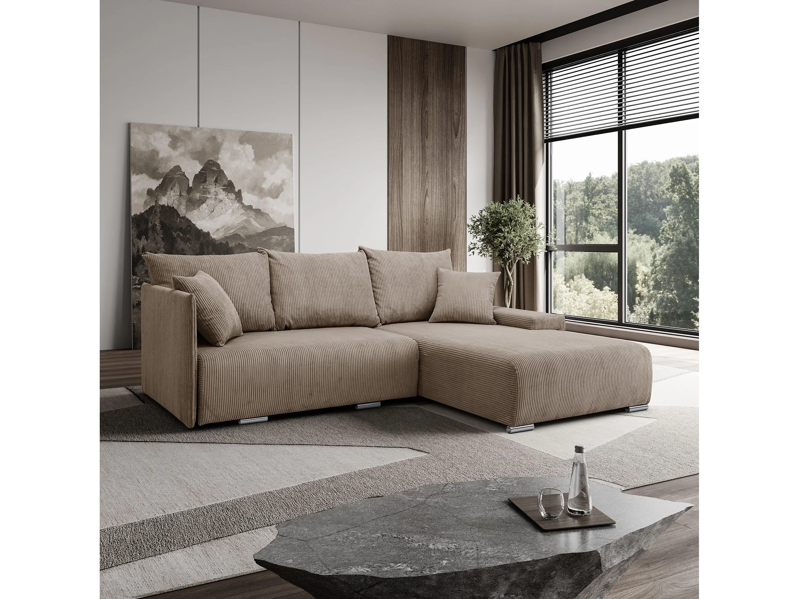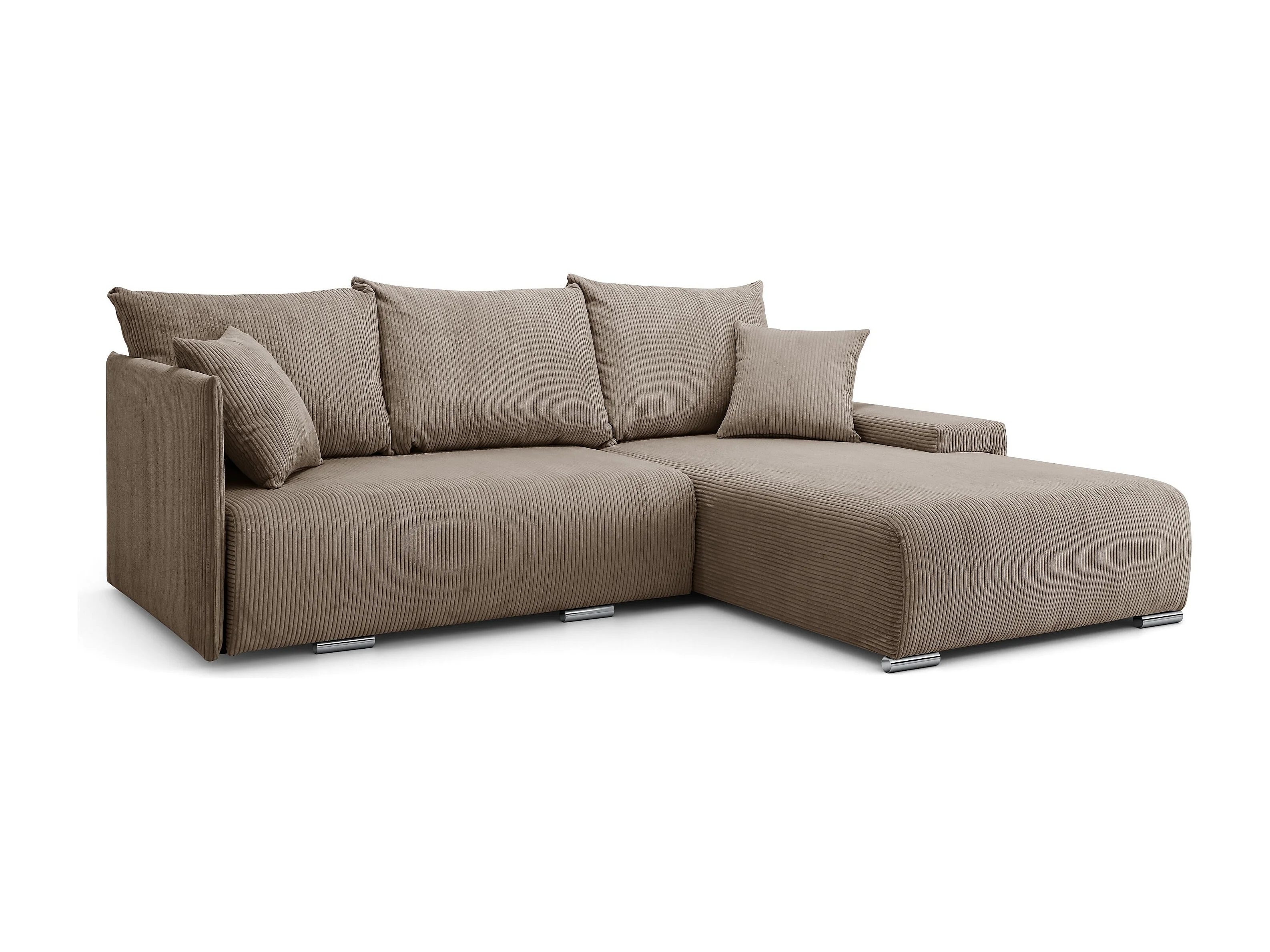 Canapé d'angle, Canapé en L, Tissu côtelé Poso, Brun clair, Droite, Livorno L