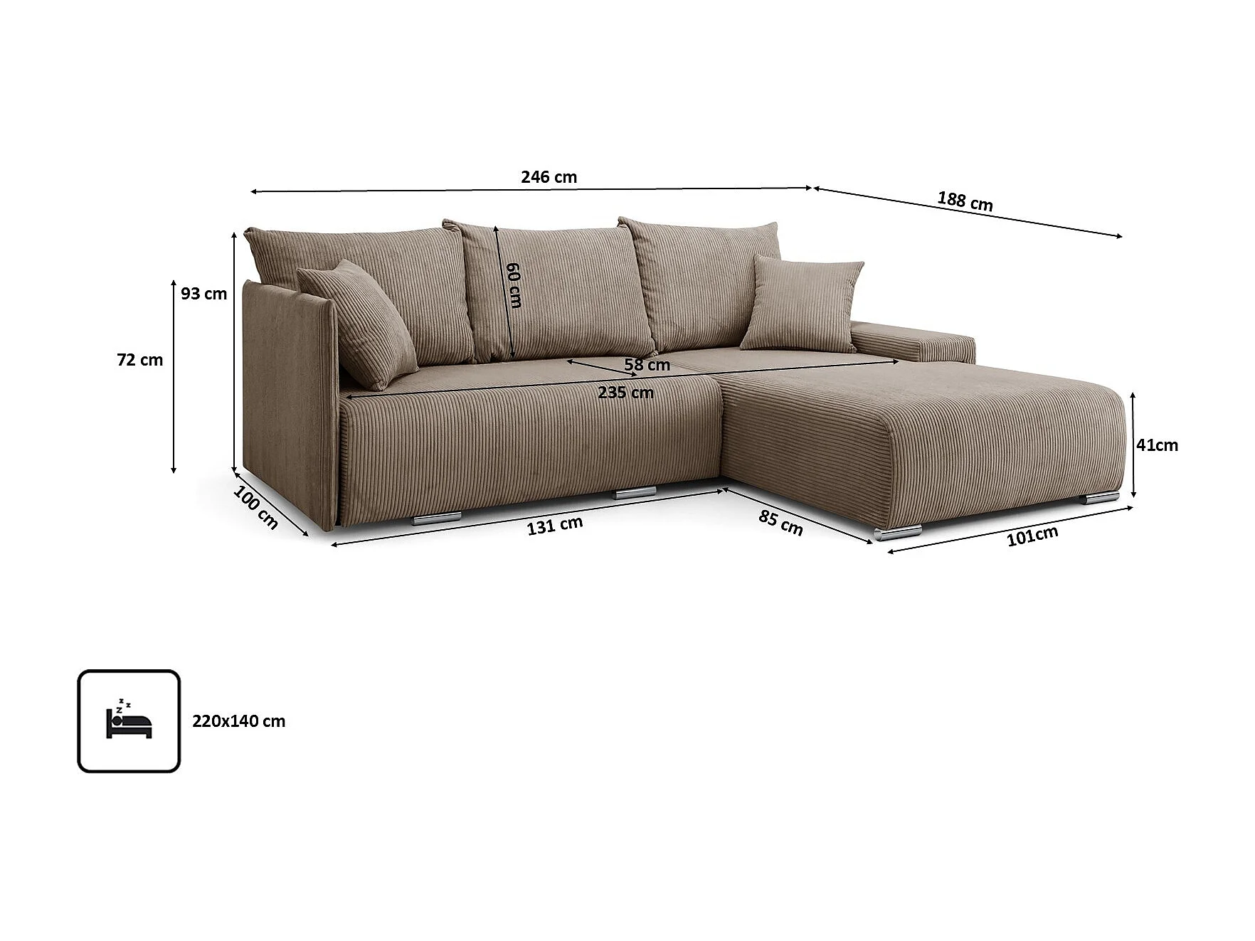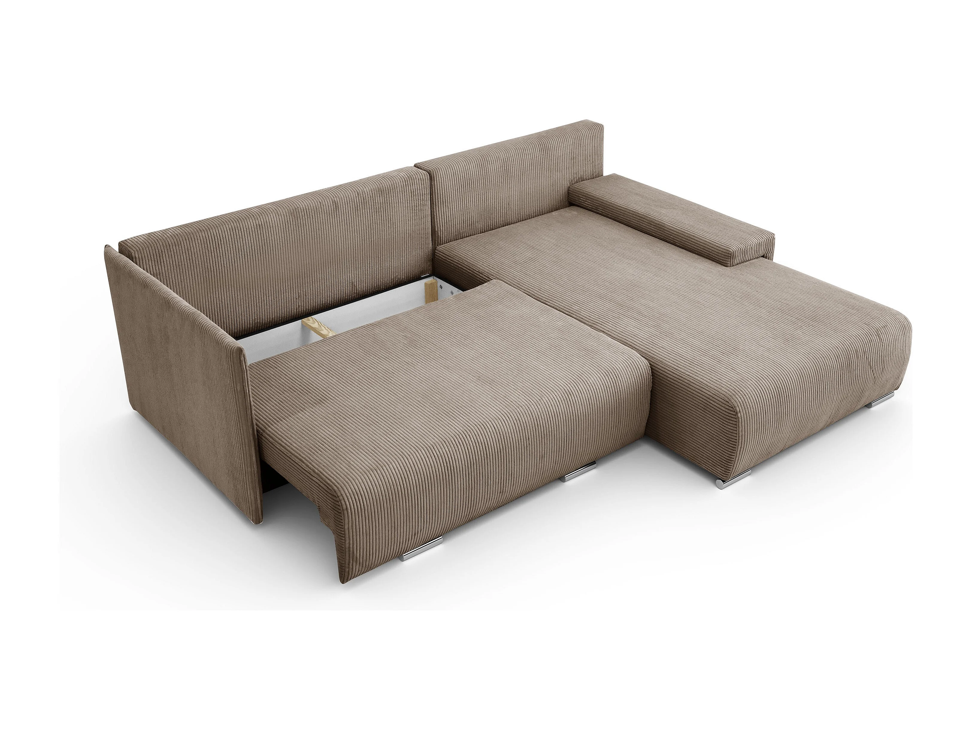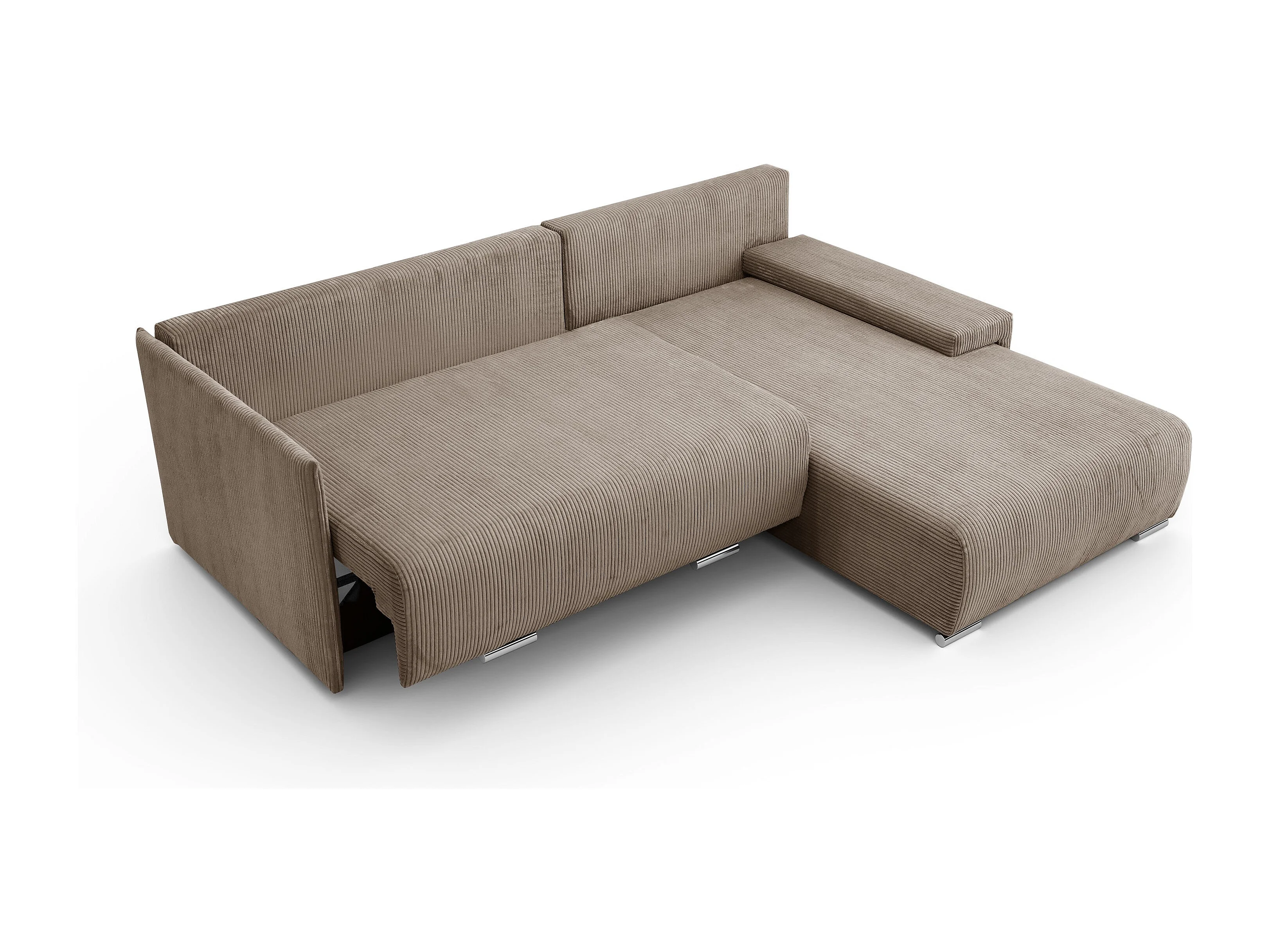 Canapé d'angle, Canapé en L, Tissu côtelé Poso, Brun clair, Droite, Livorno L