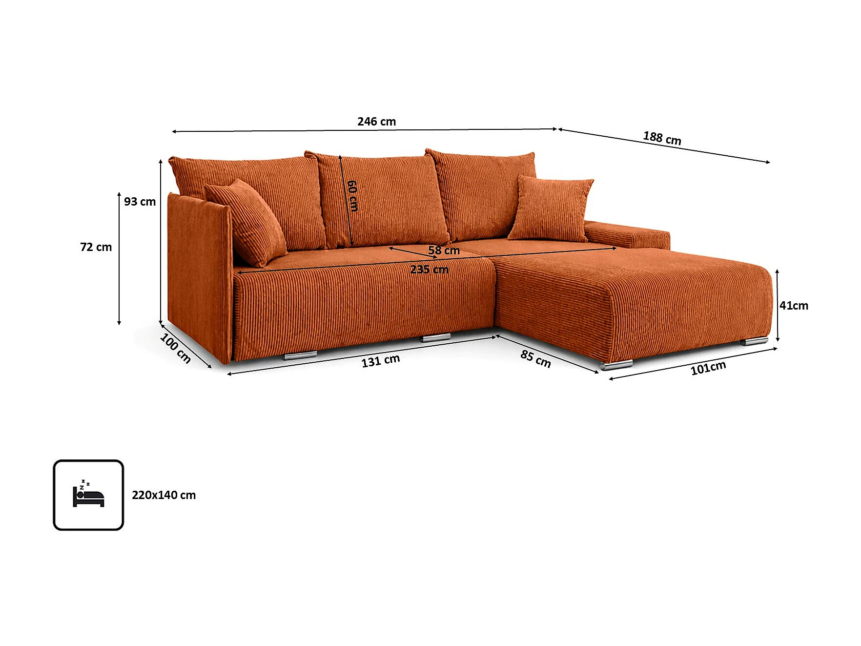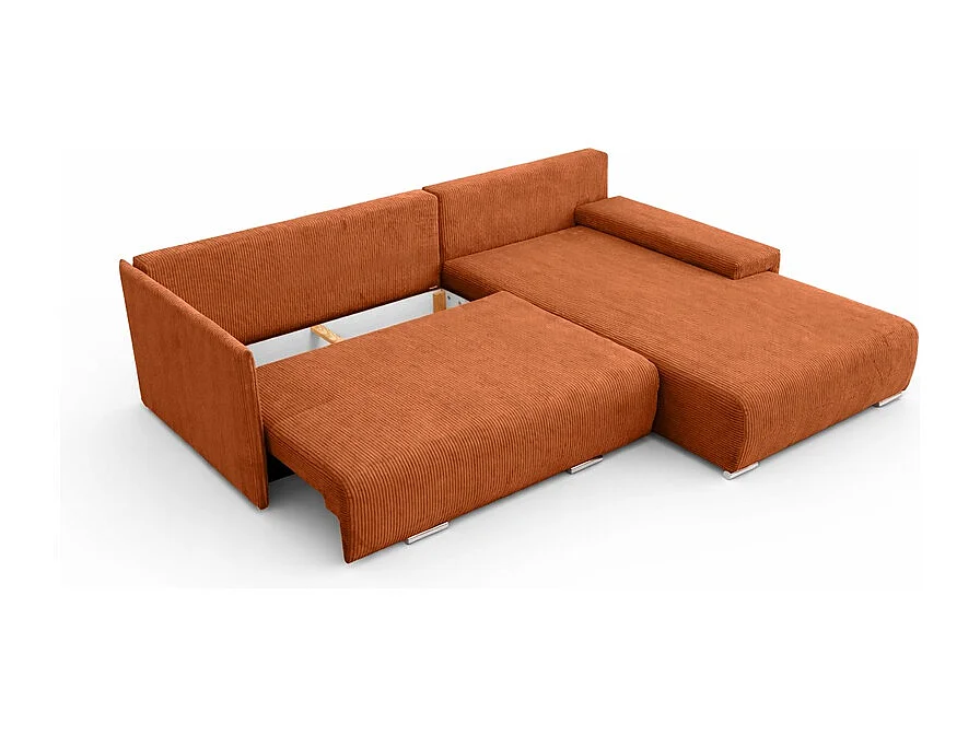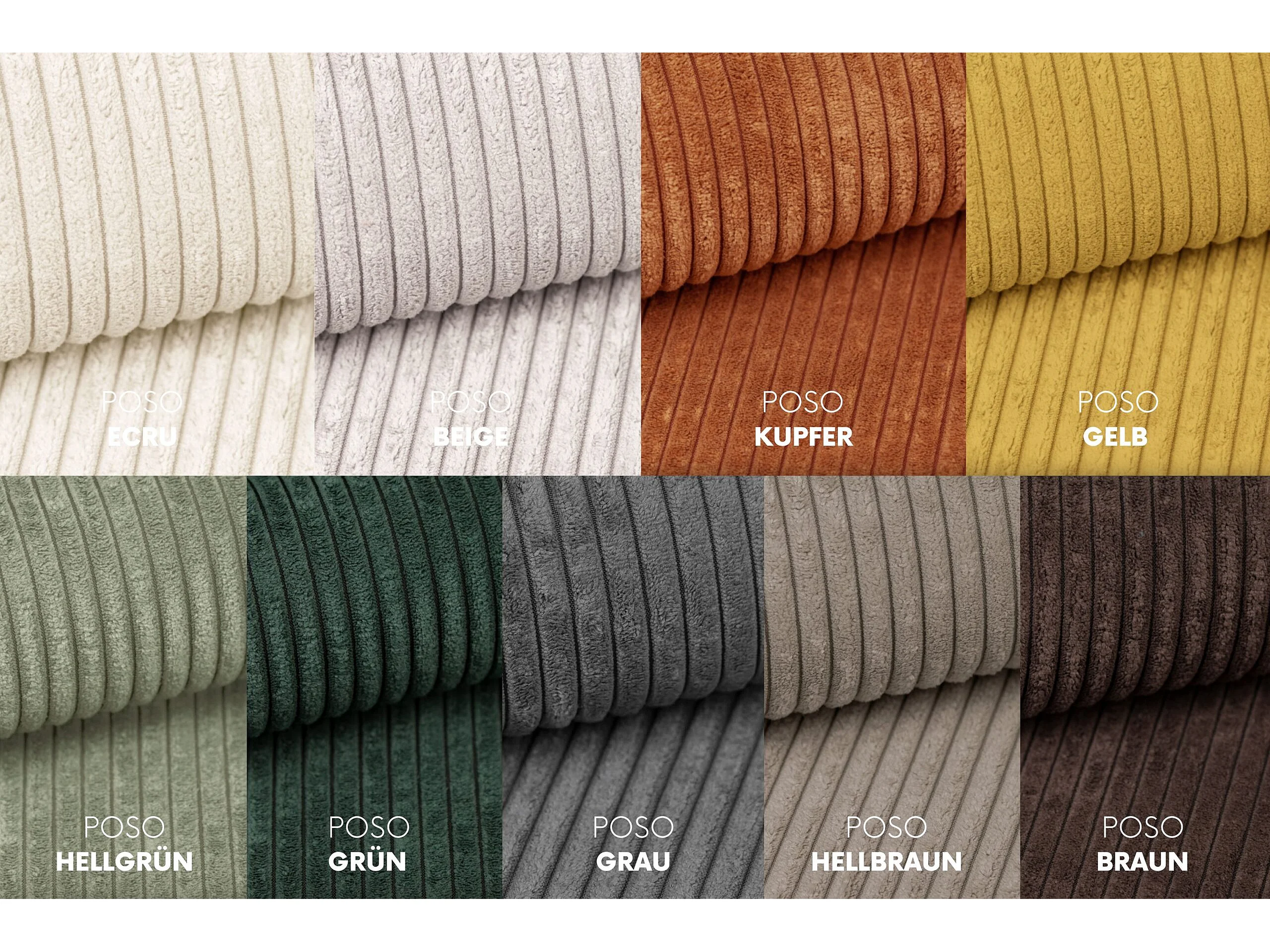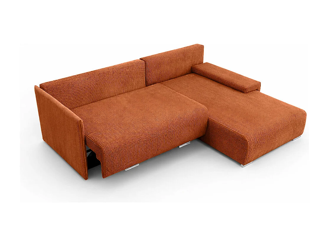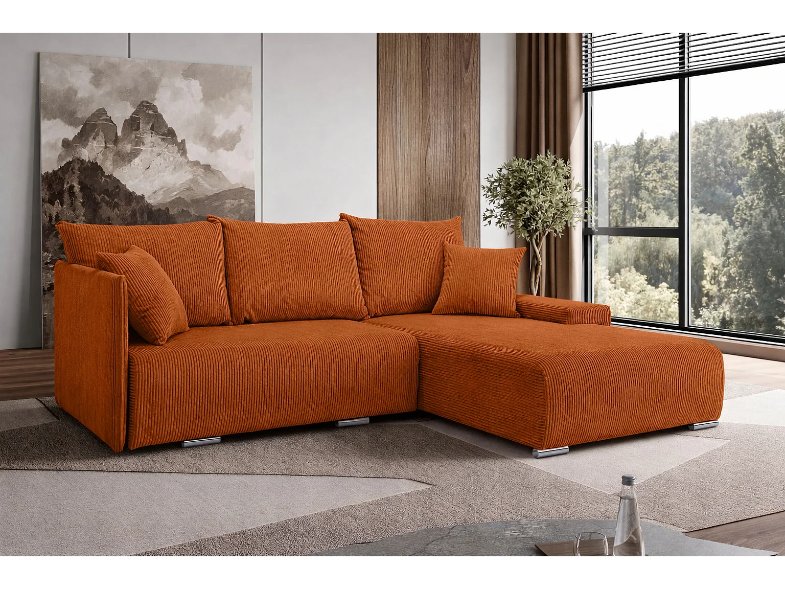 Canapé d'angle, Canapé en L, Tissu côtelé Poso, Cuivre, Droite, Livorno L