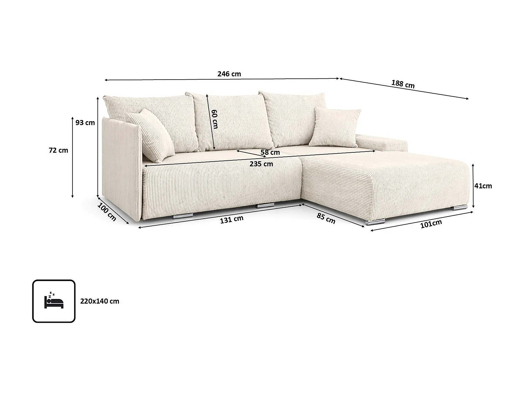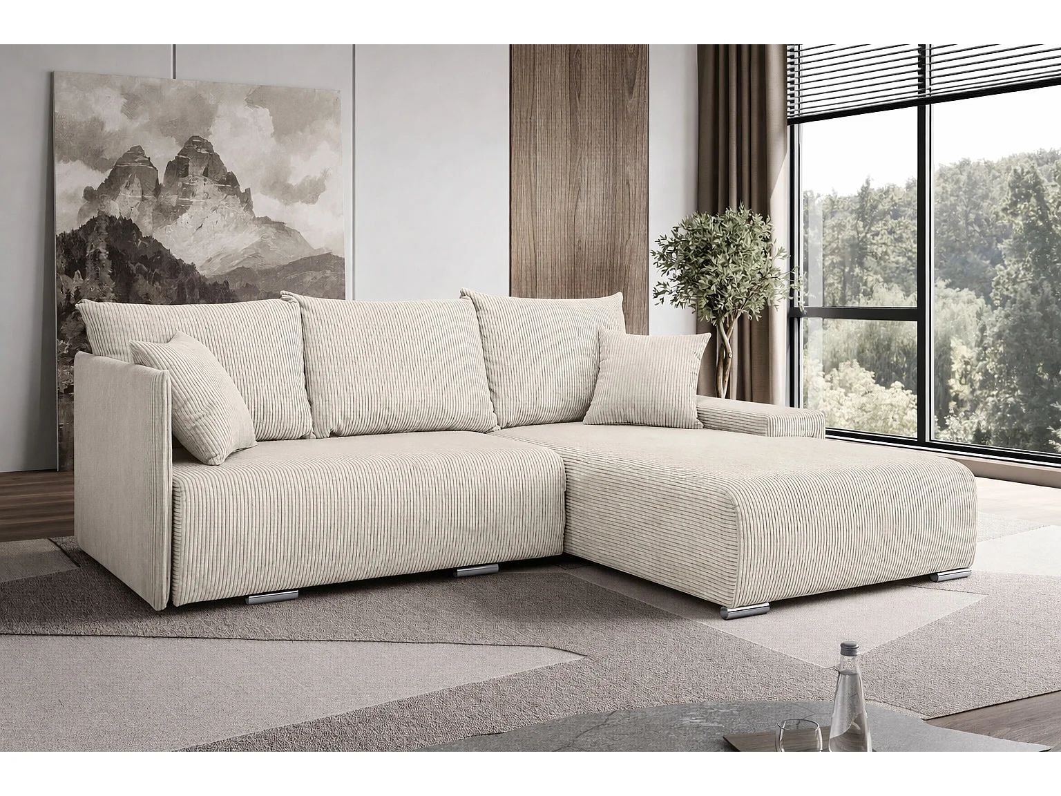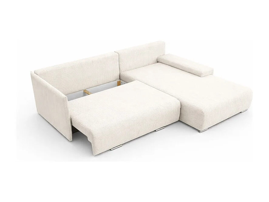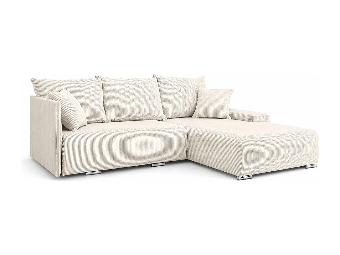 Canapé d'angle, Canapé en L, Tissu côtelé Poso, Écru, Droite, Livorno L