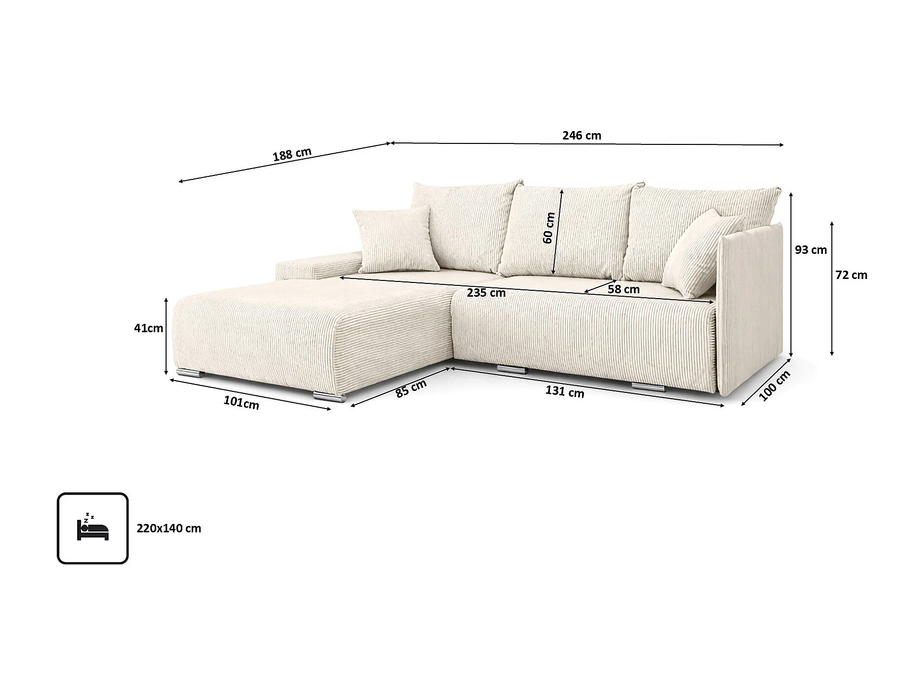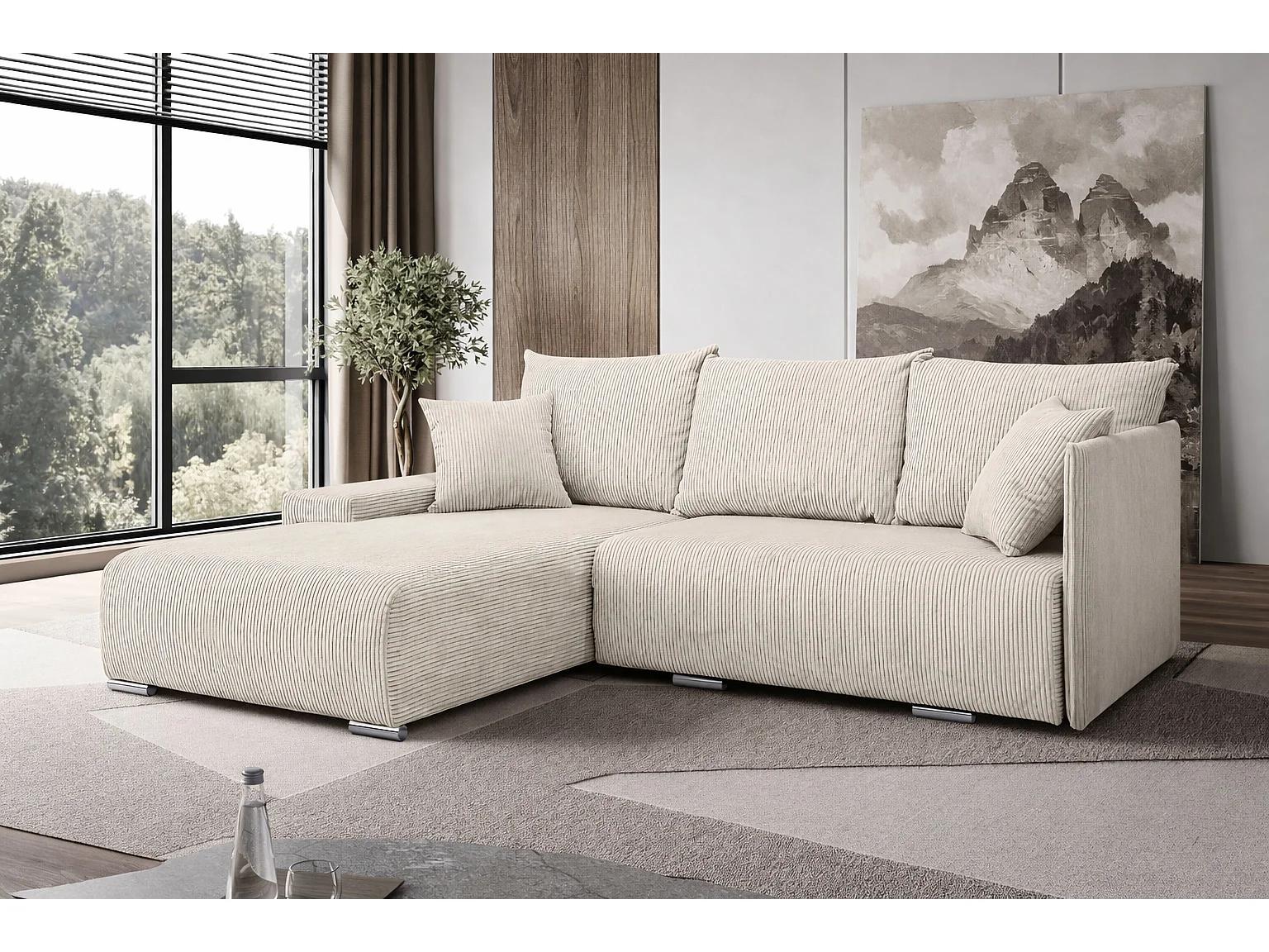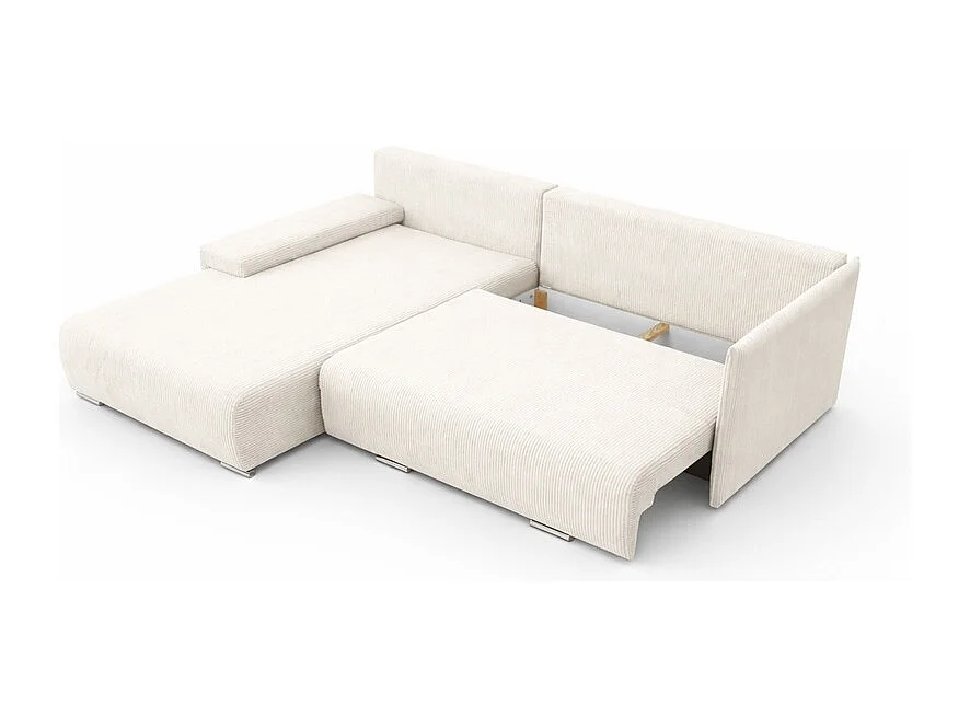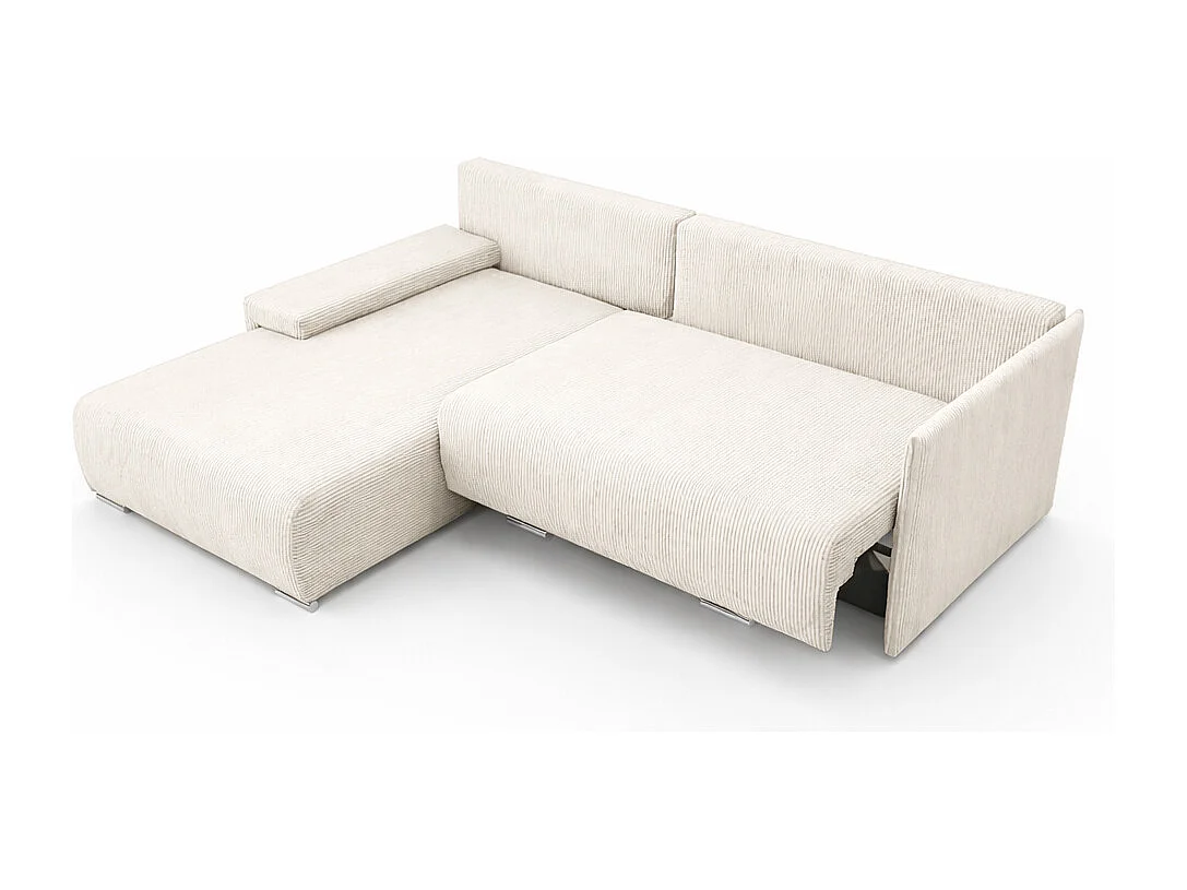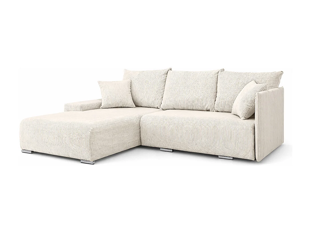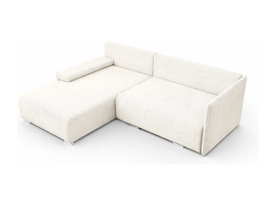 Canapé d'angle, Canapé en L, Tissu côtelé Poso, Écru, Gauche, Livorno L