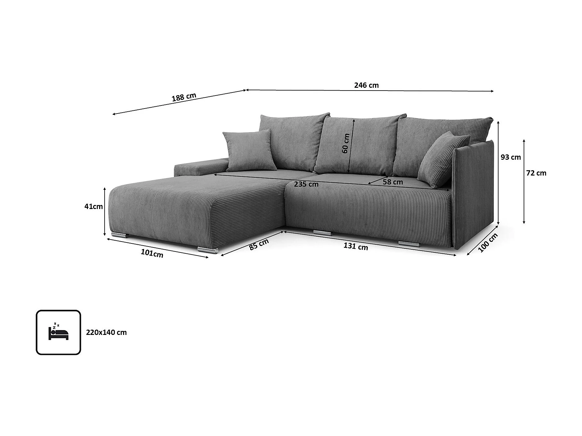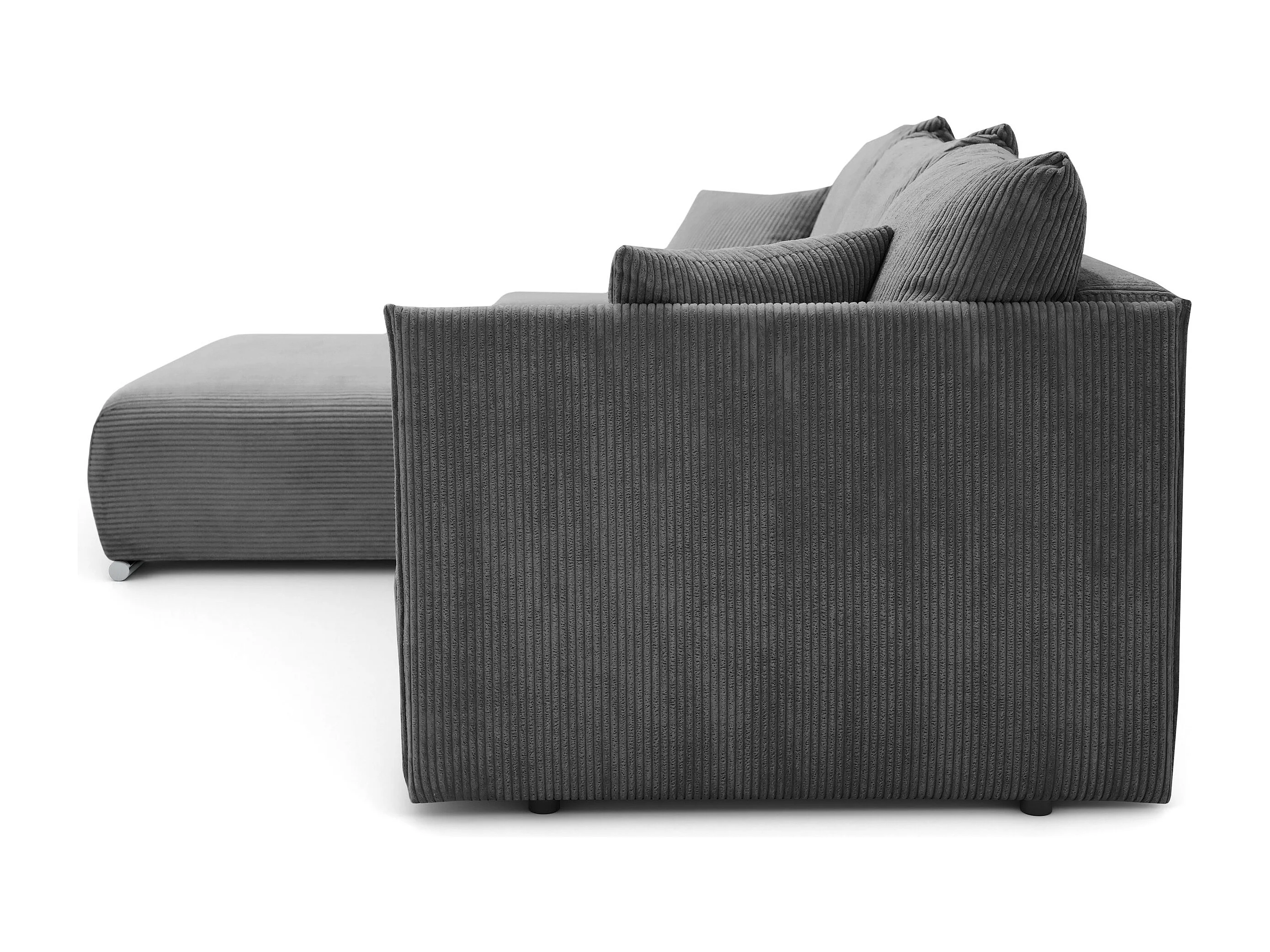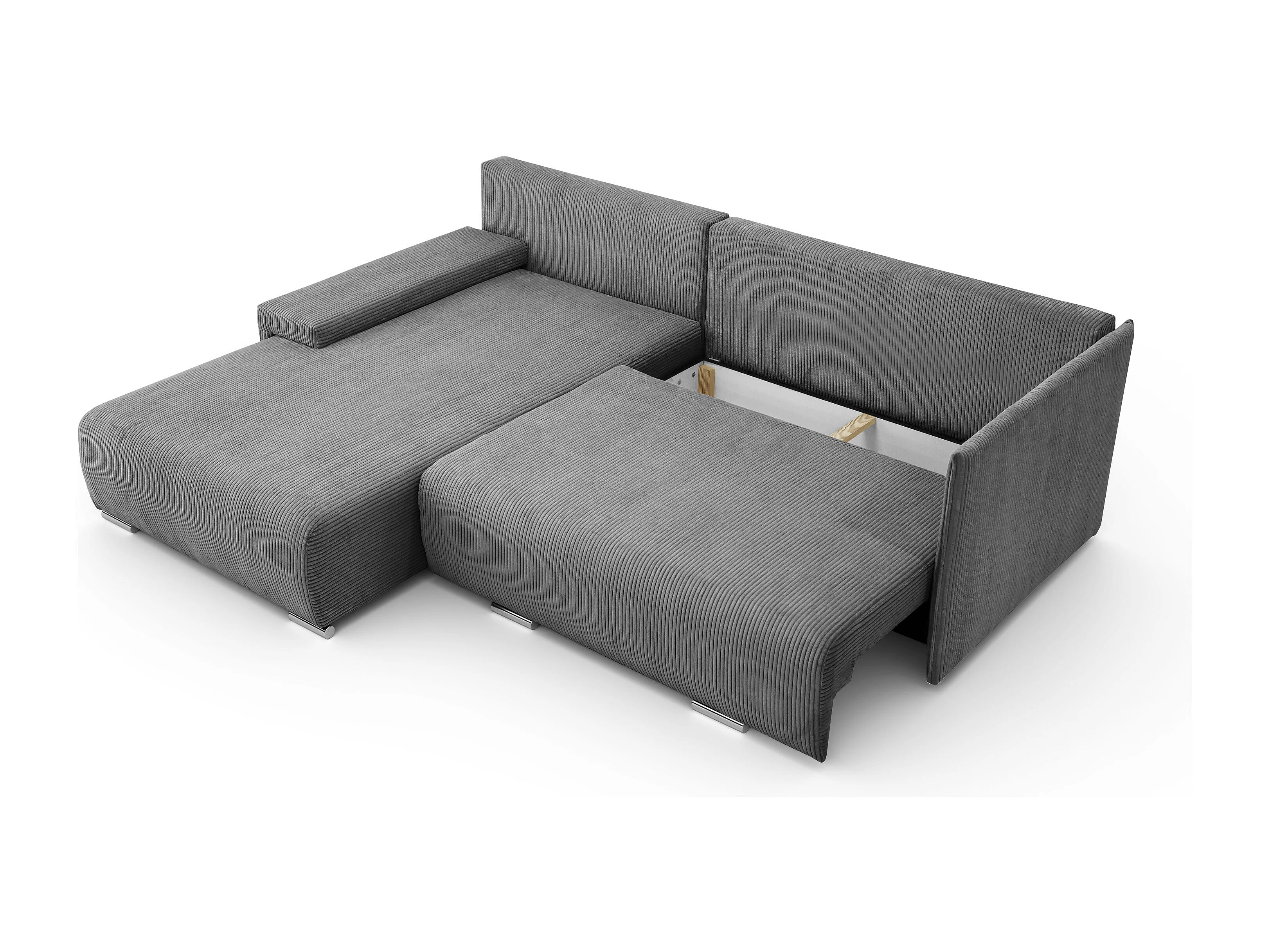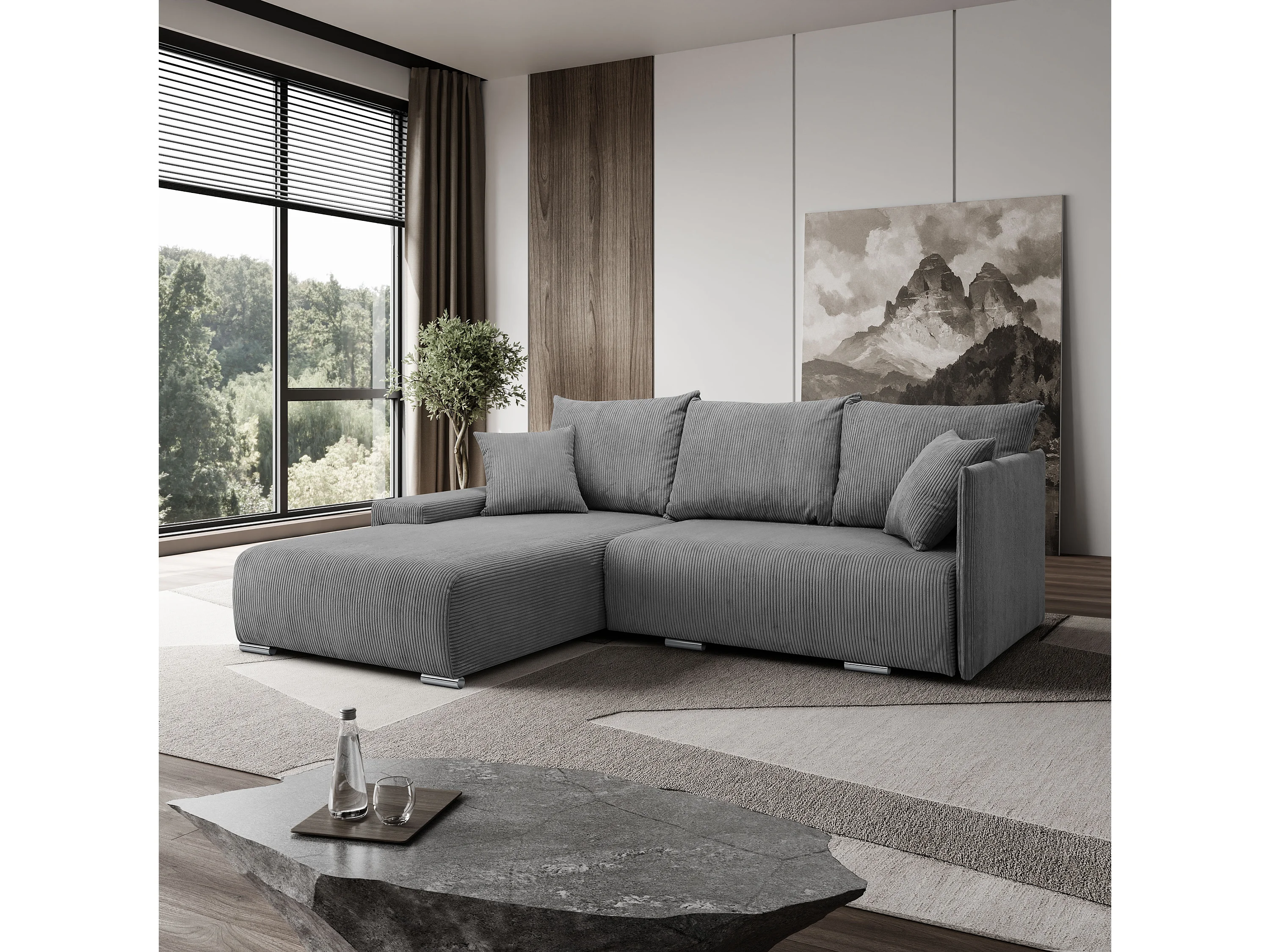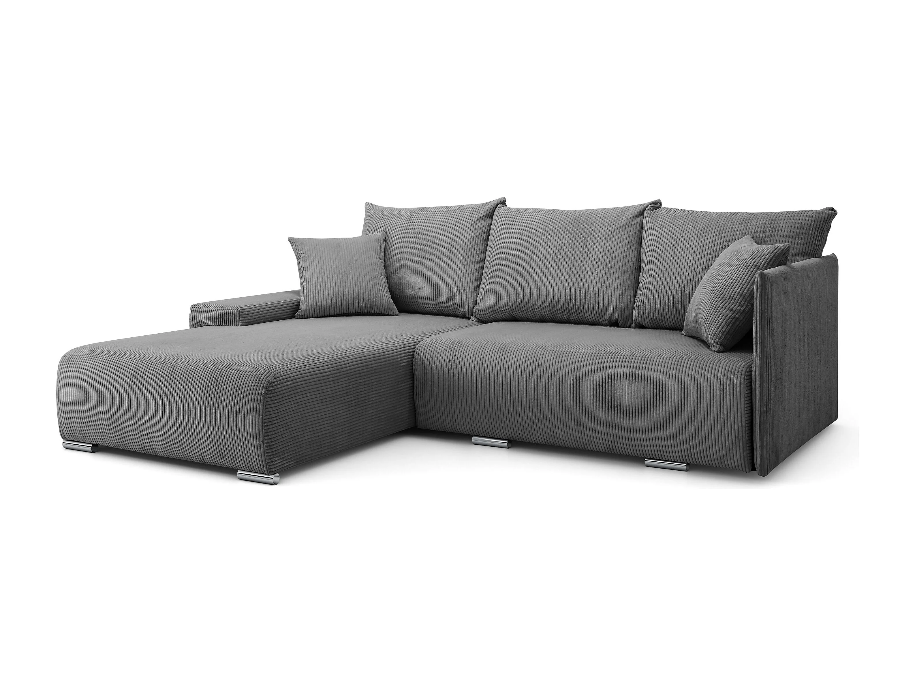 Canapé d'angle, Canapé en L, Tissu côtelé Poso, Gris, Gauche, Livorno L