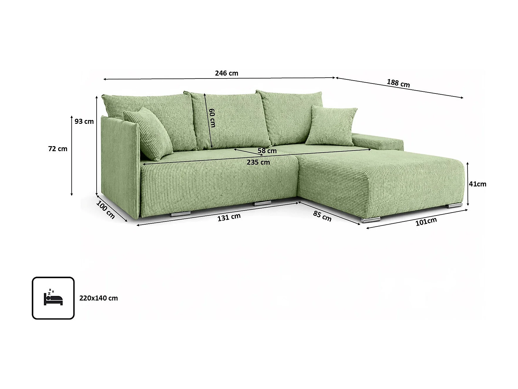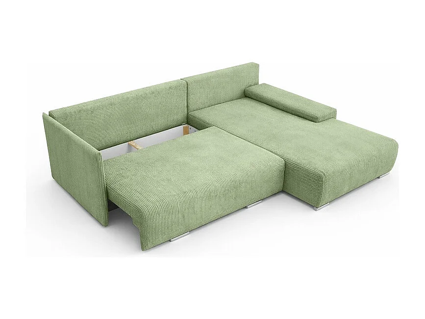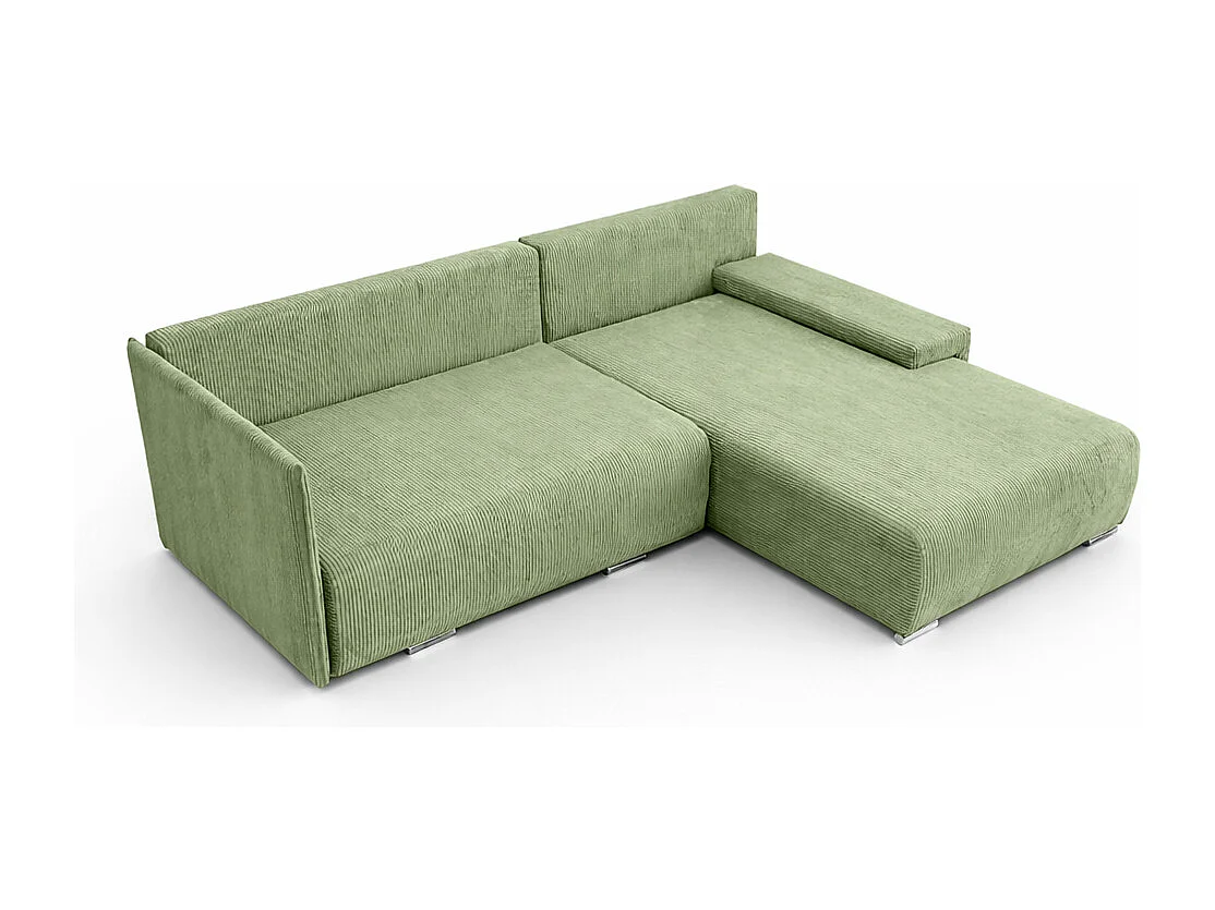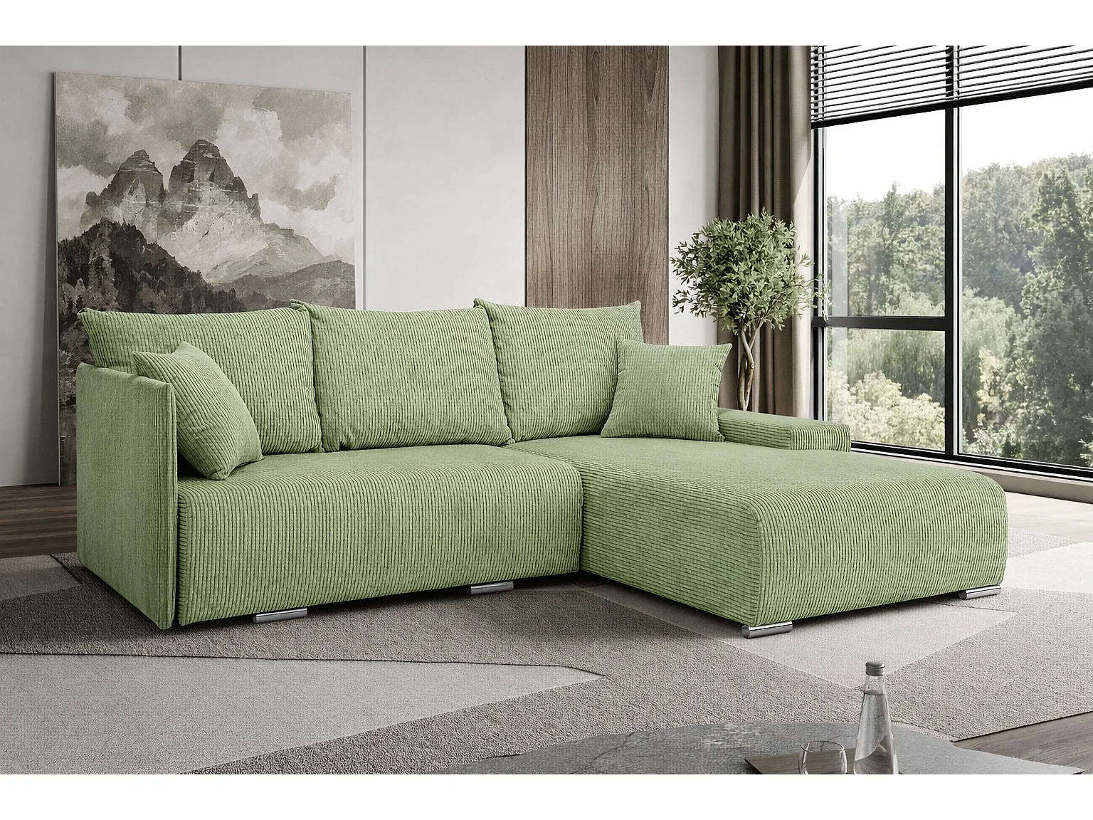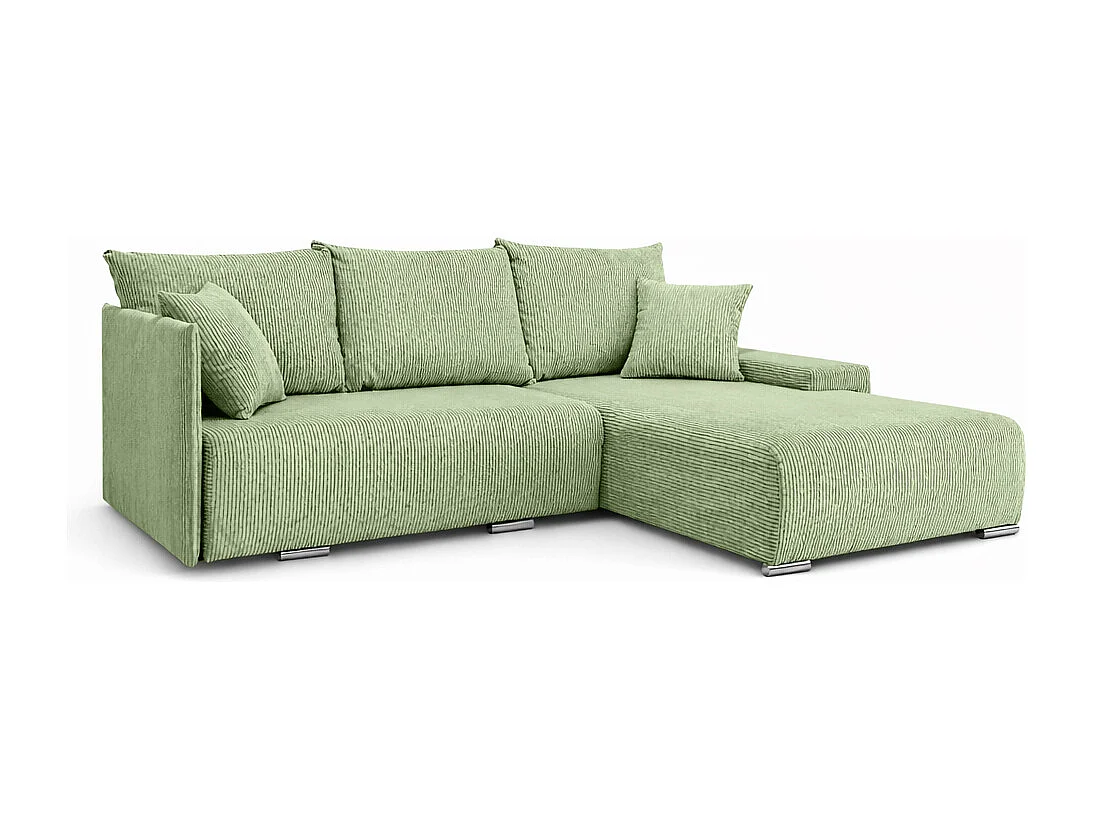 Canapé d'angle, Canapé en L, Tissu côtelé Poso, Vert clair, Droite, Livorno L