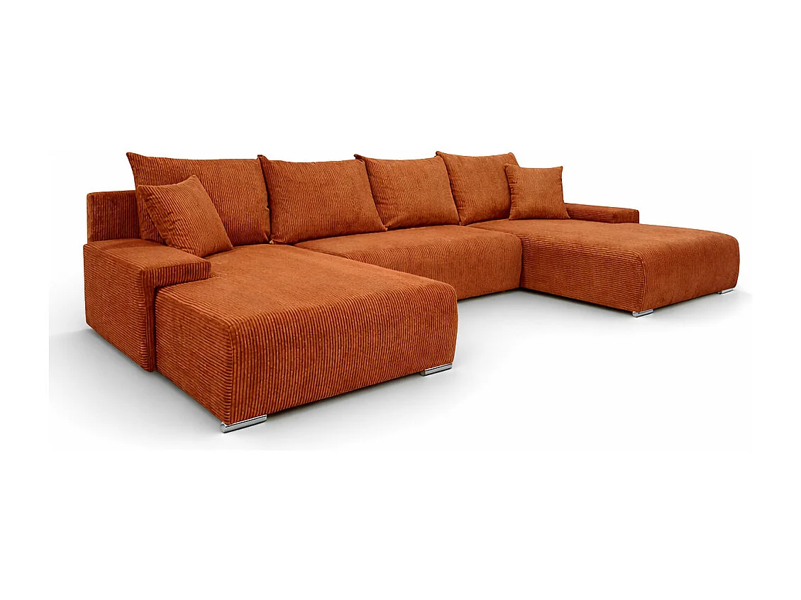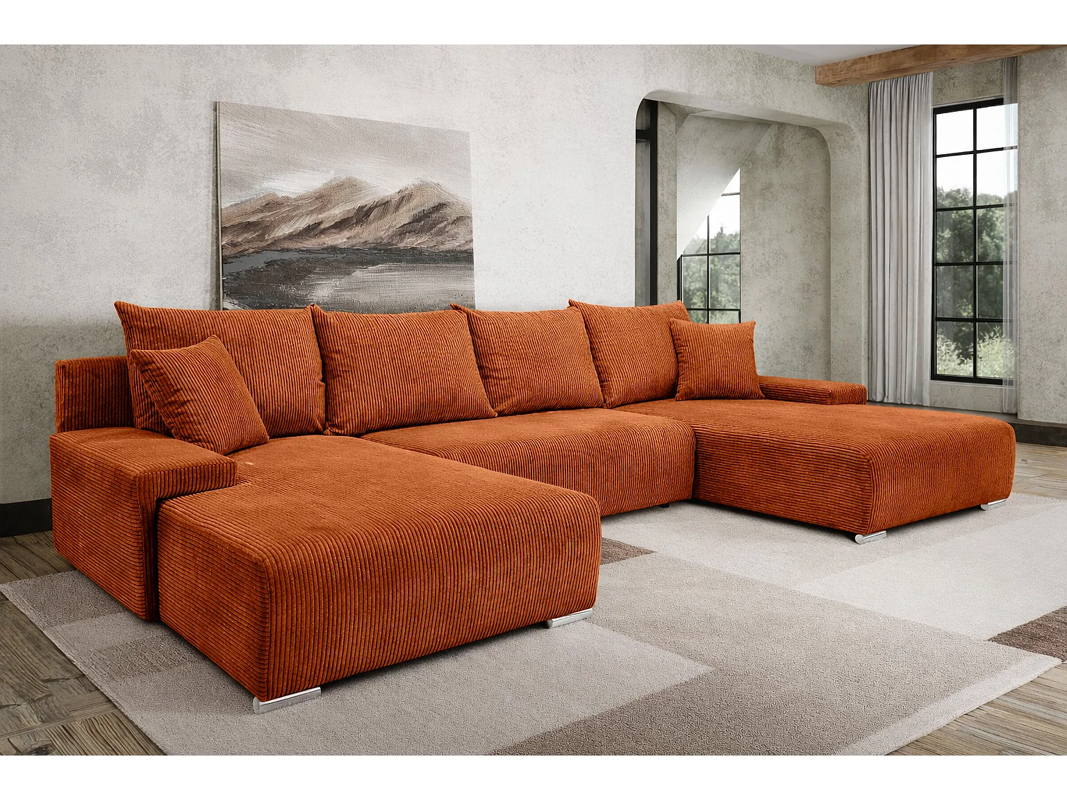 Canapé d'angle, Canapé en U, Tissu côtelé Poso, Cuivre, Livorno U