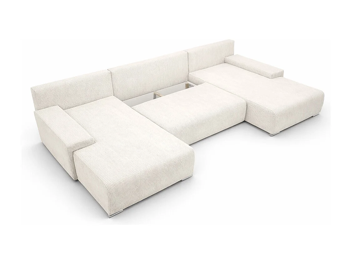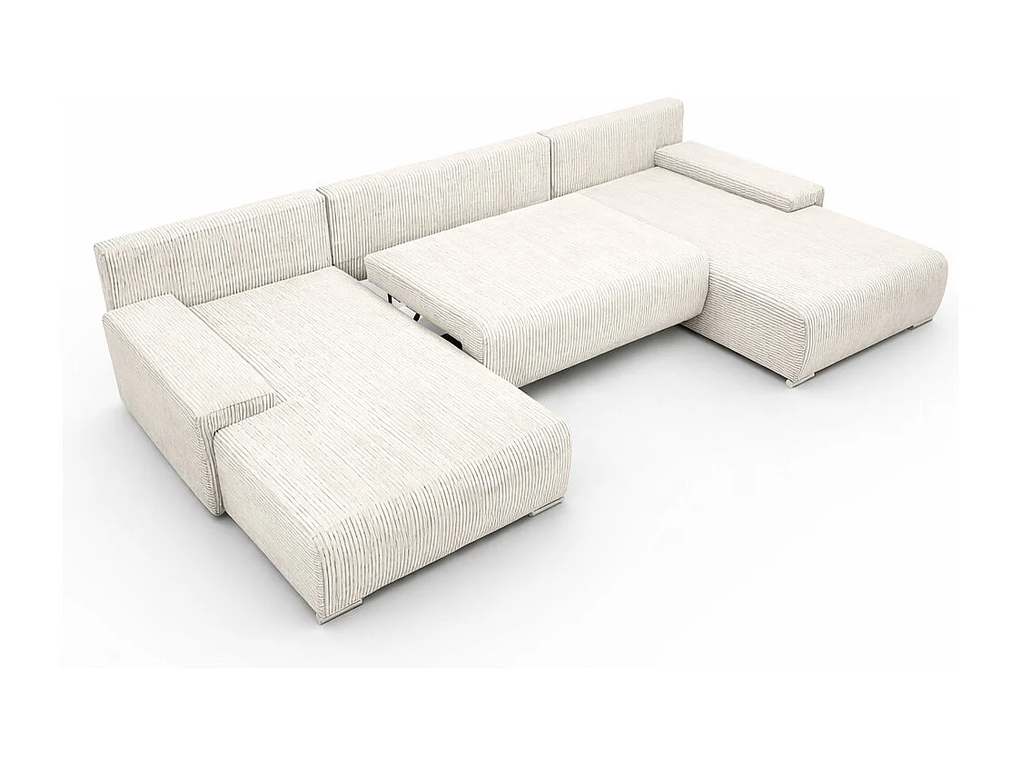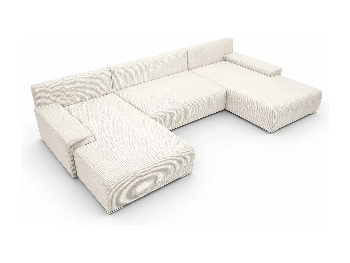 Canapé d'angle, Canapé en U, Tissu côtelé Poso, Écru, Livorno U