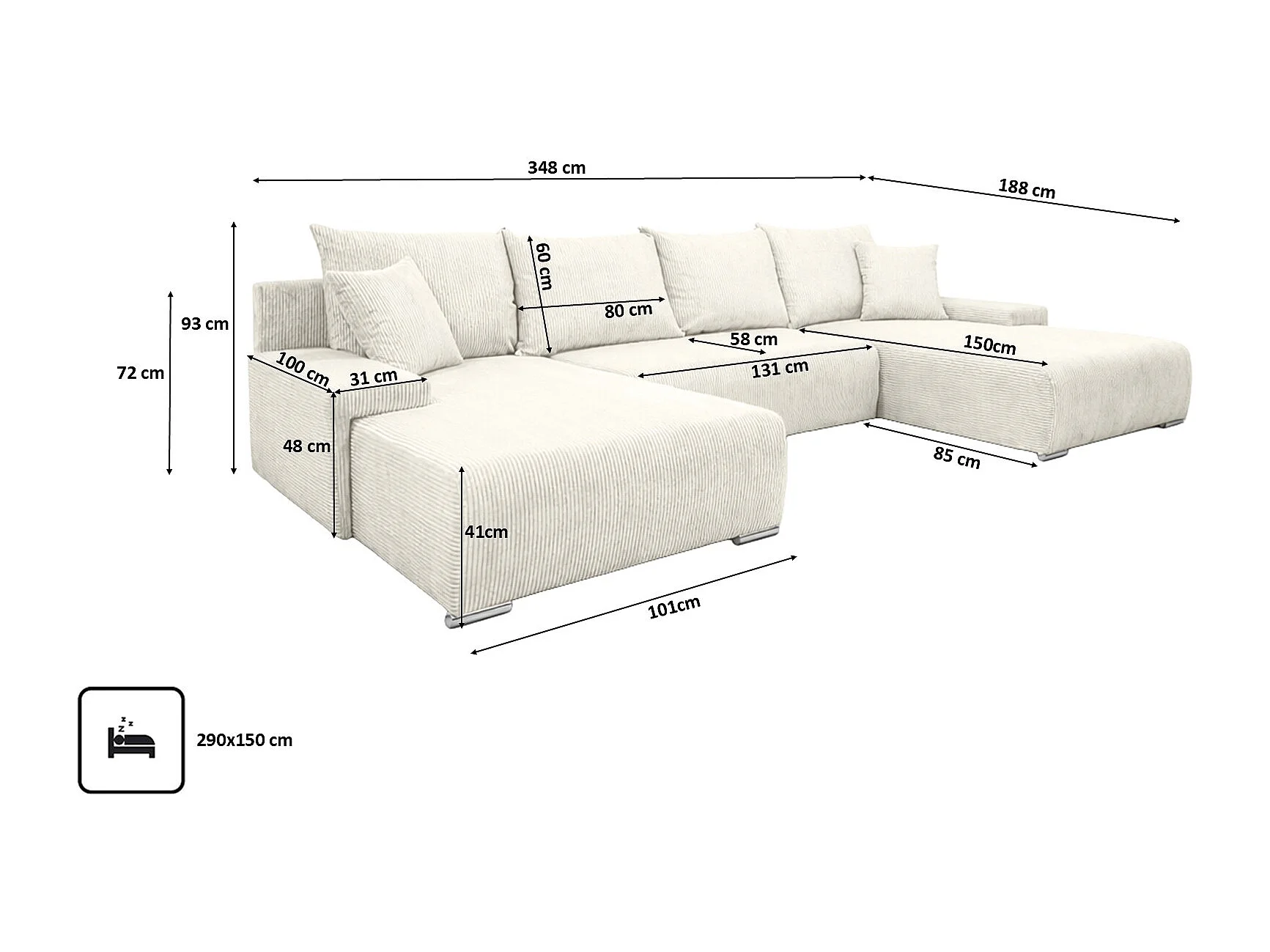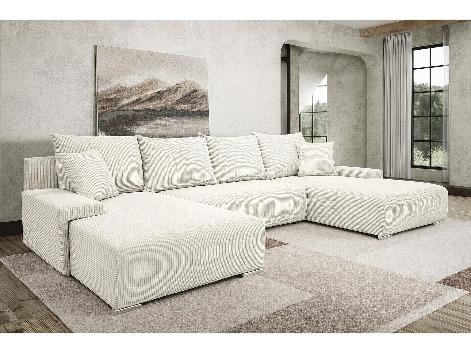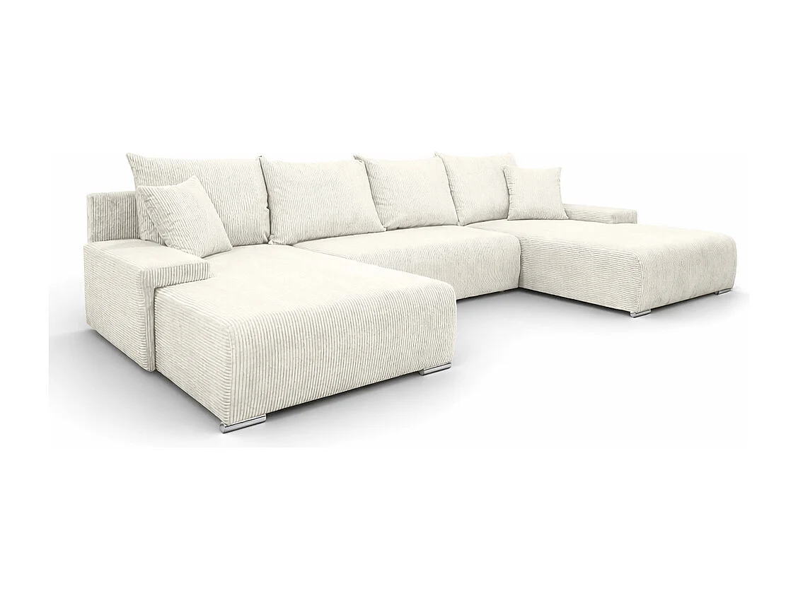 Canapé d'angle, Canapé en U, Tissu côtelé Poso, Écru, Livorno U