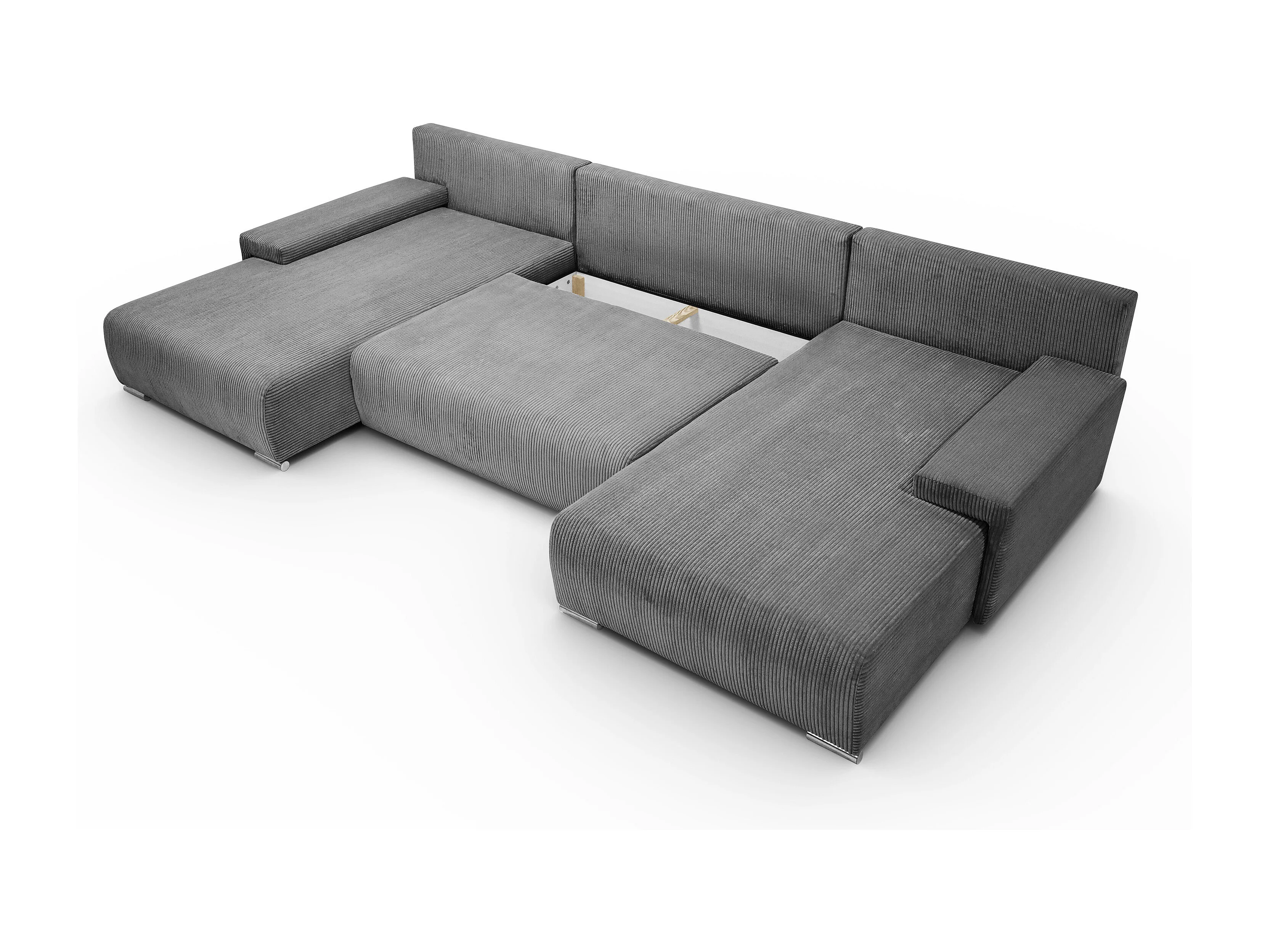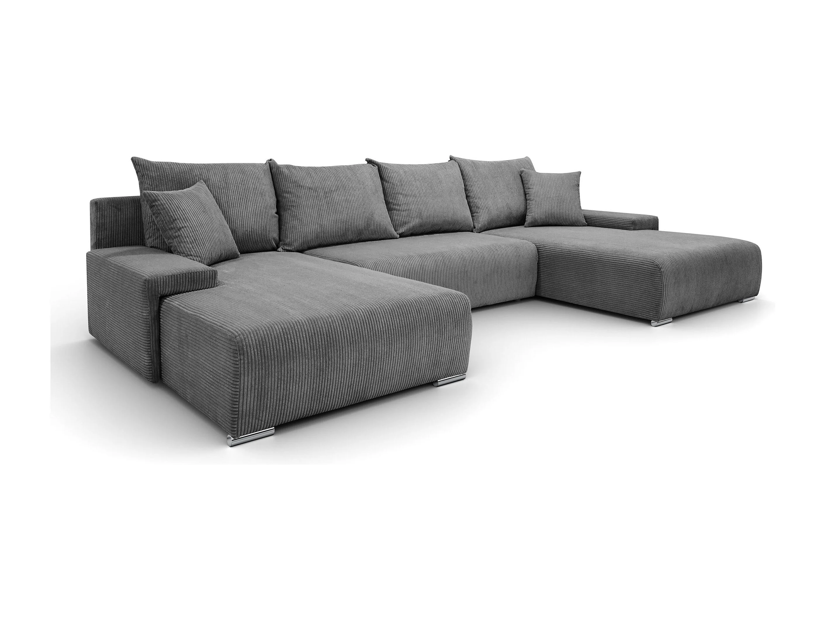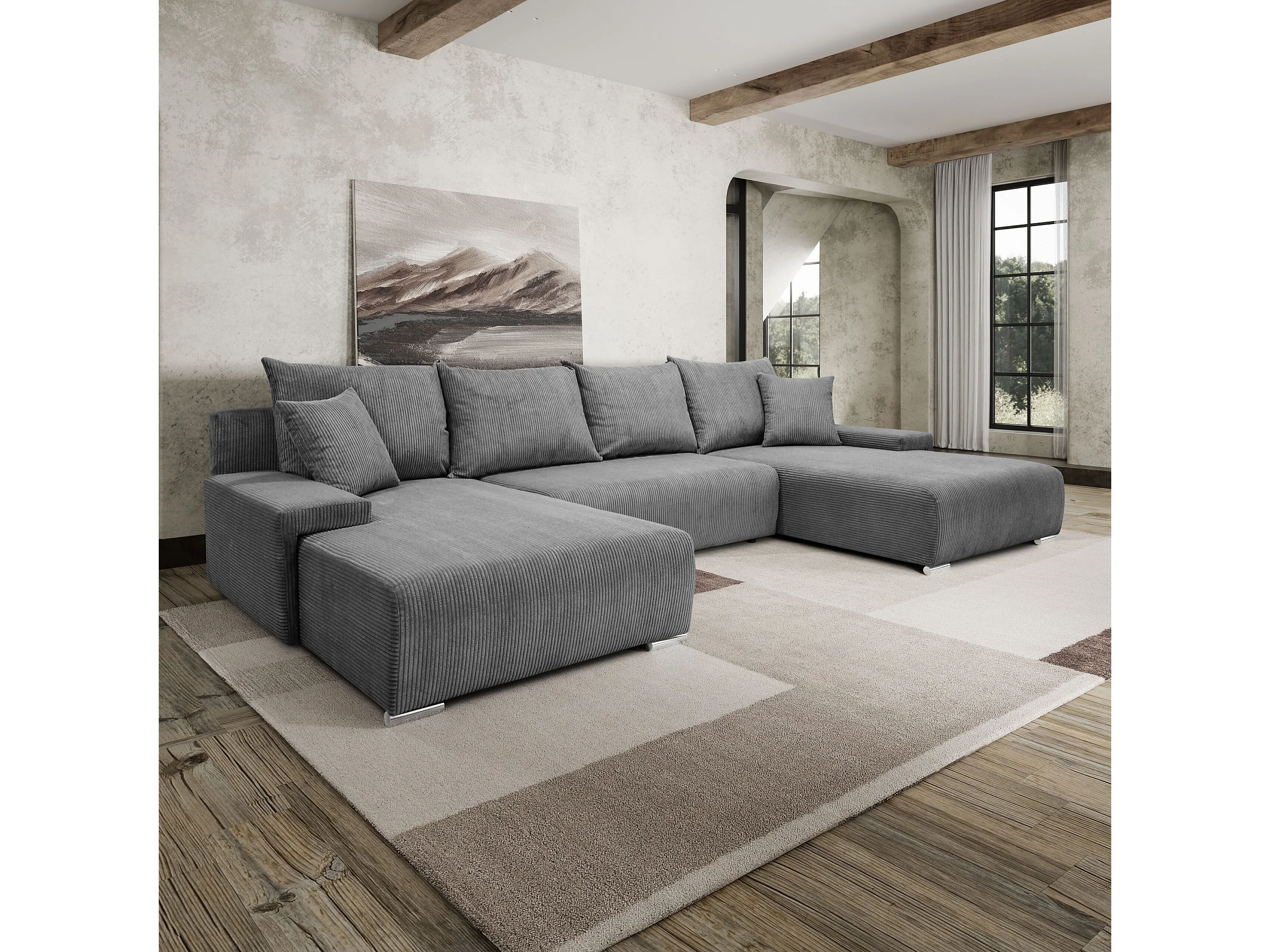 Canapé d'angle, Canapé en U, Tissu côtelé Poso, Gris, Livorno U