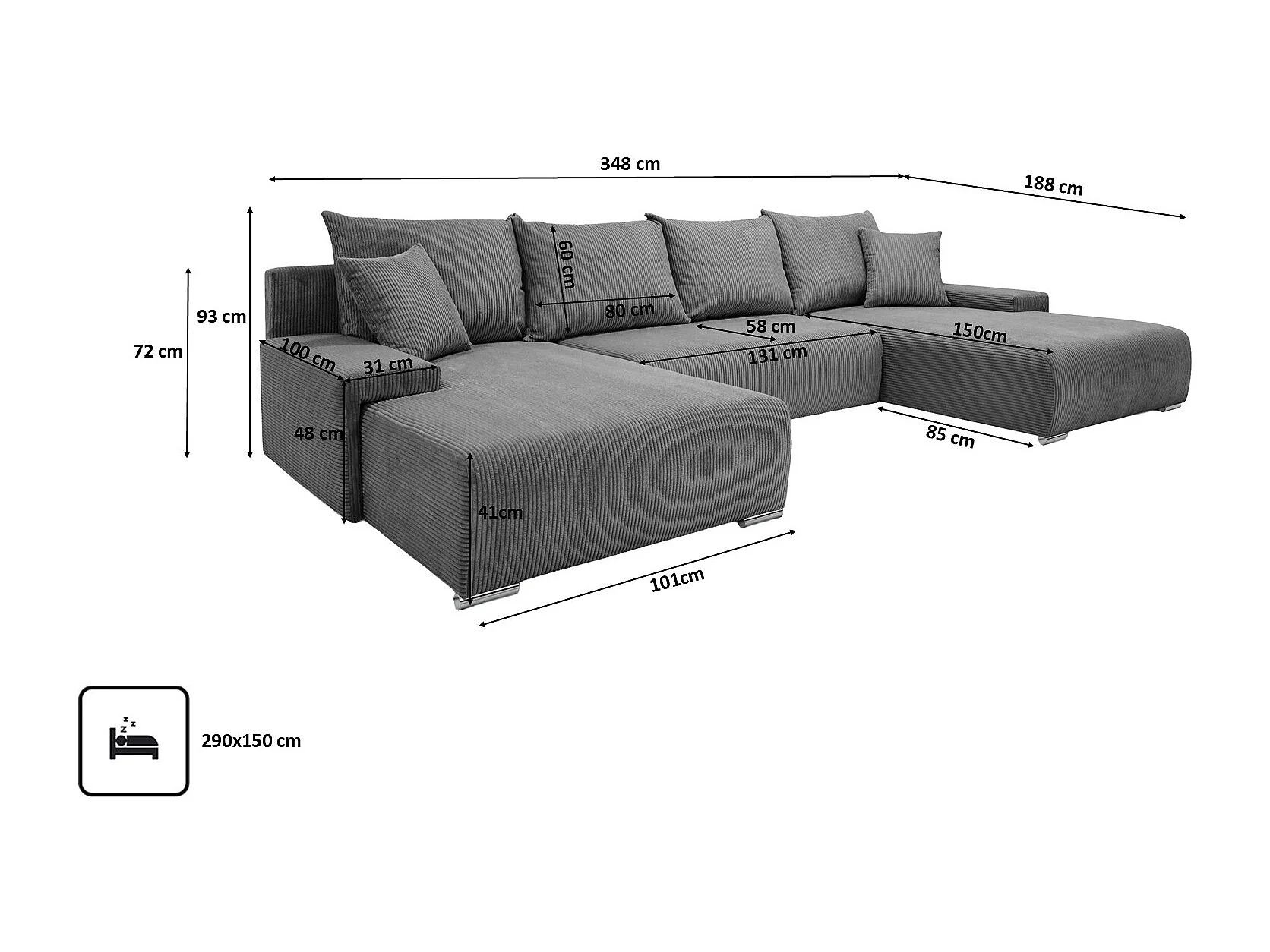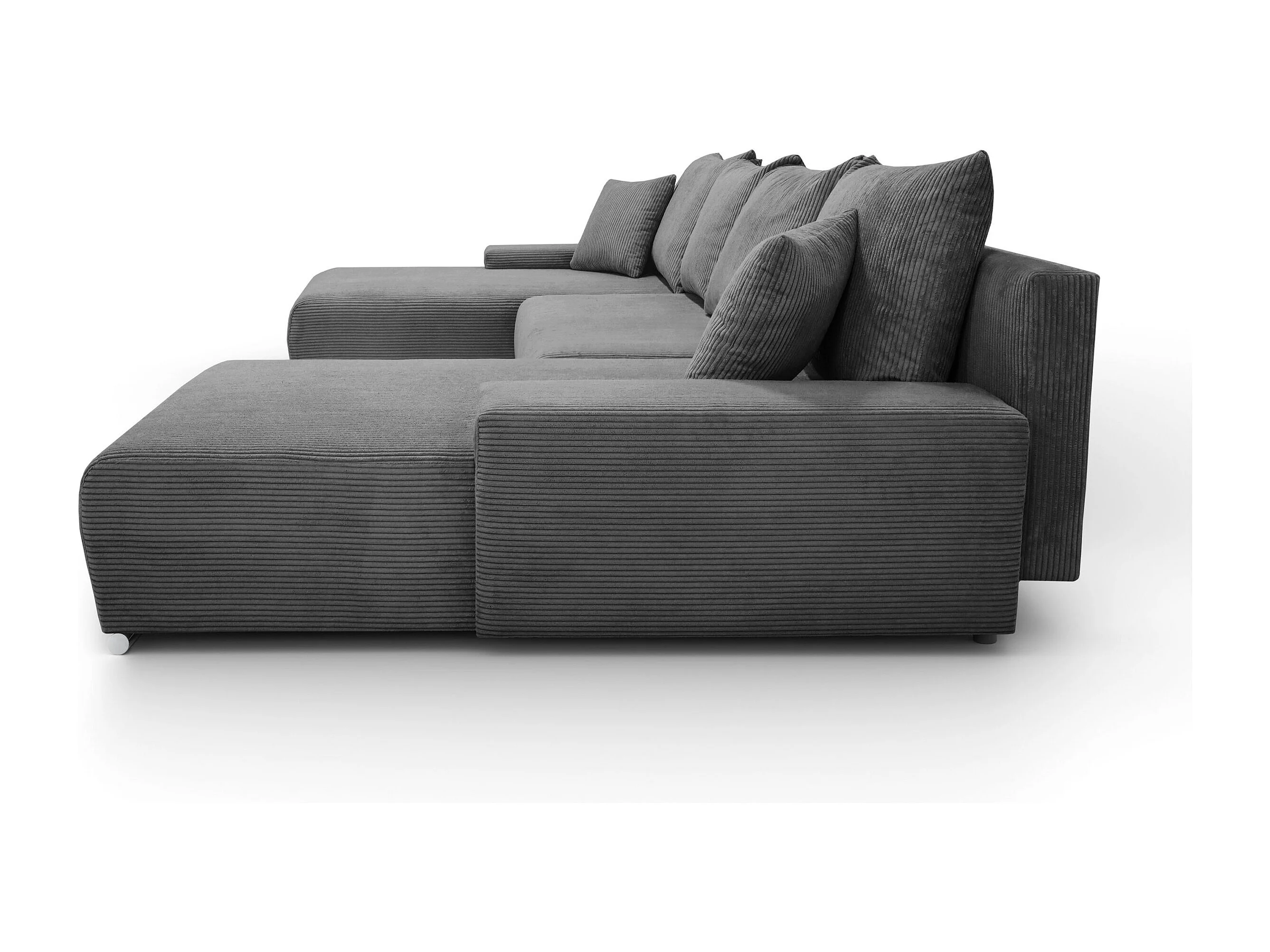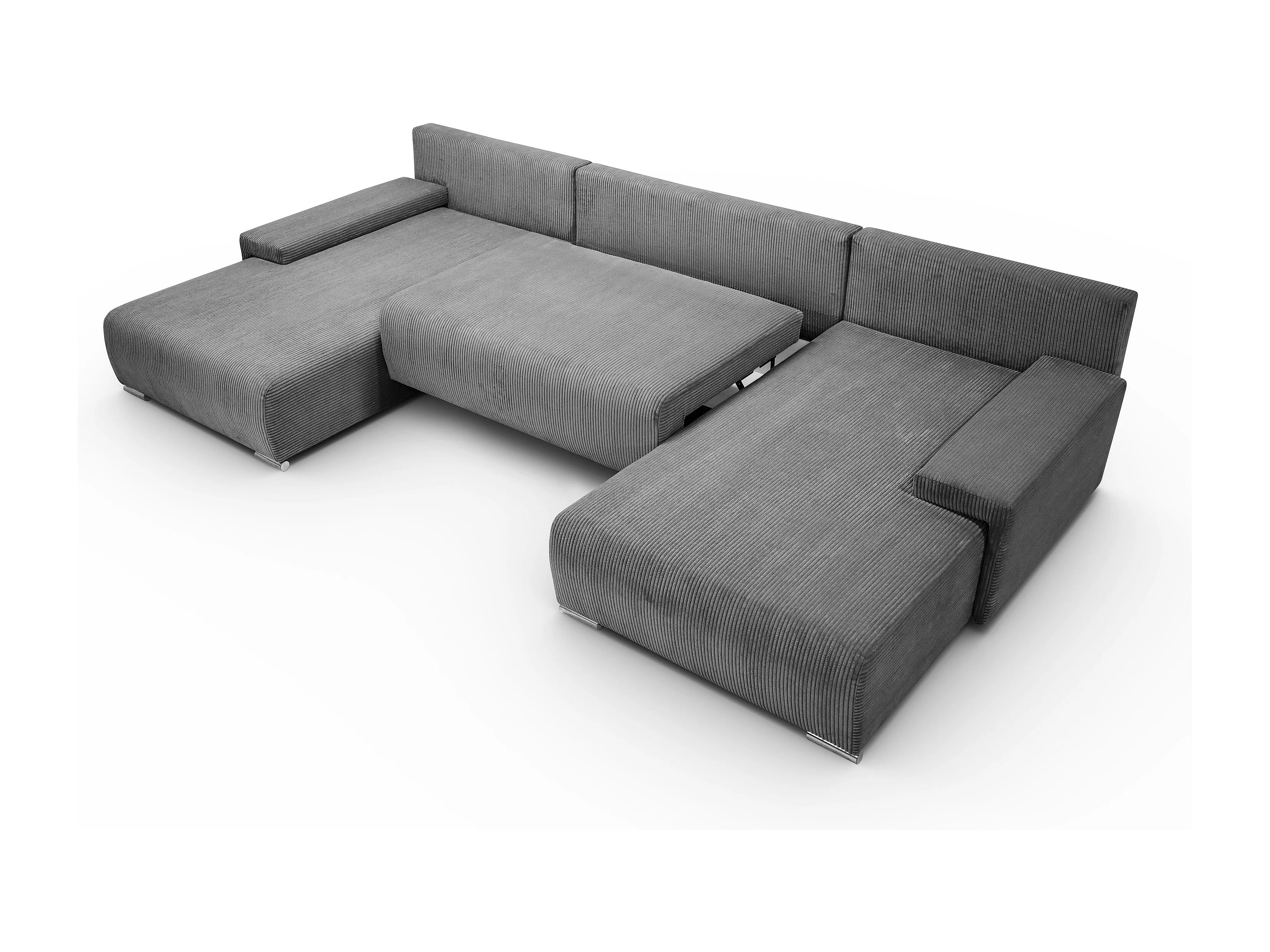 Canapé d'angle, Canapé en U, Tissu côtelé Poso, Gris, Livorno U